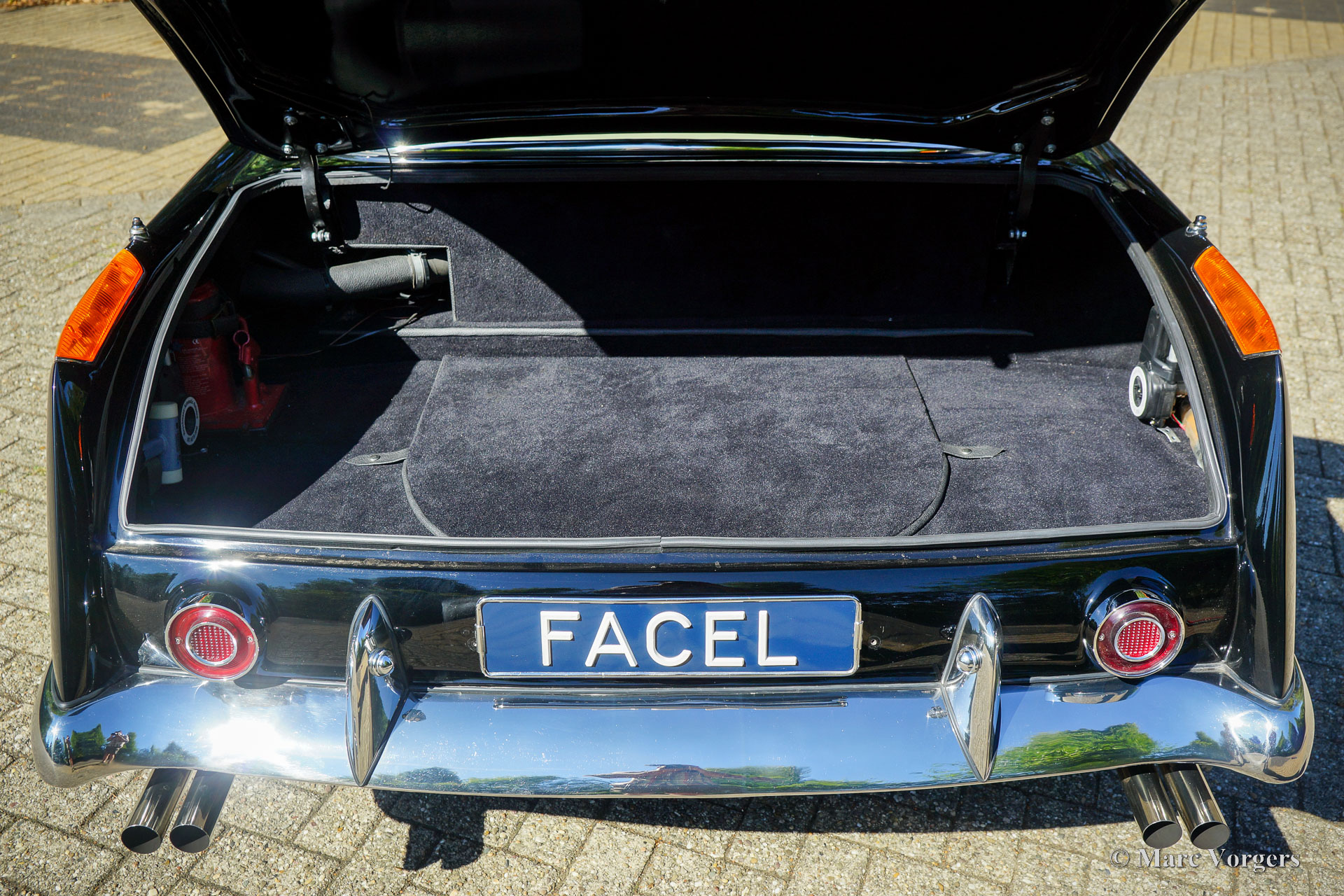 Facel Vega Facel II, bouwjaar 1964 (HK2 B167). Kleur zwart gecombineerd met een beige lederen interieur. Deze prachtige Facel Vega Facel II is een topmodel met de 6,7 L V8-motor uitgerust met twee viervoudige Carter AFB carburateurs, de handmatige Pont à Mousson-versnellingsbak met 4 versnellingen, stuurbekrachtiging en airconditioning. Deze Facel II werd in maart 1964 gebouwd in opdracht van het Franse staalconcern USINOR (een vaste Facel Vega klant) en bleef tot 1998 in Frankrijk. De automobiel stond toen bekend als een van de beste in zijn soort in Frankrijk. Helaas vatte de auto tijdens een nacht in de garage van de eigenaar vlam door een kortsluiting in de elektriciteit. De auto brandde ernstig uit met veel schade aan de carrosserie en het interieur. Amicale Facel Holland (AFH) kocht de restanten van de auto in 2005 in opdracht van een ‘captain of industry’ uit Duitsland, die opdracht gaf tot de volledige restauratie door AFH (op het best mogelijke niveau en ongeacht de kosten) waarna de auto werd afgeleverd bij hem in december 2009. De auto is sinds de restauratie in februari 2017 verkocht aan een tweede eigenaar (ook in Duitsland) die de auto tot nu toe koesterde.