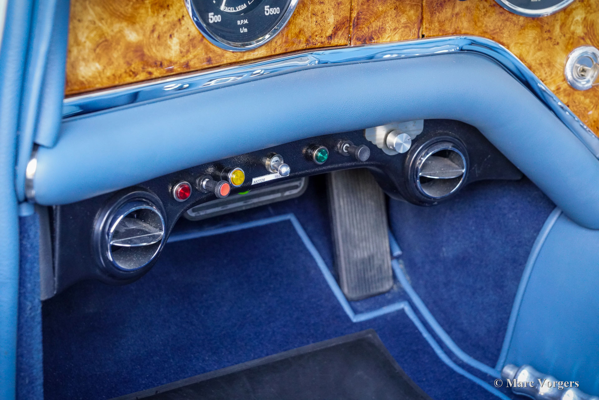 Het leder en het tapijt van het interieur is volledig vernieuwd in het originele blauw; de hemel in wol (grijs); het stalen dashboard is opnieuw “gehout” en voorzien van 11 lagen blanke lak - Verdere Upgrades/ opties: