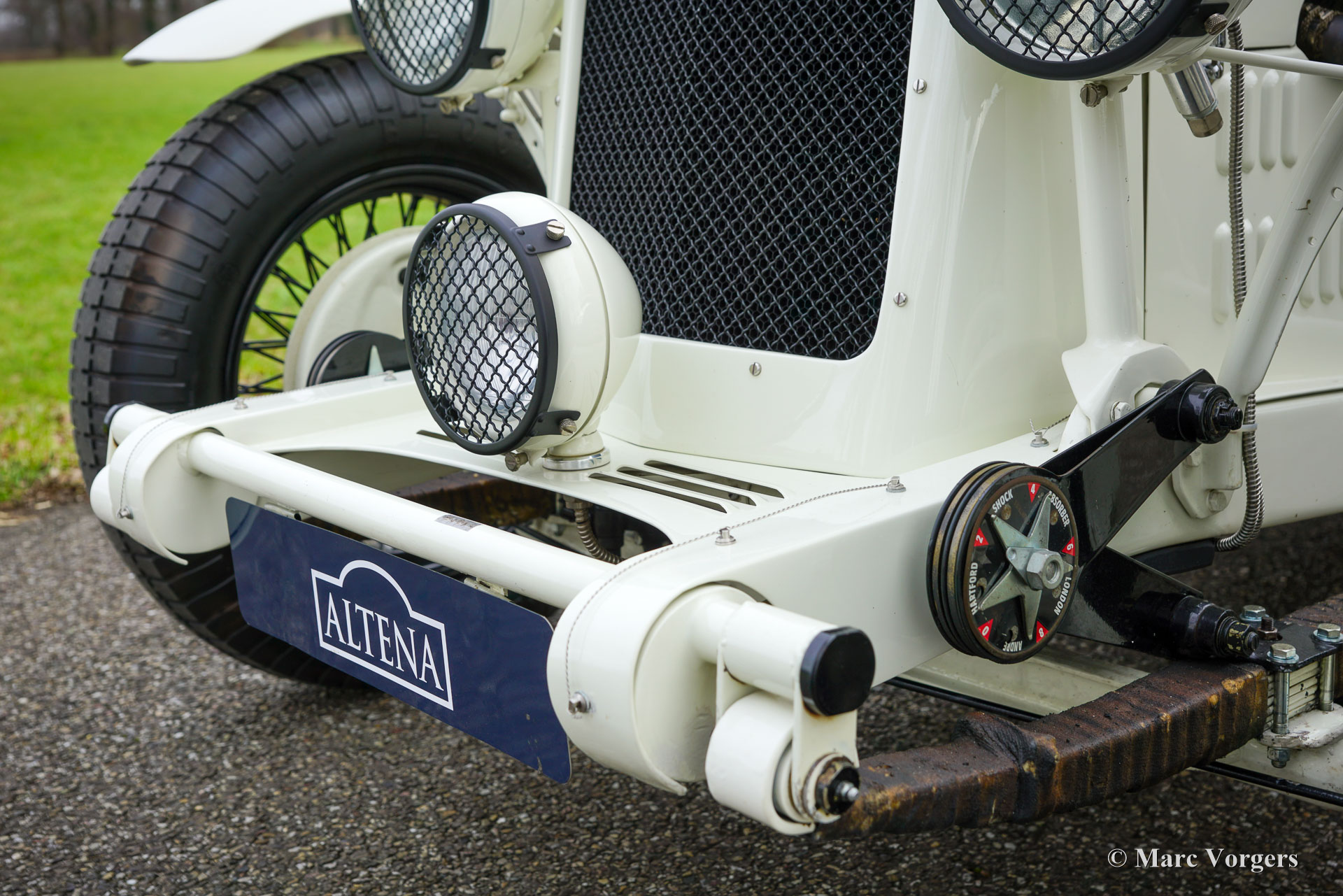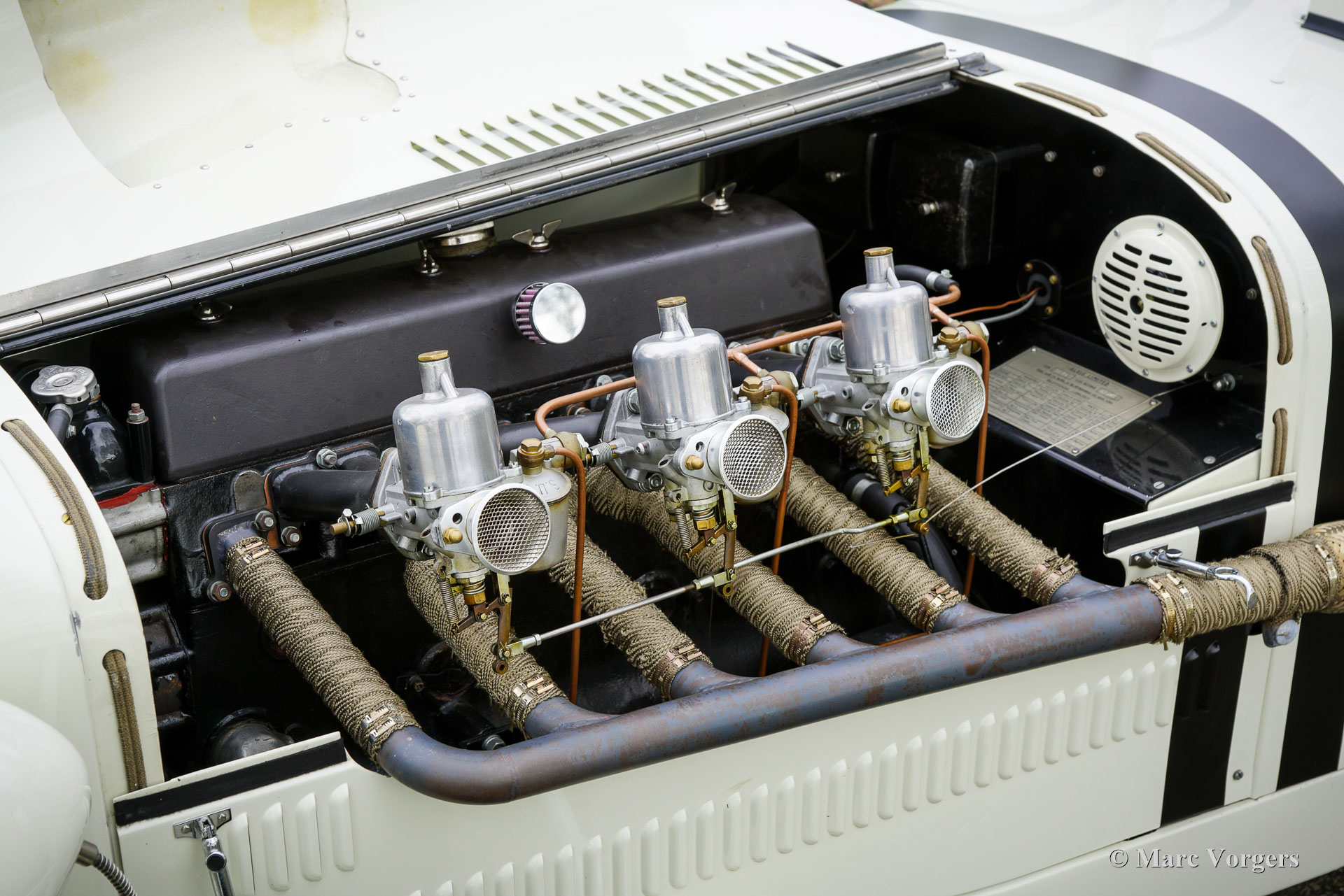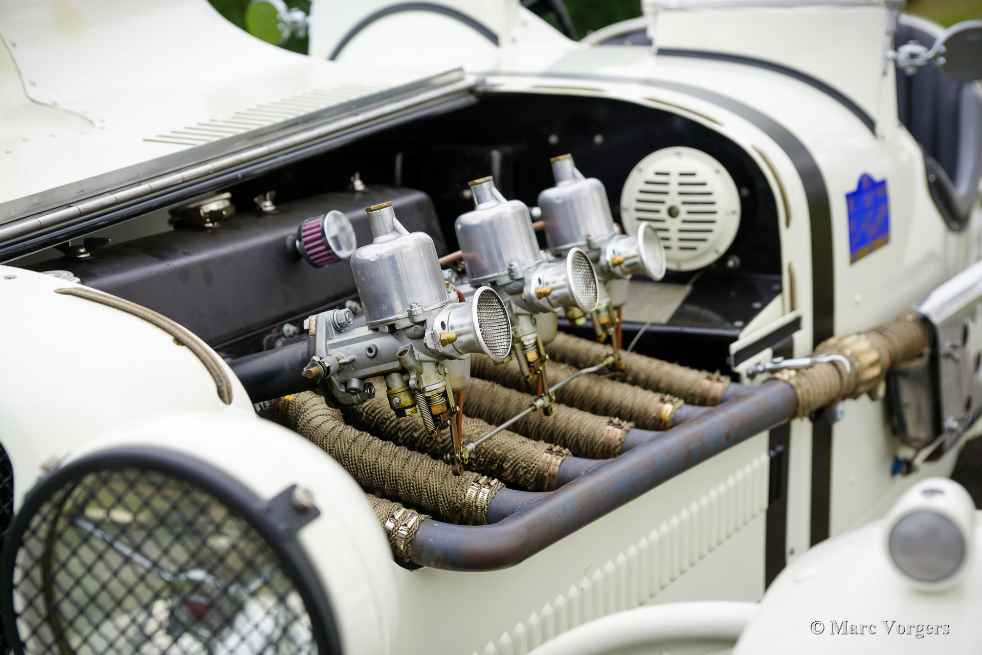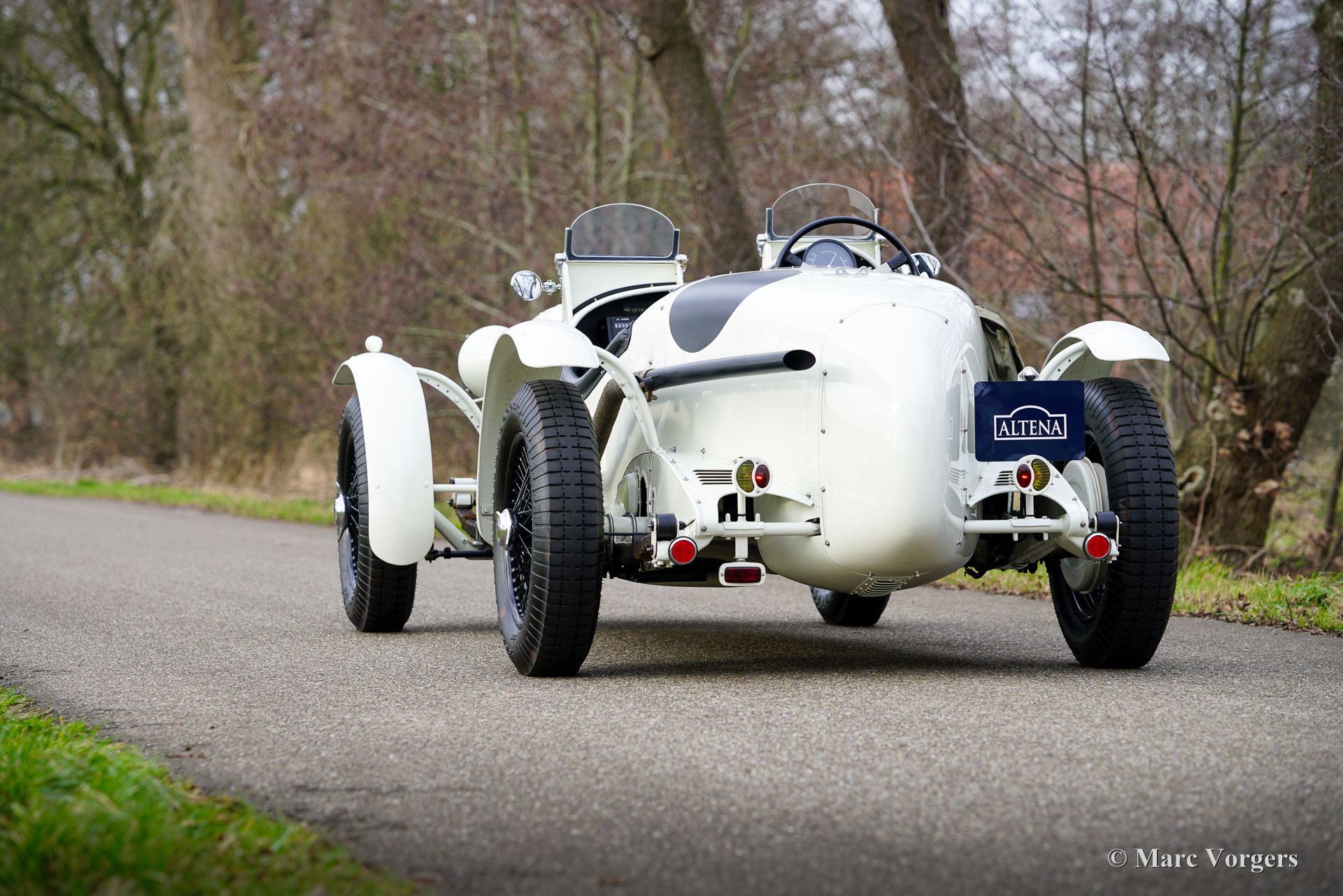 Alvis 3-Liter special, bouwjaar chassis 1950. Kleur gebroken wit (Old English White) met zwarte strepen over de motorkap en zwarte spaakwielen. Zwartlederen stoelen en een zwarte tonneau cover. Deze prachtige Alvis 3-Litre special is gebouwd door Racing Green Engineering (R.G.E.) uit Wales, de auto is voltooid in het jaar 2014. Deze indrukwekkend ogende en rijdende Alvis special is gebouwd op een Alvis TA14 chassis en wordt aangedreven door een 3 liter Alvis TC zescilinder-lijnmotor. In goede Alvis-traditie is de handbediende vierversnellingsbak volledig gesynchroniseerd. Het originele chassis en de technische componenten werden volledig gerestaureerd en gereviseerd tot in de perfectie, en de carrosserie werd met de hand gebouwd uit aluminiumplaat door de RGE-vakmensen volgens de hoogste normen. Het carrosserieontwerp is geïnspireerd op het uiterlijk van vintage Alvis-racewagens uit de jaren dertig. Deze Alvis 3-Litre special verkeert in een sublieme staat en de auto rijdt en stuurt indrukwekkend goed. De motor heeft veel kracht en het uitlaatgeluid is opzwepend! Zoals elke special gebouwd door R.G.E. is deze Alvis is een kwaliteitsproduct van topklasse; slim ontworpen, mooi vormgegeven, en voortreffelijk gebouwd. Het chassis en de mechanische onderdelen voldoen allemaal aan de originele fabrieksspecificaties. De auto kan worden geïmporteerd in en geregistreerd in elk land ter wereld. De vorige eigenaar heeft 10 jaar van de auto genoten, hoogtepunt was de deelname aan de Gran Premio Nuvolari (Editione Moderna) in Italië. Er is een kostbare vintage Halda Twinmaster analoge rallymeter gemonteerd zodat de nieuwe eigenaar de auto kan gebruiken tijdens historische toer- en regelmatigheidsevenementen. De auto wordt geleverd met een volledige historie. Dit is een unieke Alvis special gebouwd door een gerenommeerde specialist. Een fantastische vondst voor de ‘Pre-War’ sportwagenliefhebber die graag in ‘Pre-War’ stijl rijdt maar dan met groot bedieningsgemak en wat meer rijcomfort!