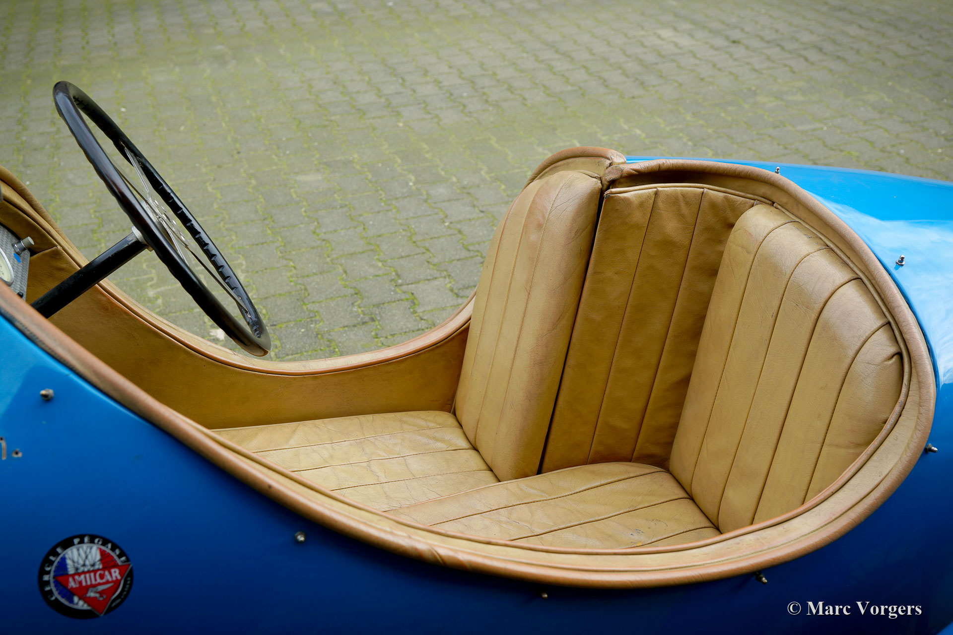 Amilcar CGS, jaar 1927. Kleur tweekleurig blauw gecombineerd met een beige lederen interieur. Deze prachtige Amilcar CGS werd nieuw verkocht in Frankrijk, de Franse ‘Carte Grise’ uit 1982 is aanwezig. Van 1982 tot 2014 heeft de auto slechts één eigenaar gekend. Rond het jaar 2000 werd de auto in zijn oorspronkelijke glans hersteld. Na voltooiing van de restauratie is er af en toe met de auto gereden en werd deze regelmatig onderhouden. De auto is altijd onder droge omstandigheden gestald. Deze prachtige Amilcar CGS verkeert in een zeer goede conditie met een prachtig ‘vintage’ patina. De Amilcar CGS was de meest succesvolle auto van deze Franse firma. De meeste auto's werden verkocht met een sportieve carrosserie met twee zitplaatsen (tegen meerprijs van aluminium), waardoor eigenaren werden aangemoedigd om deel te nemen aan lokale wedstrijden. De viercilinder-lijnmotor levert een verbluffende (1927!) 40 pk uit een cilinderinhoud van 1.097 cc! Dit vermogen gecombineerd met het zeer lage gewicht maakte de Amilcar GCS tot een echte sportwagen! De gepresenteerde GCS toont fantastische originele details: dit is een zeer begeerlijk exemplaar!