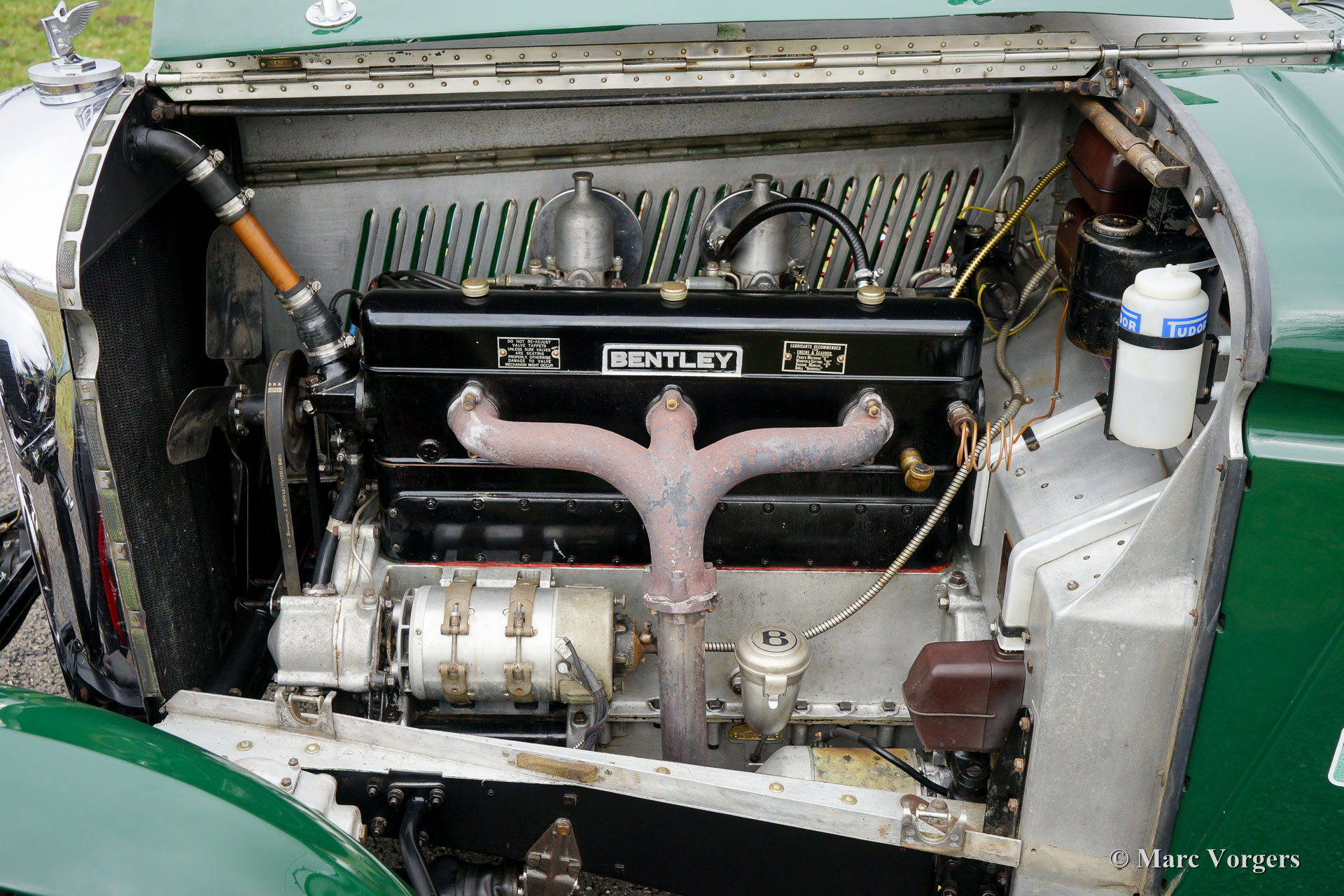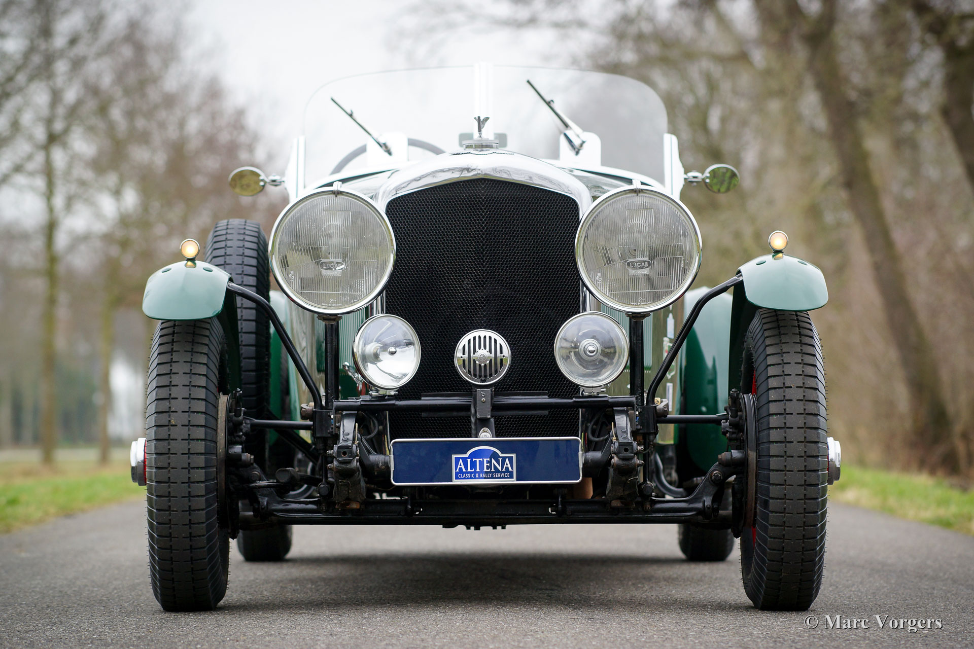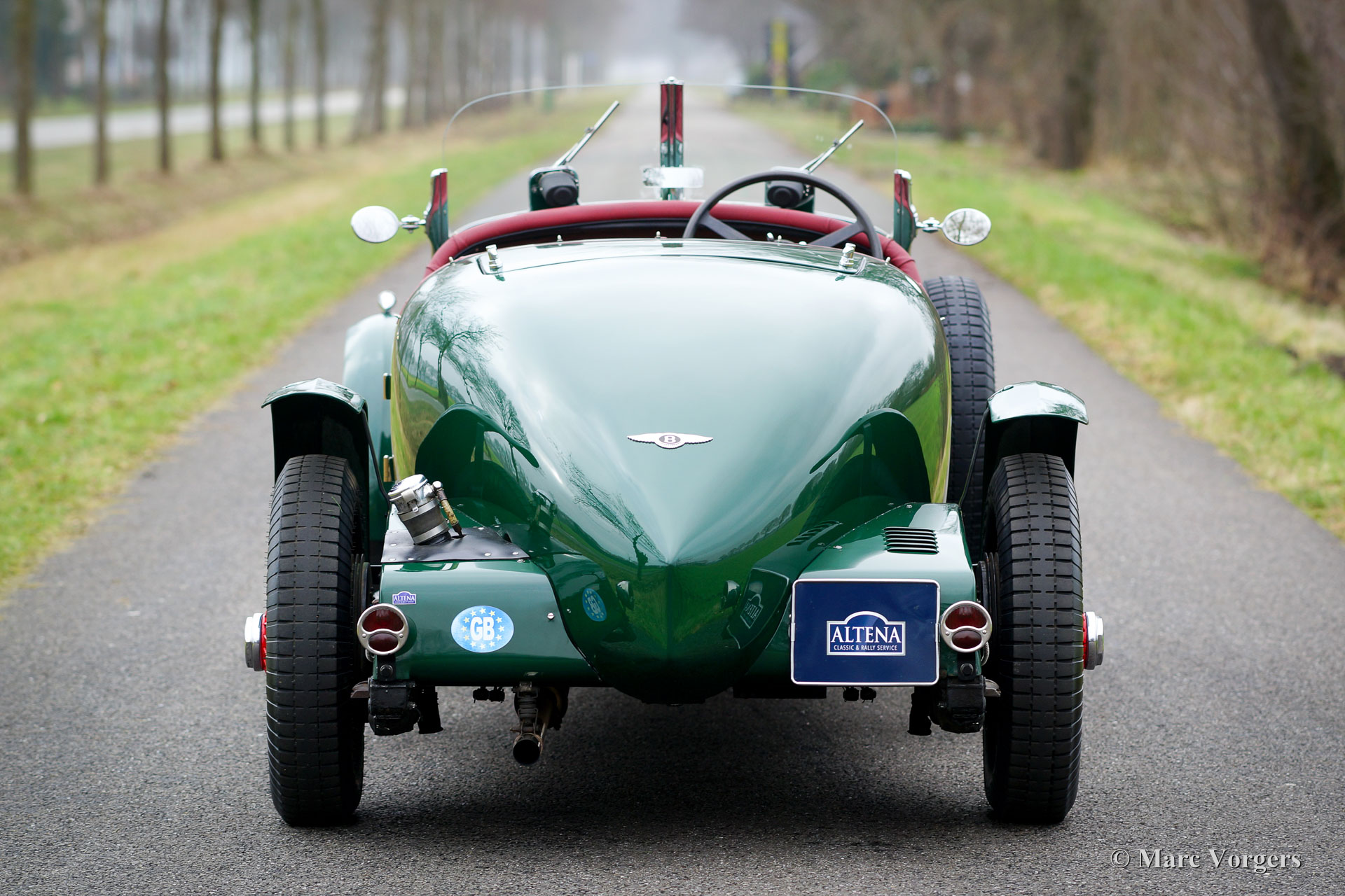 Bentley 4¼ Litre special, jaar 1938. Chassisnummer: B105LX, Motornummer: D9BX, motor en chassis hebben ‘matching numbers’. Kleur British Racing Green met roodgelakte spaakwielen. Een roodlederen interieur en zwarte vloerbedekking. Deze geweldige Bentley special verkeert excellente staat en de automobiel rijdt geweldig! Het betreft een Bentley uit de periode na de overname door Rolls-Royce in 1931. Vanaf 1933 werden Bentley’s gebouwd in het Engelse Derby, vandaar dat deze types tegenwoordig ook wel Derby Bentley’s worden genoemd. Mede dankzij de invloed en de technische superioriteit van Rolls-Royce laat deze Bentley zich erg gemakkelijk bedienen en rijden! Deze Bentley is uitgerust met een krachtige 4¼ liter zescilinder-lijnmotor, handgeschakelde vierversnellingsbak en overdrive. De aluminium carrosserie werd handgemaakt door een Engelse Bentley specialist. Een fotoreportage van de bouw is aanwezig evenals verdere documentatie. Deze Bentley heeft Engelse papieren en kenteken PTT-626. De auto staat ingeschreven in het Bentley register.