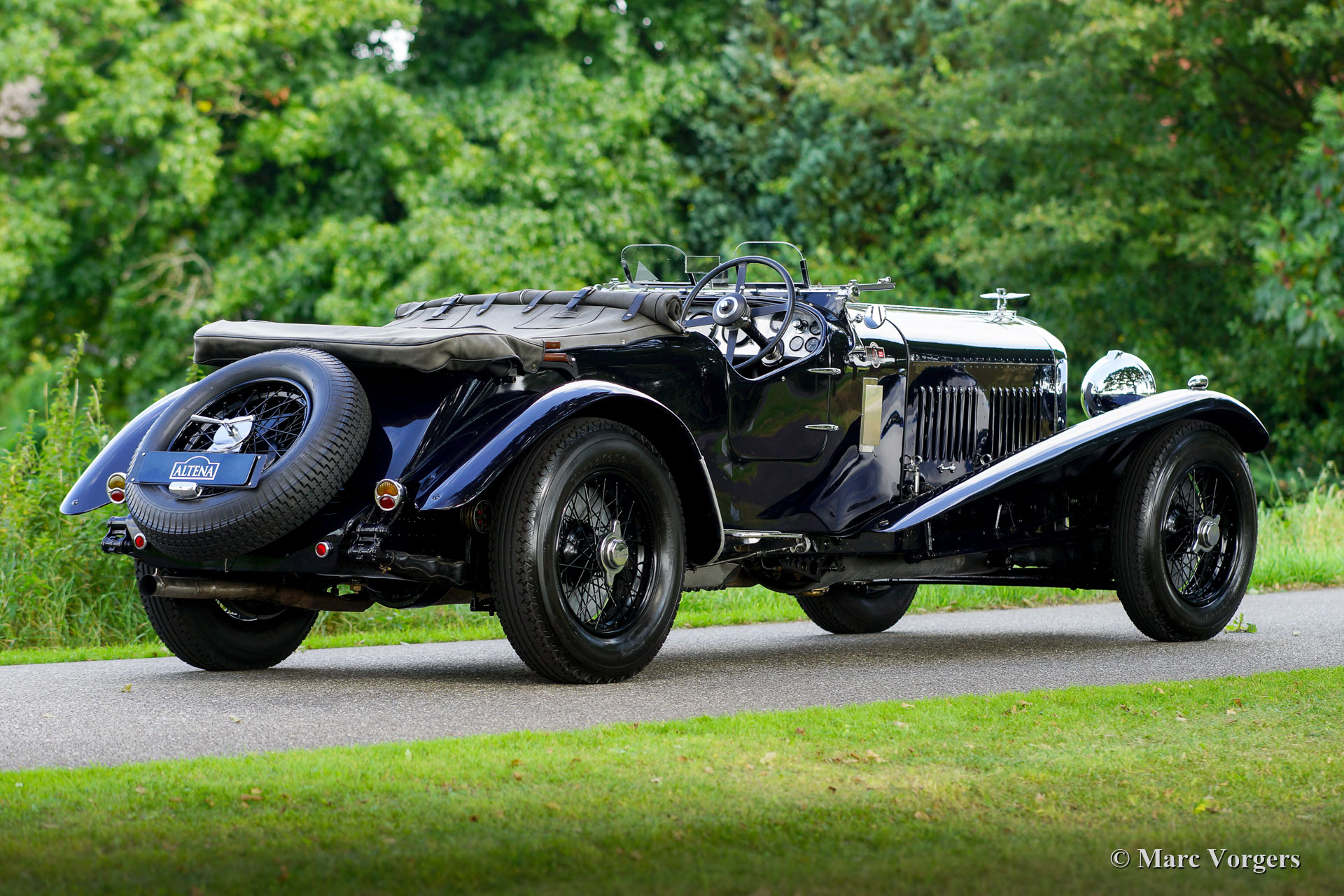 Bentley 8-Liter, bouwjaar 1930. Chassis, motor en stuurhuis zijn af fabriek origineel en hebben ‘matching numbers’. Kleur zeer donkerblauw gecombineerd met een zwartlederen interieur en zwart tapijt. Grijze mohair kap en grijze tonneau cover. Deze indrukwekkende en reusachtige Bentley 8-liter werd nieuw verkocht in het Verenigd Koninkrijk aan de heer R. Rowley voorzien van een vierdeurs sportsedan carrosserie door de Carlton Carriage Company. Latere eigenaren waren de heer J.H. Dudley-Ward en de heer RMR Eckard. In 1965 werd de auto gepresenteerd met een nieuwe vierzits ‘open tourer’ carrosserie gebouwd door de firma Hoffmann & Burton. De presentatie na de restauratie en opbouw vond plaats tijdens de Kensington Gardens Bentley clubmeeting waar deze bijzondere Bentley tot kampioen van het evenement werd uitgeroepen. In 2013 is de Bentley gekocht door een verzamelaar uit Nederland. De automobiel staat momenteel op Nederlands kenteken, de originele Engelse kentekenplaten met nummer GY 6838 zijn nog aanwezig. Deze indrukwekkende en zeldzame Bentley 8-liter wordt genoemd, beschreven en afgebeeld in verschillende Bentley-boeken zoals in ‘Bentley 50 Years of the Marque’ door Johnnie Green, gepubliceerd in 1969, pagina 130 (foto in huidige gedaante). In het boek ‘Bentley: The Vintage Years’ van Michael Hay, gepubliceerd in 1997, en in het specialistische boekje 'The How and Where of the 8-Litre Bentleys' van Stanley Sedgwick, uitgegeven in 1972. Deze schitterende Bentley 8-Litre bevindt zich in een zeer goede en prachtige ‘vintage’ conditie met een fraai patina van gebruik. De automobiel rijdt, stuurt, schakelt en remt uitstekend. De gigantische 8-liter ‘straight six’-motor laat ongelooflijk fraaie details zien, de uitlaat produceert het geluid van een zwaar onweer, en de motor levert een enorm koppel. De motor is voorzien van drie S.U. WB9002 carburateurs en de originele Bosch ontsteking. Tussen oktober 1930 en december 1932 werden slechts honderd Bentley 8-liter productieauto's afgeleverd. Dit is een unieke kans om een zeldzame Bentley 8-liter te kopen met een prachtig gedocumenteerde geschiedenis en herkomst.