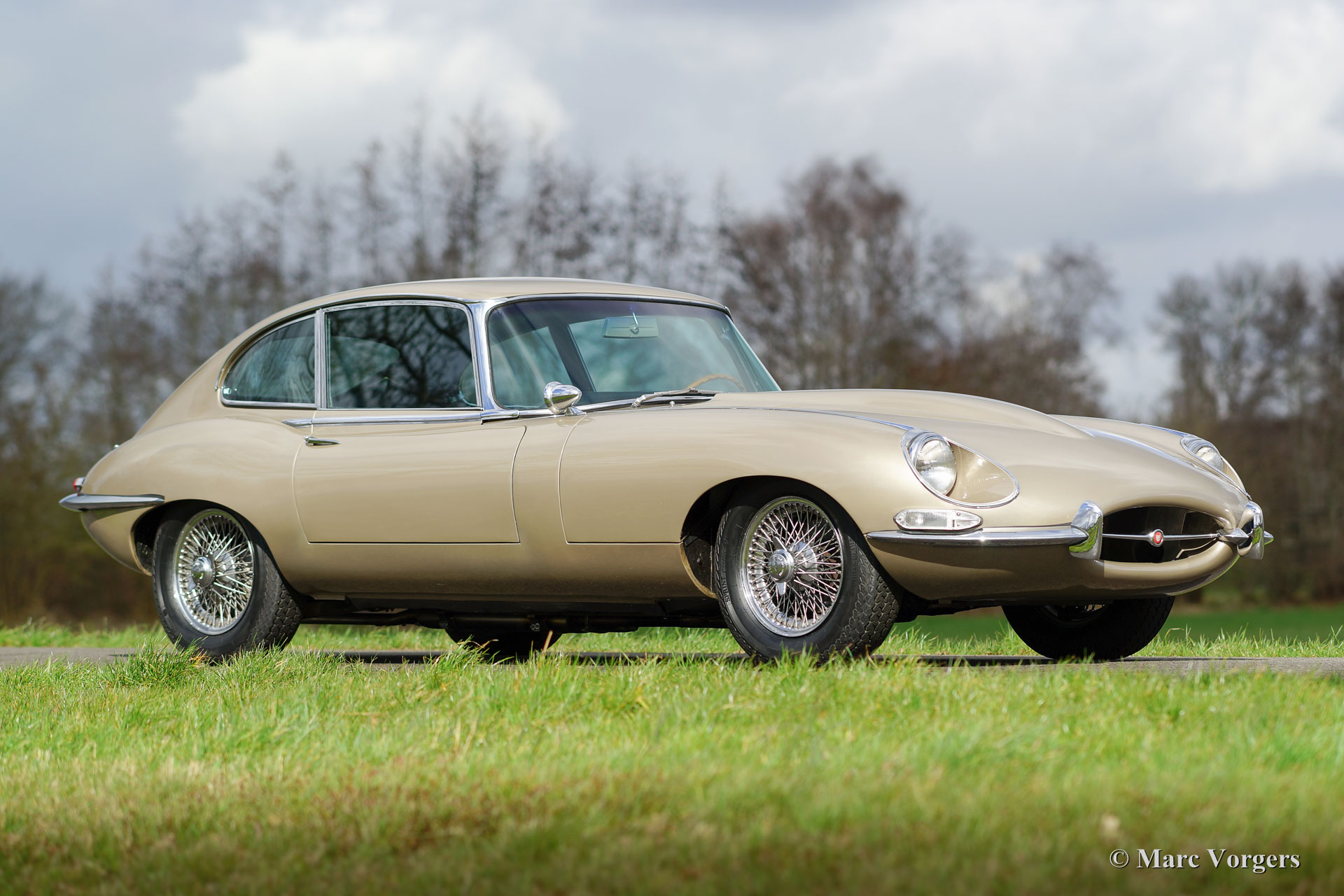 Jaguar E-type 4.2 Litre 2+2 serie 1½ FHC, jaar 1968. Chassisnummer 1E78336XX. Kleur ‘Golden Sand’ metallic met een zwartlederen interieur en zwart tapijt. Deze fraaie Jaguar E-type werd in het jaar 2014 geïmporteerd uit de USA, de Amerikaanse ‘title’ is aanwezig. Deze Jaguar verkeert in goede staat en de auto rijdt uitstekend. Deze E-type is voorzien van een automatische versnellingsbak. In 2014 werd er een nieuwe RVS uitlaat gemonteerd en in 2015 is de versnellingsbak gereviseerd. Deze Jaguar E-type Fixed Head Coupe (FHC) is een relatief schaars serie 1½ model met onderhuids al enige serie 2 kenmerken en uiterlijk nog gelijk aan de serie 1 op de opengewerkte koplampen na. Zoals elke Jaguar E-type een indrukwekkende automobiel met zeer fraaie details!