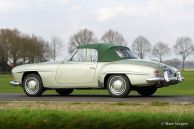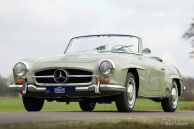 Mercedes-Benz 190 SL, bouwjaar 1961. Deze 190 SL heeft Matching numbers. Kleur licht groen metallic (hellgrün DB 274) met een groen lederen interieur, een groene mohair soft top en hood cover. Deze bijzonder fraaie Mercedes-Benz 190 SL is recent gereedgekomen na een uitvoerige professionele restauratie! De auto verkeert in concoursstaat! Een fotoreportage van de restauratie is aanwezig.