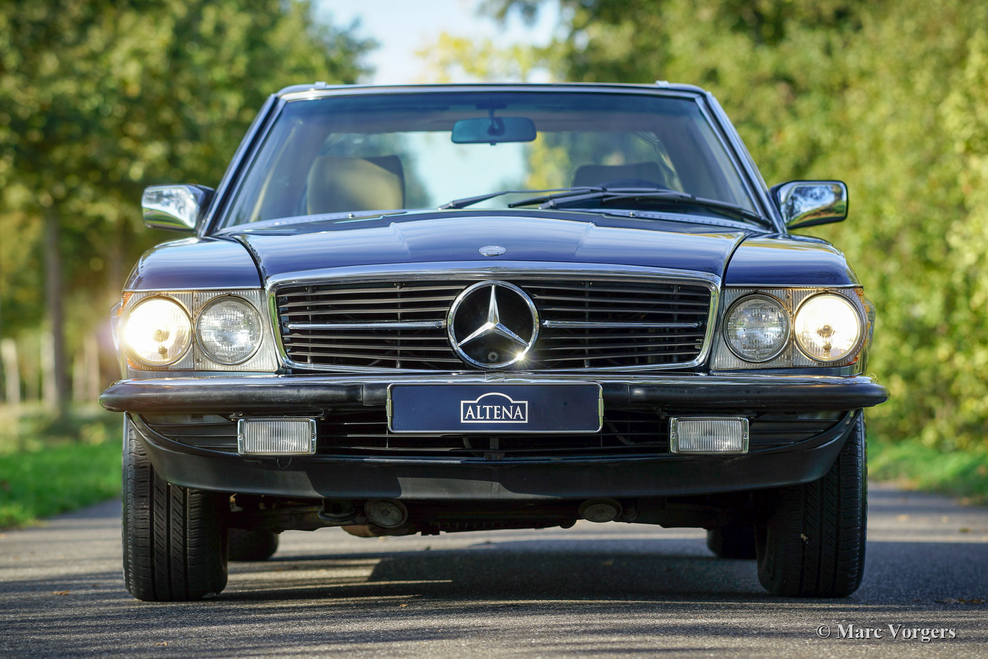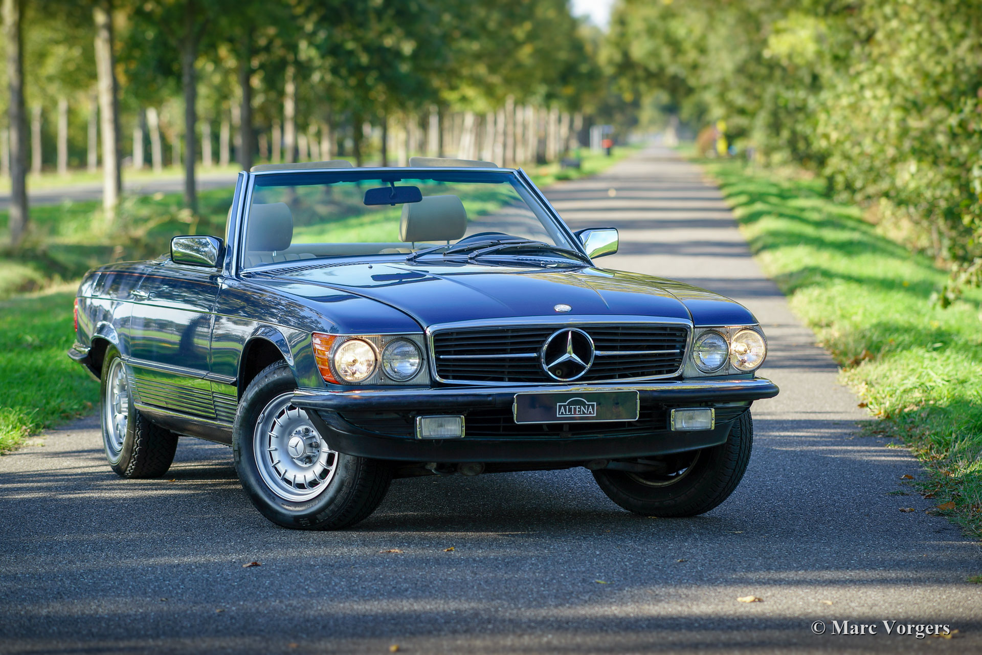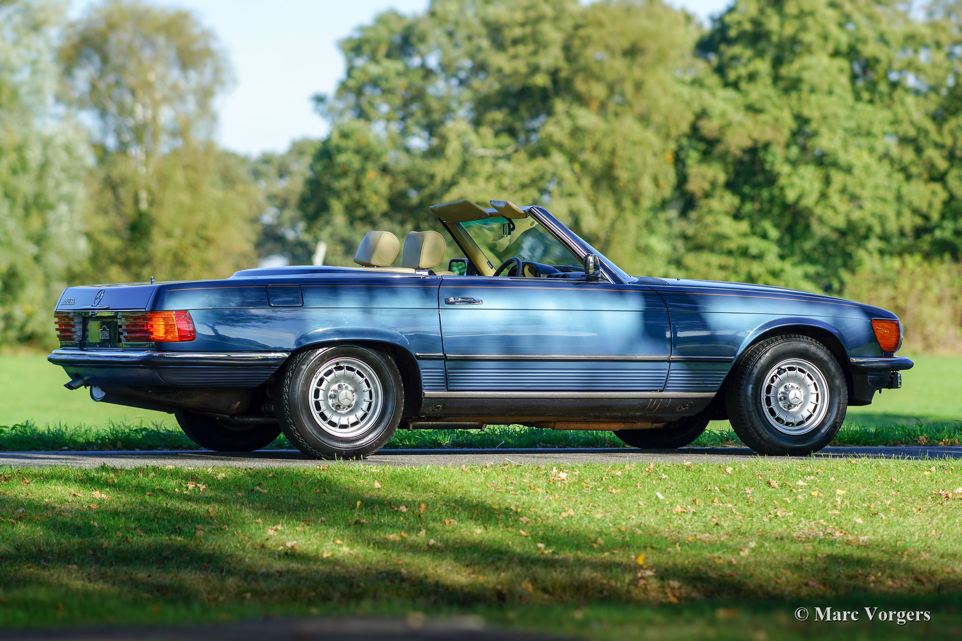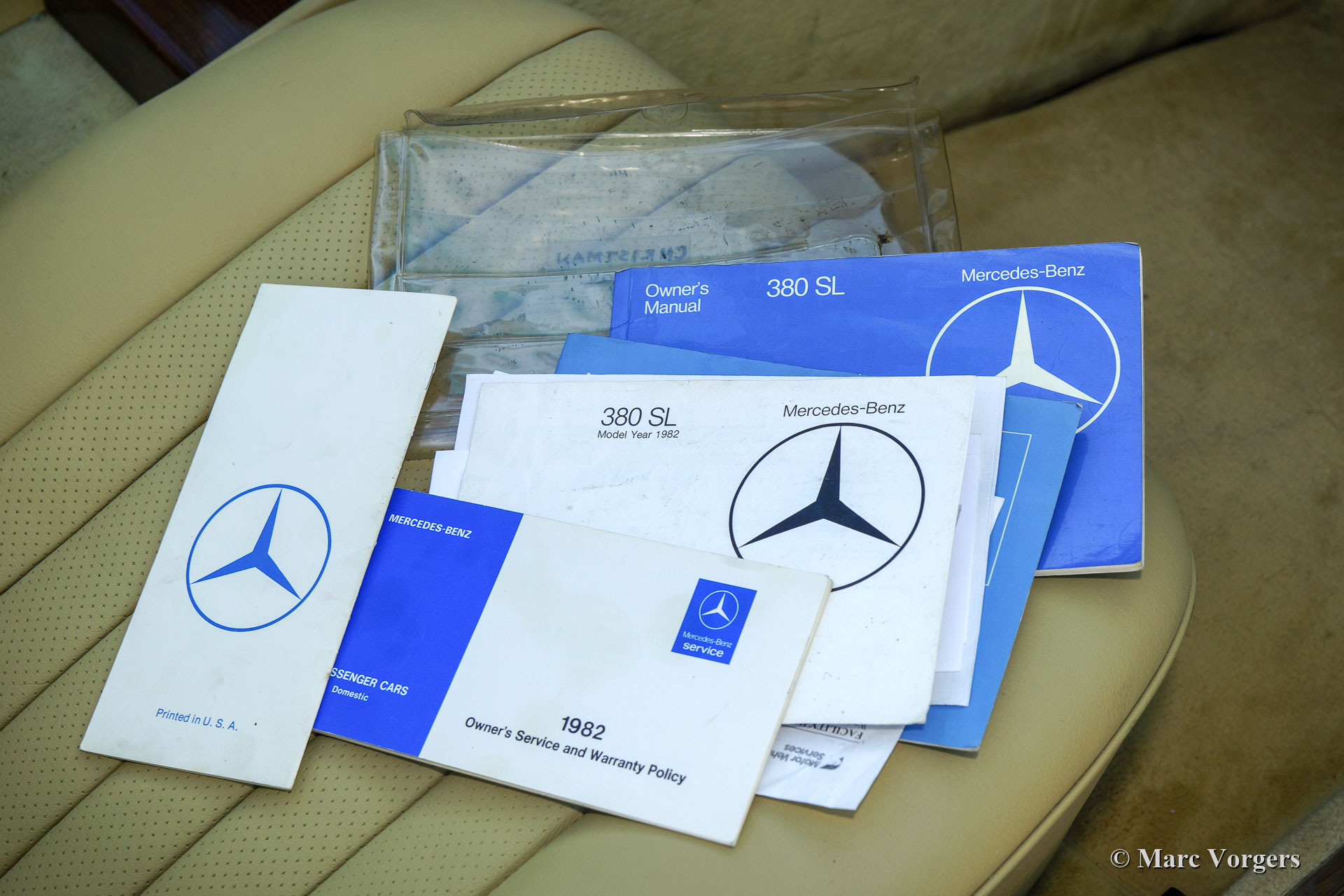 Mercedes-Benz 380 SL (R107), jaar 1982. Kleur blauw metallic gecombineerd met een beige interieur. Hard-top in carrosseriekleur en een donkerblauwe mohair soft-top. Deze prachtige Mercedes-Benz werd nieuw verkocht in de USA, de auto is onlangs in Nederland geïmporteerd. De auto heeft vanaf nieuw slechts 81.000 mijl gereden en de auto heeft slechts twee eigenaren gehad! De eerste eigenaar kocht de auto nieuw en verkocht deze in 1983 aan de tweede eigenaar. De tweede eigenaar koesterde deze mooie 380 SL tot het jaar 2018! De volledige servicegeschiedenis is bekend en gedocumenteerd en alle originele boekjes zijn aanwezig. Het serviceboek is compleet. Deze prachtige Mercedes-Benz verkeert in sublieme originele staat! De auto toont alle originele details, alleen de Amerikaanse bumpers werden vervangen door slanke Europese uitvoeringen. De auto is voorzien van originele MB-lichtmetalen velgen. De auto wordt geleverd met de originele gereedschap-set en de Mercedes-Benz 'Daten Karte'. Een fantastische 380 SL aangedreven door een voortreffelijke V8-motor!