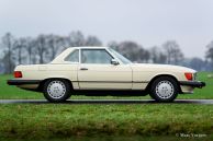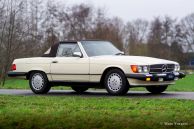 Mercedes-Benz 560 SL (R107), jaar 1989. Chassisnummer: WDBBA48D2KA1040XX. Kleur Ivoorwit met een beigeleren interieur en beige tapijt. Originele hard-top (winterdak) in carosseriekleur en een donkerbruine soft-top. Deze fraaie Mercedes-Benz 560 SL is recent geïmporteerd vanuit het zonnige Californië in de USA. De auto verkeert in een excellente originele conditie en de auto rijdt geweldig. De auto toont alle originele Amerikaanse details. Vanaf nieuw heeft deze Mercedes SL 144.601 mijl gereden, de servicehistorie is compleet gedocumenteerd. Het betreft een R107 SL uit de allerlaatste serie en uitgerust met de krachtige en duurzame 5.6 liter V8 motor en een automatische versnellingsbak. De auto is voorzien van de originele 16-inch MB lichtmetalen velgen en is compleet met het originele instructieboekje en het originele boordgereedschap. Indien gewenst kan de auto in overleg worden geleverd volgens Europese specificaties. Een uitstekend exemplaar!