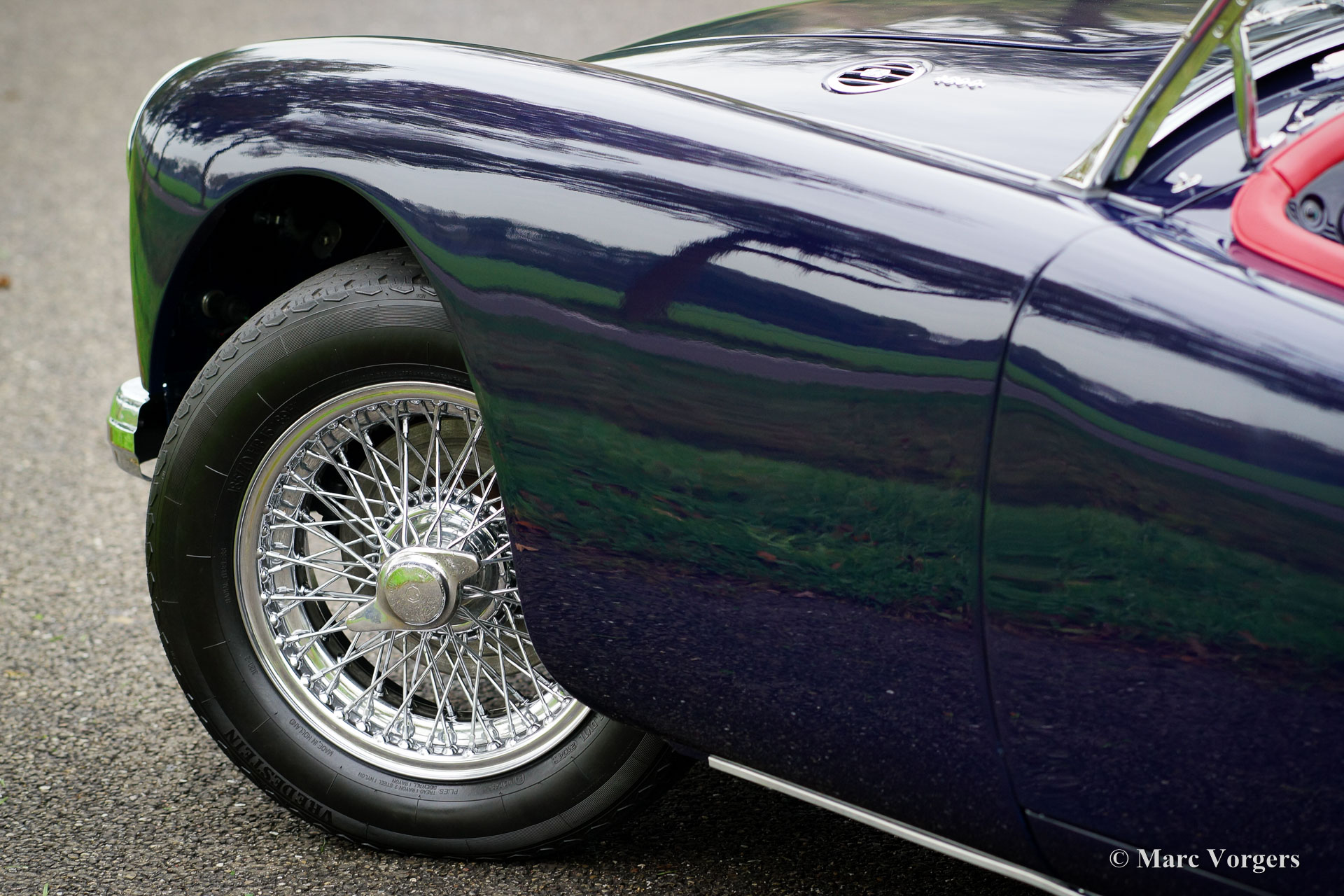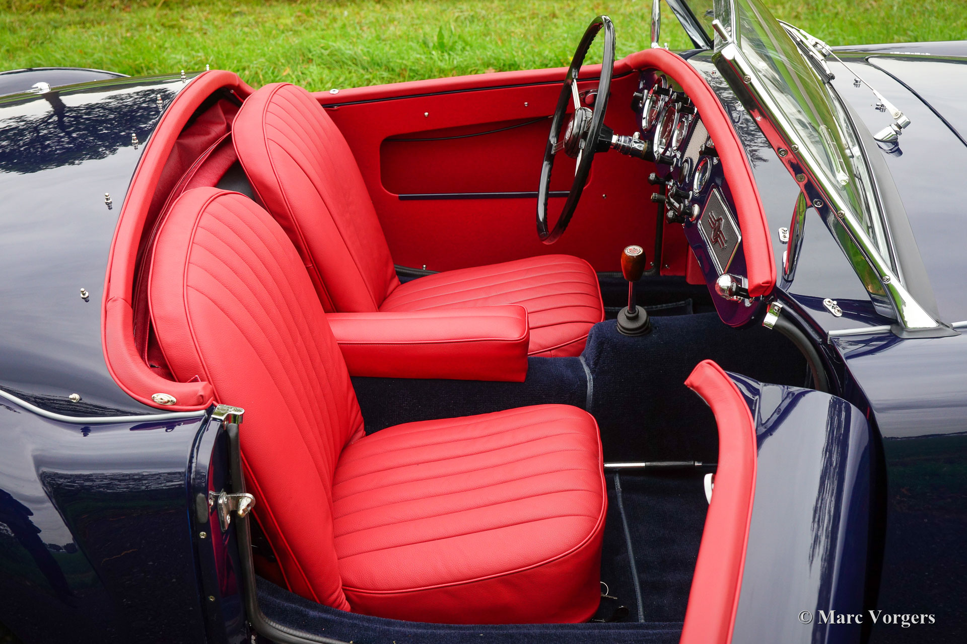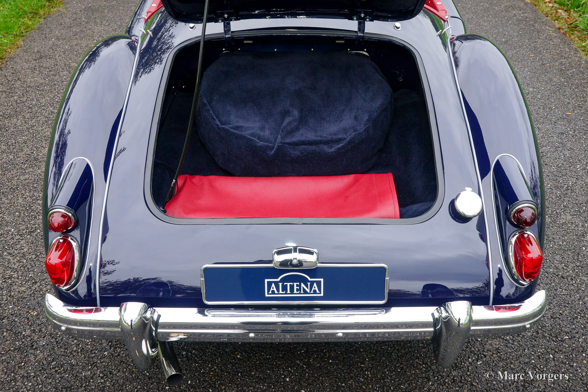 MG MGA 1600 roadster, jaar 1960. Kleur donkerblauw met een rood leren interieur en donkerblauw tapijt. Rode soft-top, tonneau-cover en aluminium zijruiten. Deze beeldschone MGA 1600 roadster is uitvoerig en ‘body-off’ gerestaureerd door een MG-specialist, de auto verkeert in perfecte concoursstaat! Werkelijk alles is onder handen genomen; motor en versnellingsbak zijn gereviseerd, een nieuwe kabelboom en nieuw remsysteem zijn gemonteerd (schijfremmen vóór), en zelfs alle dashboardmeters zijn gereviseerd. De carrosserie toont perfecte passingen, subliem lakwerk en perfecte chroomdelen. Deze MGA is uitgerust met het fraaie originele stuurwiel en er is een rvs uitlaat gemonteerd. Een voortreffelijk rijdend top-exemplaar.