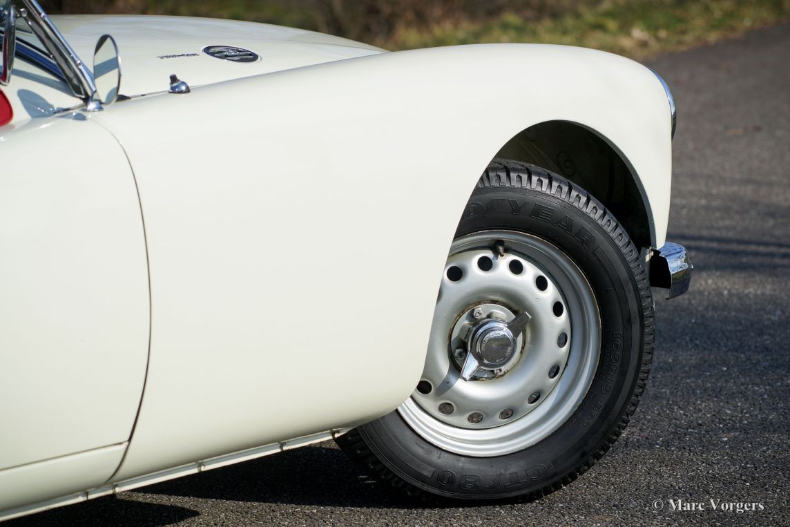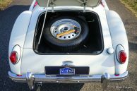 MG MGA Twin-Cam roadster, jaar 1958. Kleur Old English White met een rood leren interieur en zwart tapijt. Deze zeldzame en fantastische MGA Twin-Cam roadster werd als CKD-exportmodel naar België verscheept. De auto werd geassembleerd in België en in hetzelfde land nieuw verkocht. Volgens de overlevering heeft de in zijn vroege dagen op het circuit van Spa-Francorchamps geracet. In 1960 werd de auto gekocht door een bekende Nederlandse uitgever van technische autoboeken (Piet Olyslager). In 1969 werd de auto verkocht aan een chirurg die tot 1973 in de auto reed. Er werd een restauratie gepland en de auto werd gedemonteerd. De restauratie begon nooit en de auto werd in 1983 in onderdelen verkocht aan de huidige eigenaar. Daarna volgde een volledige restauratie en revisie. De carrosserie en het chassis werden ontdaan van verf, gezandstraald en gegrond met epoxy-primer. Daarna is de auto opnieuw in de originele kleur gespoten. De Twin-Cam-motor werd door de Engelse specialist Peter Wood volledig gereviseerd naar hoge-compressie specificaties. De oude Twin-Cam cilinderkop werd vervangen door een ander exemplaar, vandaar het latere serienummer. De rest van de mechaniek werd gereviseerd, het interieur werd hersteld en de chroomdelen werden nieuw verchroomd. Een fotoreportage van de restauratie is aanwezig! Deze MG MGA Twin-Cam is nog altijd in een excellente conditie en de rijbeleving is fantastisch! In de loop der jaren is de auto op details verder verbeterd: er is een Bell race-uitlaat gemonteerd, aan de voorwielen zijn Jaguar Mk II (Dunlop) remklauwen met 'green-stuff' remblokken gemonteerd, het hydraulische remsysteem is gevuld met DOT 5 remvloeistof, het elektrische systeem is naar wisselstroom aangepast en de auto is voorzien van elektronische ontsteking. Deze zeldzame MGA Twin-Cam wordt compleet geleverd met veel historie, het originele instructieboek, werkplaatshandleiding, brochures en nog veel meer. Dit is een gezochte, zeldzame, MGA Twin-Cam roadster in uitstekende conditie!