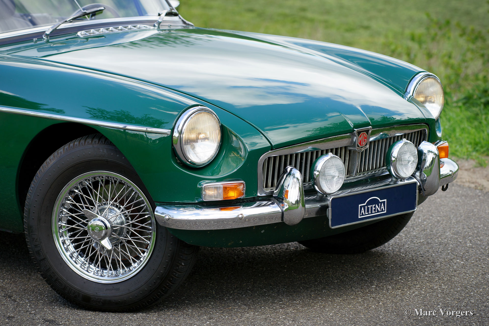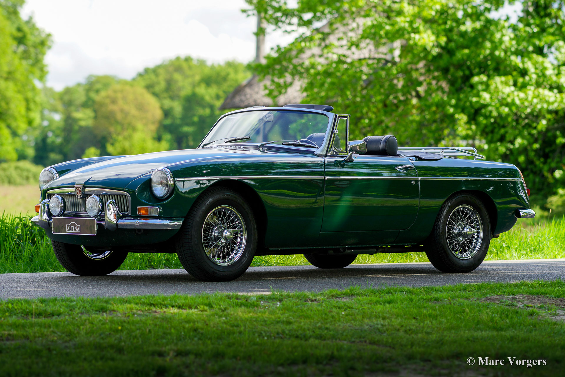 MG MGB roadster, jaar 1968. Chassisnummer GHN4U14193XX, motornummer 18V547EL2374XX. Kleur British Racing Green gecombineerd met een zwartleren interieur en zwart tapijt. Zwarte soft-top, hood-cover en tonneau-cover. Deze mooie MGB roadster werd in het jaar 1991 vanuit de USA naar Nederland geïmporteerd. In Nederland werd de auto opnieuw gespoten en uitgebreid gerenoveerd. De eerste Nederlandse eigenaar heeft de auto gekoesterd van 1995 tot 2018. We hebben de auto in 2018 verkocht aan de tweede Nederlandse eigenaar. De auto is sinds 1995 onderhouden bij Altena Classic Service, alle facturen zijn aanwezig. De MGB verkeert in zeer goede staat en de auto rijdt perfect. De auto heeft in de loop der jaren deelgenomen aan tal van klassieke (tour-) rally's. De auto heeft zelfs de beroemde Tulpen Rallye eens gewonnen! Deze MGB is uitgerust met overdrive, chromen spaakwielen met ‘knock off’ wielmoeren, Michelin-banden, 2 chromen op de deur gemonteerde achteruitkijkspiegels en twee periode correcte Marchal-mistlampen op de voorbumper. Deze MGB roadster is klaar om genoten te worden door een nieuwe eigenaar!