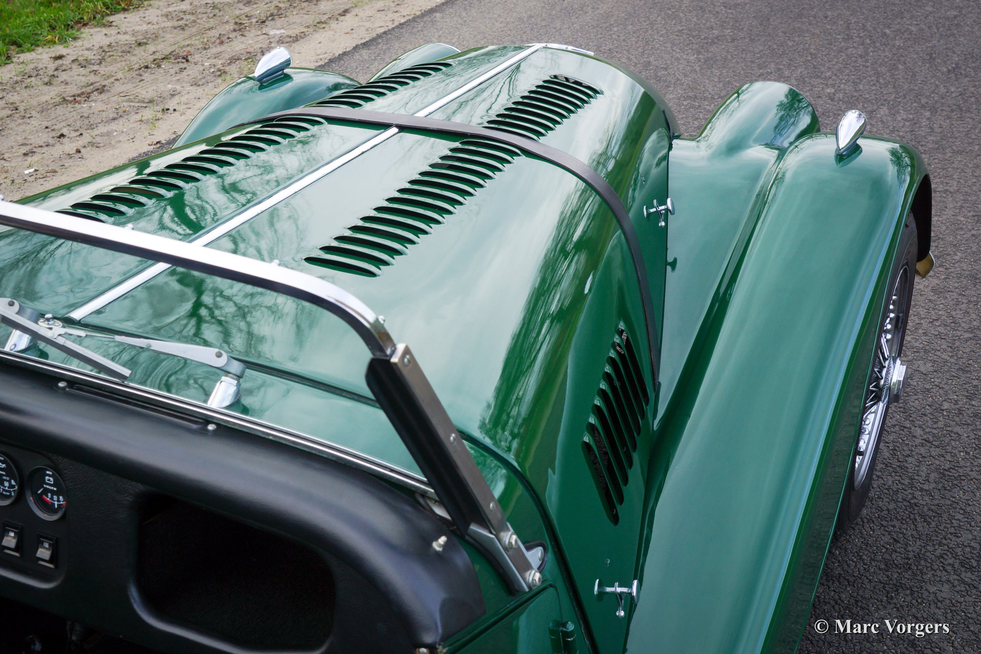 Morgan 4/4, bouwjaar 1984. Chassis nummer C64XX. Kleur groen met een zwart lederen interieur. Deze prachtige Morgan werd aangekocht door de laatste eigenaar toen de auto zes maanden oud was. Gedurende 29 jaar zorgde deze eigenaar uitstekend voor de auto. Deze Morgan 4/4 heef vanaf nieuw slechts 14.435 km gereden, de auto is in sublieme originele staat! Dit is een kans om een nagenoeg in nieuwstaat verkerende Morgan 4/4 te bemachtigen! De auto is voorzien van chroom spaakwielen, een stuurwiel met houten rand, een tonneau cover en een chroom kofferrek.