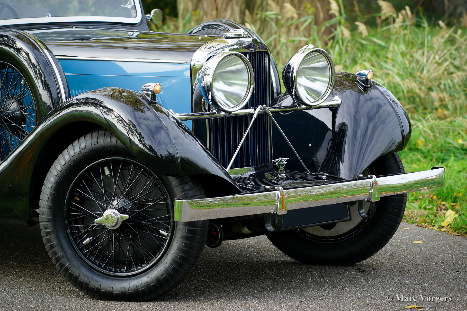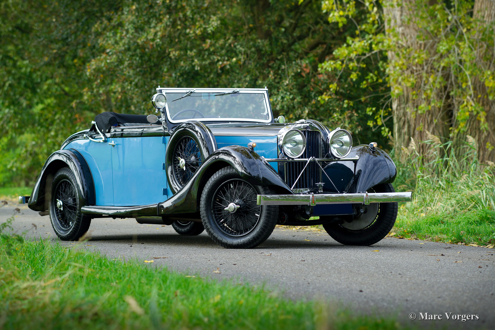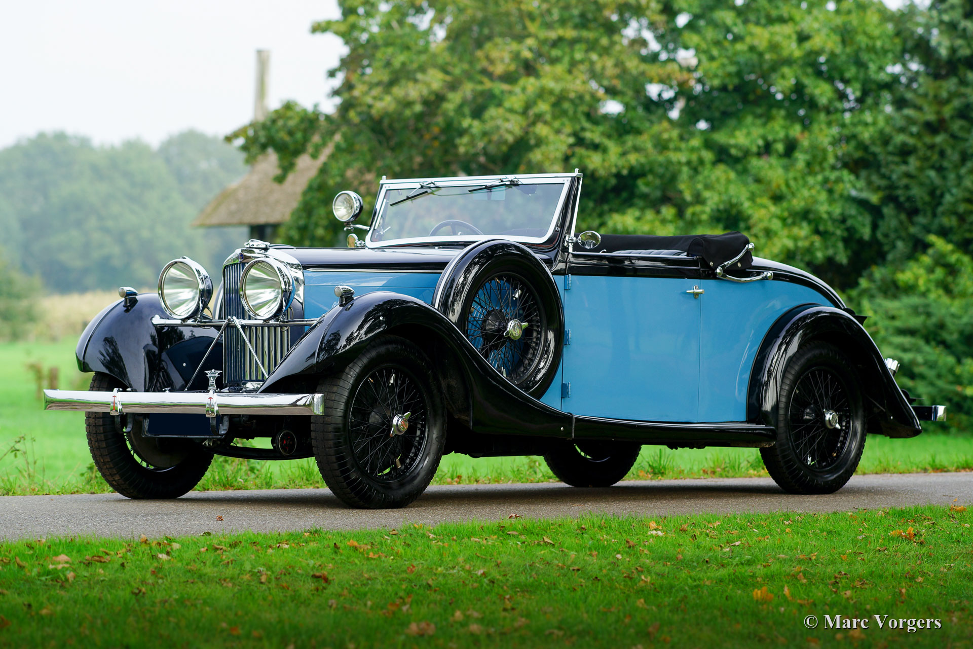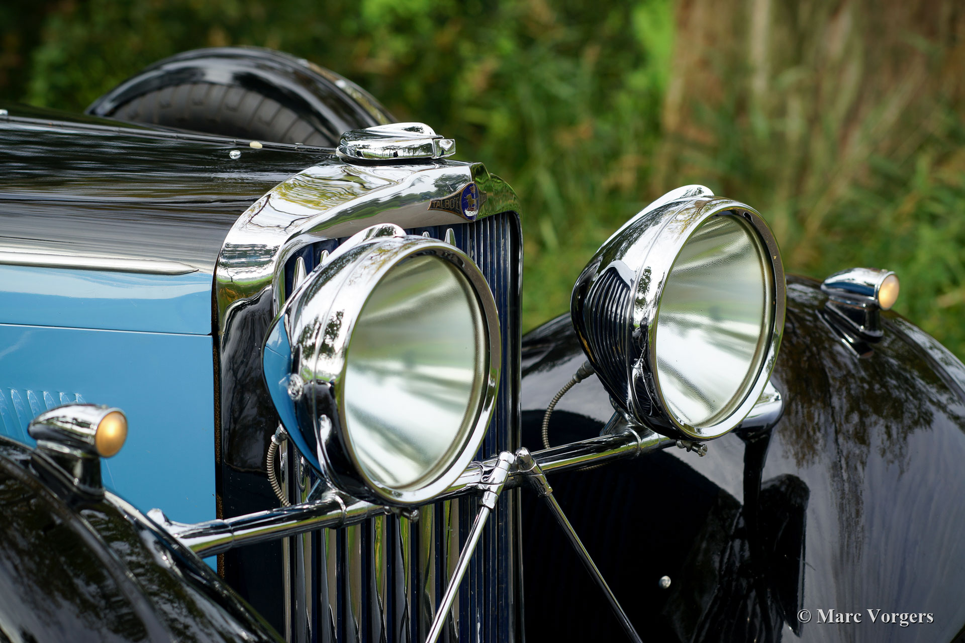 Talbot BA 105 Drop Head Coupe, jaar 1935. Kleur ‘two-tone’ zwart met blauwe flanken en zwarte spaakwielen. Grijs leren interieur. Talbot maakte vanaf 1920 deel uit van het Engels Franse ‘STD’ concern (Sunbeam-Talbot-Darracq) dat onder leiding van constructeur Louis Coatalen vele race successen behaalde en snelheidsrecords wist te veroveren. Talbot automobielen werden gebouwd in Frankrijk en Engeland (Londen). Deze prachtige Talbot BA 105 DHC is een exemplaar van Engelse origine. Er werden slechts 23 BA 105 chassis gebouwd die, zoals in die tijd gebruikelijk was, voorzien werden van speciale handgemaakte carrosserieën. Deze Talbot BA 105 werd voorzien van een Fixed Head Doctors Coupe carrosserie door Carlton Carriage Company in Londen. De Talbot werd op 2 augustus 1935 geleverd aan autohandelsbedrijf Tozer, Kemsley & Milbourn Ltd. die de Talbot verscheepten naar de eerste eigenaar in Zuid-Afrika. De Talbot is af fabriek uitgerust met een subliem schakelende ‘preselector’ versnellingsbak die zelfs automatisch opschakelt wanneer de koppeling wordt bediend. In 1993 kwam de automobiel in handen van de vierde eigenaar. Deze ondernam een zeer gedegen restauratie. Het essenhout van de carrosserie werd vernieuwd, de techniek gereviseerd, de aluminium carrosserie nieuw opgebouwd met weglating van het dak waardoor er een Drop Head Coupe ontstond. Op het dak na is deze Talbot BA 105 zeer origineel en de auto heeft ‘matching numbers’. Deze geweldige Talbot werd in 2017 van Zuid-Afrika naar Nederland verscheept. In de periode 2017 – 2019 is er veel in de Talbot geïnvesteerd om de auto technisch up-to-date te brengen en te houden, werkelijk alles is onderhanden genomen. In dezelfde periode heeft de Talbot probleemloos aan verschillende historische ‘pre-war’ rally evenementen deelgenomen inclusief een grote rally van de Talbot club in Nieuw-Zeeland! Deze prachtige Talbot BA 105 verkeert in een uitstekende conditie, de auto staat klaar voor ieder nieuw avontuur. Dit is een zeldzame, zeer originele en zeer fijn rijdende pre-war automobiel met een bijzondere gedocumenteerde historie.