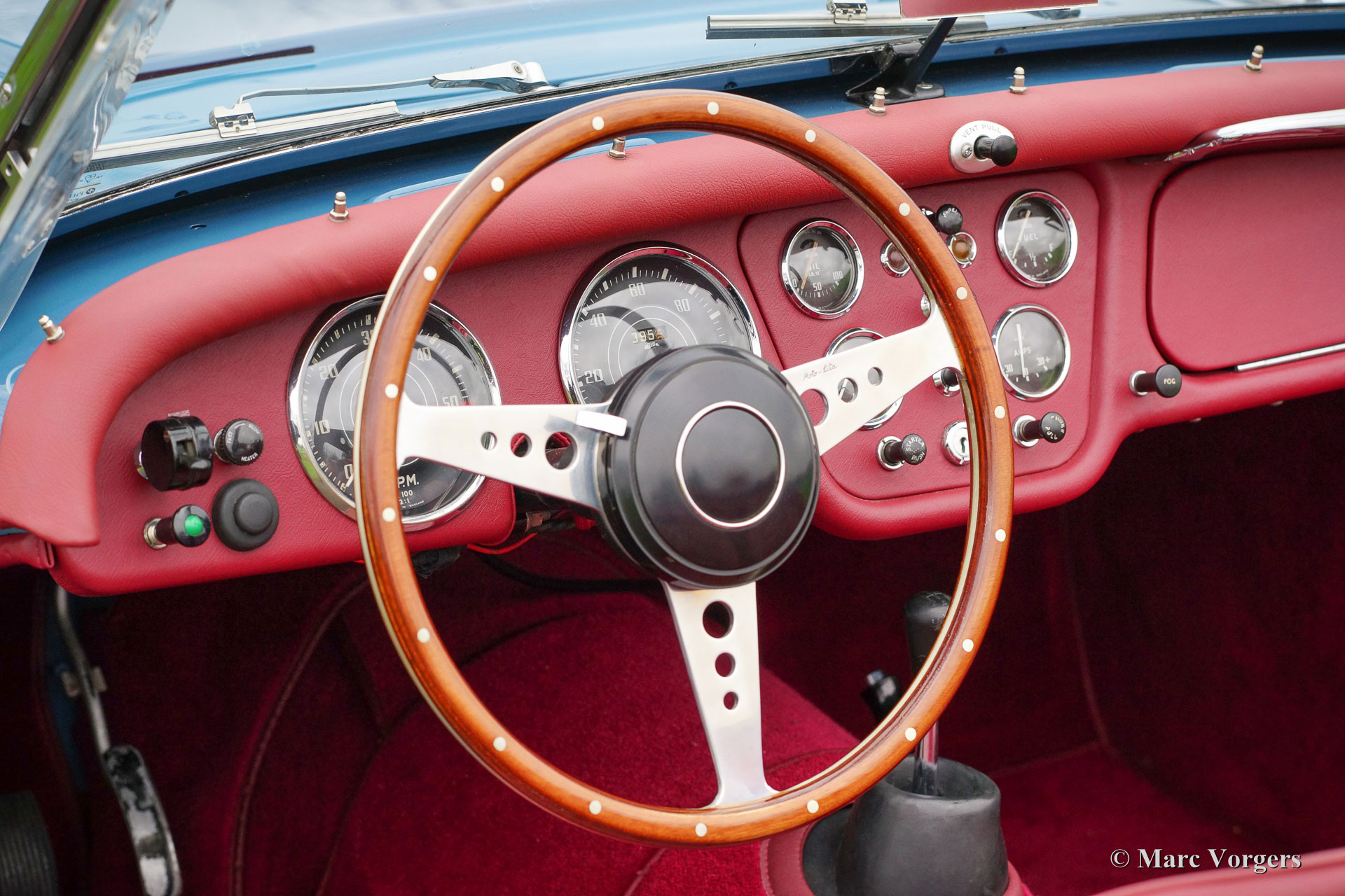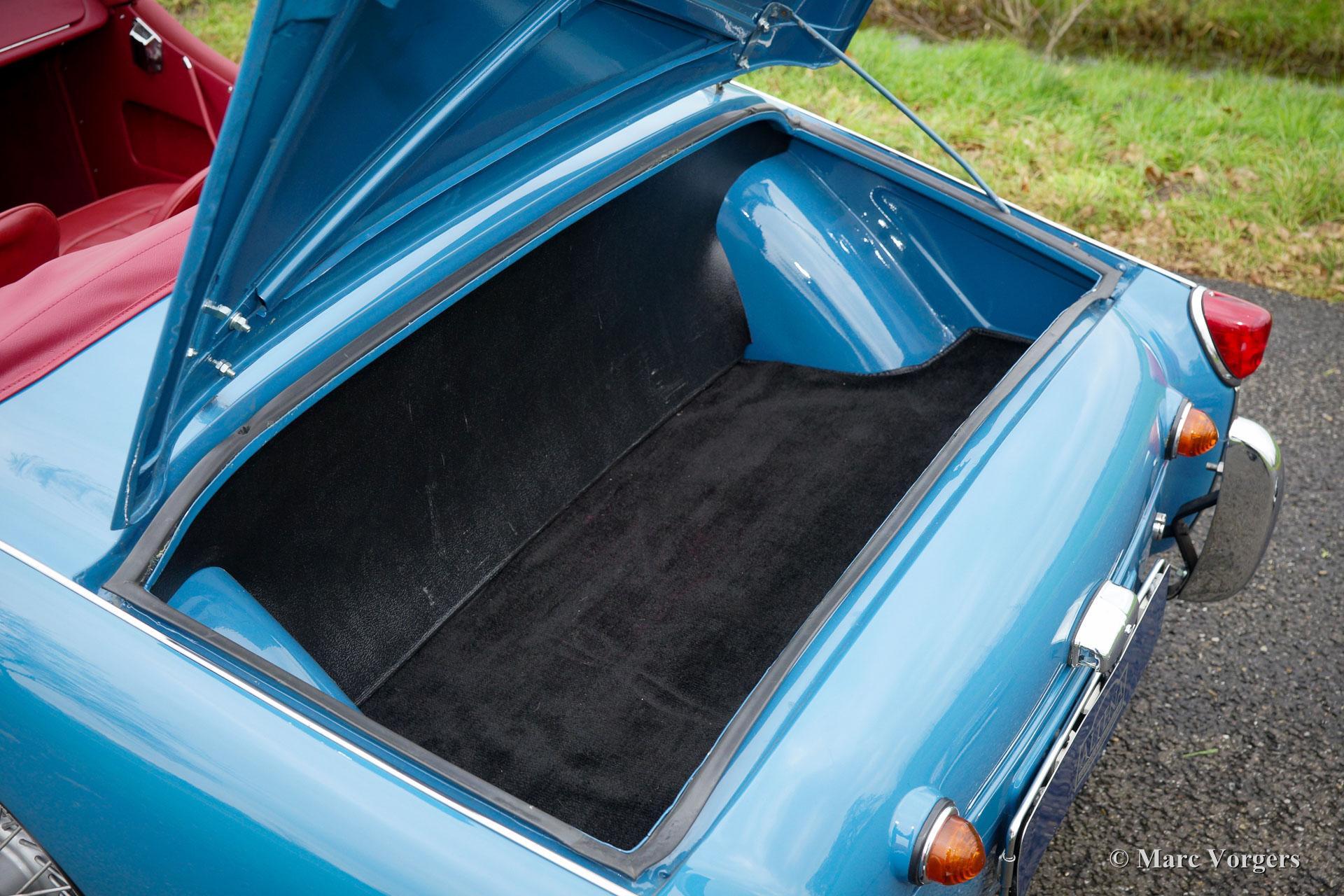 Triumph TR 3, bouwjaar 1957. Kleur blauw met een roodlederen interieur en rood tapijt. Deze geweldige en ‘matching numbers’ Triumph TR 3 werd in het jaar 2014 uitvoerig en prachtig ‘body off’ gerestaureerd, de auto verkeert in sublieme staat. De motor en de overdrive werden gereviseerd door de firma van Giersbergen. De motor levert 126 pk en is voorzien van twee dubbele Weber carburateurs, een elektrische benzinepomp, een aluminium radiateur, een oliekoeler, Kenlow koelventilator, een high torque startmotor en een wisselstroomdynamo. Verder is deze prachtige TR 3 uitgerust met een MotoLita stuur met houten rand, overdrive en schijfremmen aan de voor- en achterwielen. Tevens aanwezig een Heritage certificaat, een Fiva Identity Card en een Onixx rapportage (de auto werd afgesteld en het vermogen gemeten op de rollenbank). Een fantastisch exemplaar dat zelfs Mille Miglia ‘eligible’ is!