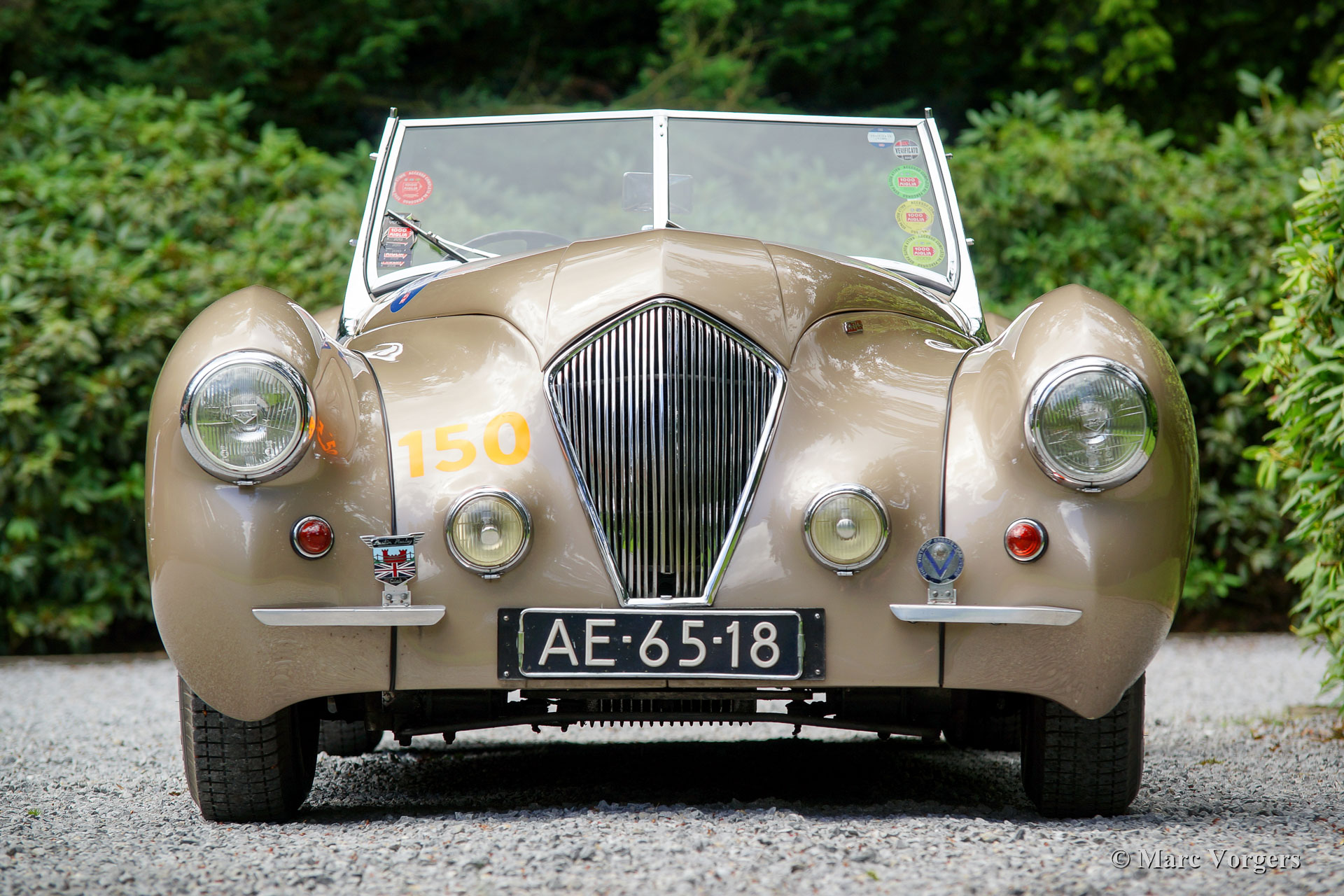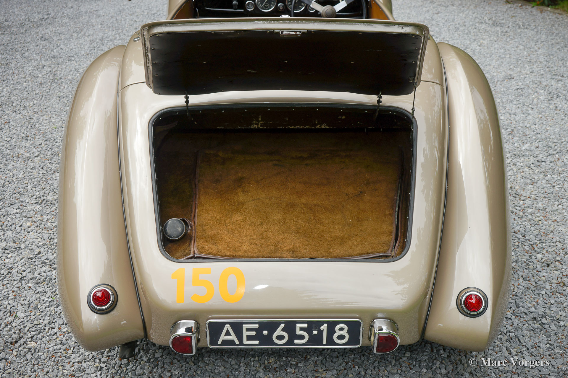 Westland Healey Roadster, jaar 1947 (eerste toelating 28 februari 1947). Kleur brons metallic met een bruinleren interieur. Het betreft een zeer zeldzame sportwagen; er werden slechts 64 exemplaren gebouwd tussen 1946 en 1950. Deze geweldige Westland Healey werd nieuw verkocht in Californië, USA. De auto werd in 1999 in Nederland geïmporteerd; vanaf dat moment kende de auto slechts een eigenaar. Deze Westland Healey is een grote bekende uit de hedendaagse Mille Miglia, de auto heeft deelgenomen aan dit befaamde evenement in de jaren 2008, 2009, 2011, 2012, 2014 en 2018. Alle door de officials aangebrachte loden ’seals’ hangen als ‘stille getuigen’ aan de stuurstang en de keuringsstickers zitten nog fier op de voorruit.