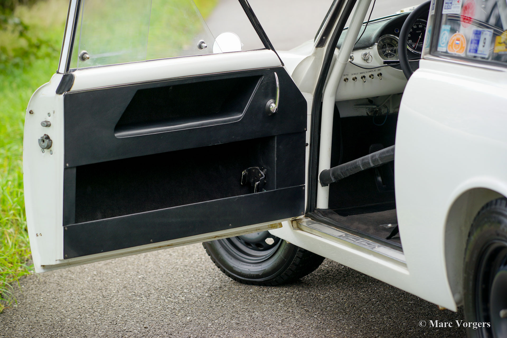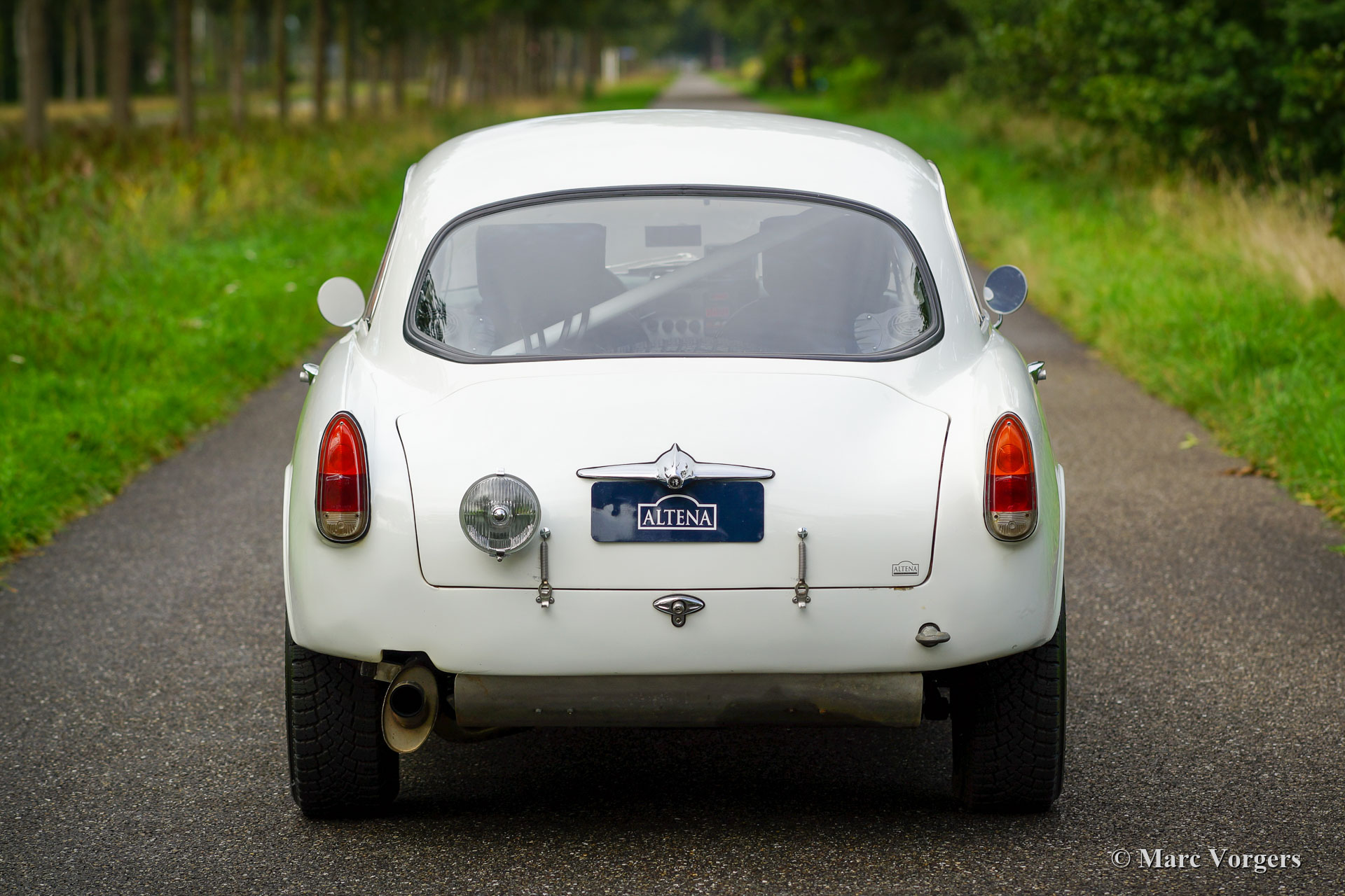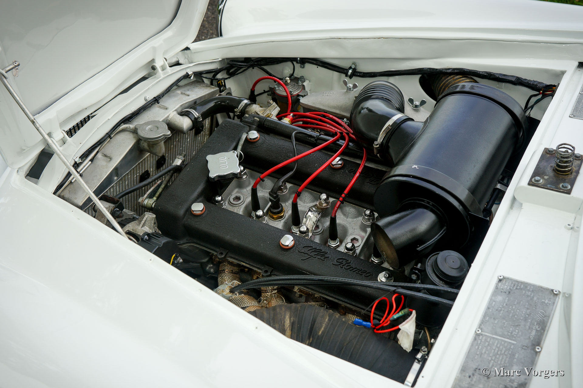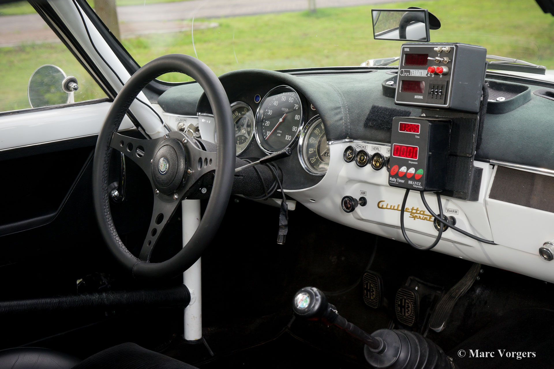 Alfa Romeo Giulietta Sprint Veloce, jaar 1959. Kleur wit (Bianco Sardenia), zwarte wielen en een zwart rally interieur met een donkergrijs alcantara bekleed dashboard. Deze prachtige Alfa Romeo Giulietta Sprint Veloce werd gebouwd op 30 juli 1959. Op 1 augustus werd de auto afgeleverd bij de eerste eigenaar in Brescia, Italië. Vervolgens werd de Alfa Romeo naar Nederland geëxporteerd, waar de auto werd uitvoerig werd gerestaureerd, gereviseerd en geprepareerd voor historische (lange afstand) rallyevenementen. In het jaar 2010 vond deze fantastische Giulietta Sprint Veloce een nieuwe eigenaar in Zweden. De auto is nog altijd geregistreerd in Zweden. Deze prachtige rallyauto is voorzien van een volledige rolkooi, oliecarter en benzinetank-beschermplaten, een aluminium radiator, een speciale roestvrijstalen uitlaat, een oliekoeler, extra benzinepomp, sperdifferentieel, sleepoog aan de voor- en achterzijde, speciale rallystoelen, vierpunts veiligheidsgordels, Tripmaster, extra interieurlampen en extra verstralers en mistlampen de voorzijde. De auto wordt compleet geleverd met een FIVA-identiteitskaart. Onlangs heeft de auto met succes deelgenomen aan een langeafstandsevenement door Afrika. Natuurlijk is de auto nadien weer volledig nagezien en geserviced. De auto wordt geleverd met veel originele onderdelen: motor, ophanging, benzinetank, achteras en uitlaat. Dit is een indrukwekkende en fraaie historische rallyauto!