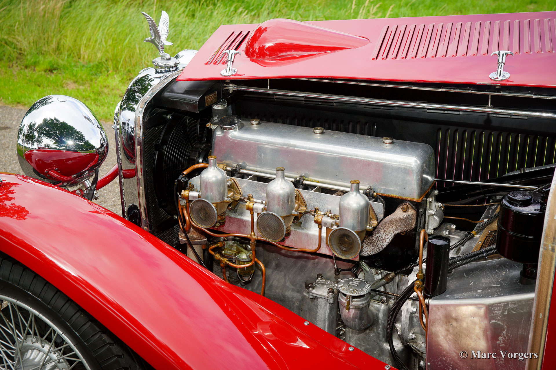 Alvis Speed 20 SA tourer, jaar 1932. Kleur rood gecombineerd met een lichtgrijs lederen interieur en lichtgrijs tapijt. Lichtgrijze kap, tonneaucover en kap-afdekking, allemaal afgezet met rode biezen. Deze schitterende Alvis Speed 20 SA Tourer werd in 1932 nieuw verkocht aan een familie Hebert in Engeland. De originele bestelformulieren voor het chassis en de Vanden Plas Tourer carrosserie zijn aanwezig in het uitgebreide historiedossier. De historie is vanaf dag 1 compleet en alle vorige eigenaren zijn bekend! Deze super originele Alvis Speed 20 is een ‘matching numbers’ auto, het originele Alvis ‘car record’, met vermelding van de originele nummers is aanwezig. De laatste eigenaar koestert de Alvis sinds 1996. In de periode 2000-2003 is de auto door een gespecialiseerd bedrijf volledig en perfect gerestaureerd. De mechanische componenten zijn gereviseerd en gerestaureerd door Alvis-specialist Early Engineering in het Verenigd Koninkrijk. De restauratie is tot in de puntjes uitgevoerd. Een uitgebreide fotoreportage van de restauratie is aanwezig. De automobiel verkeert in excellente tot sublieme conditie en de auto rijdt, schakelt, remt en stuurt voortreffelijk! Dit is een zeldzame kans om een Alvis Speed 20 in prachtig gerestaureerde en nog super originele staat te bemachtigen, compleet met volledige historie en ‘matching numbers’. Deze Alvis Speed 20 SA Tourer is een fantastische vondst voor de Alvis verzamelaar en liefhebber.