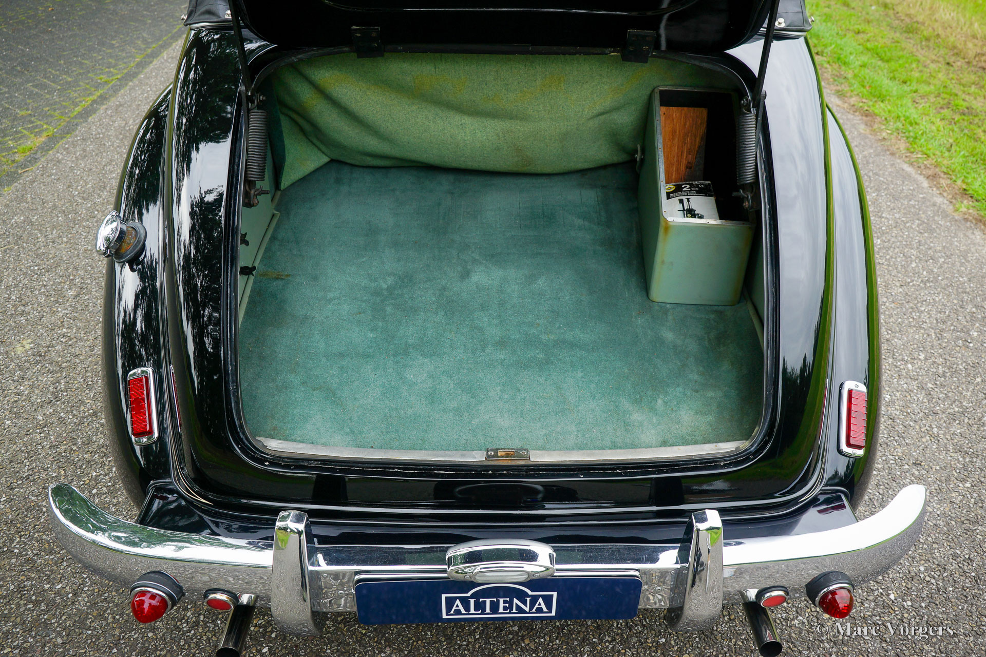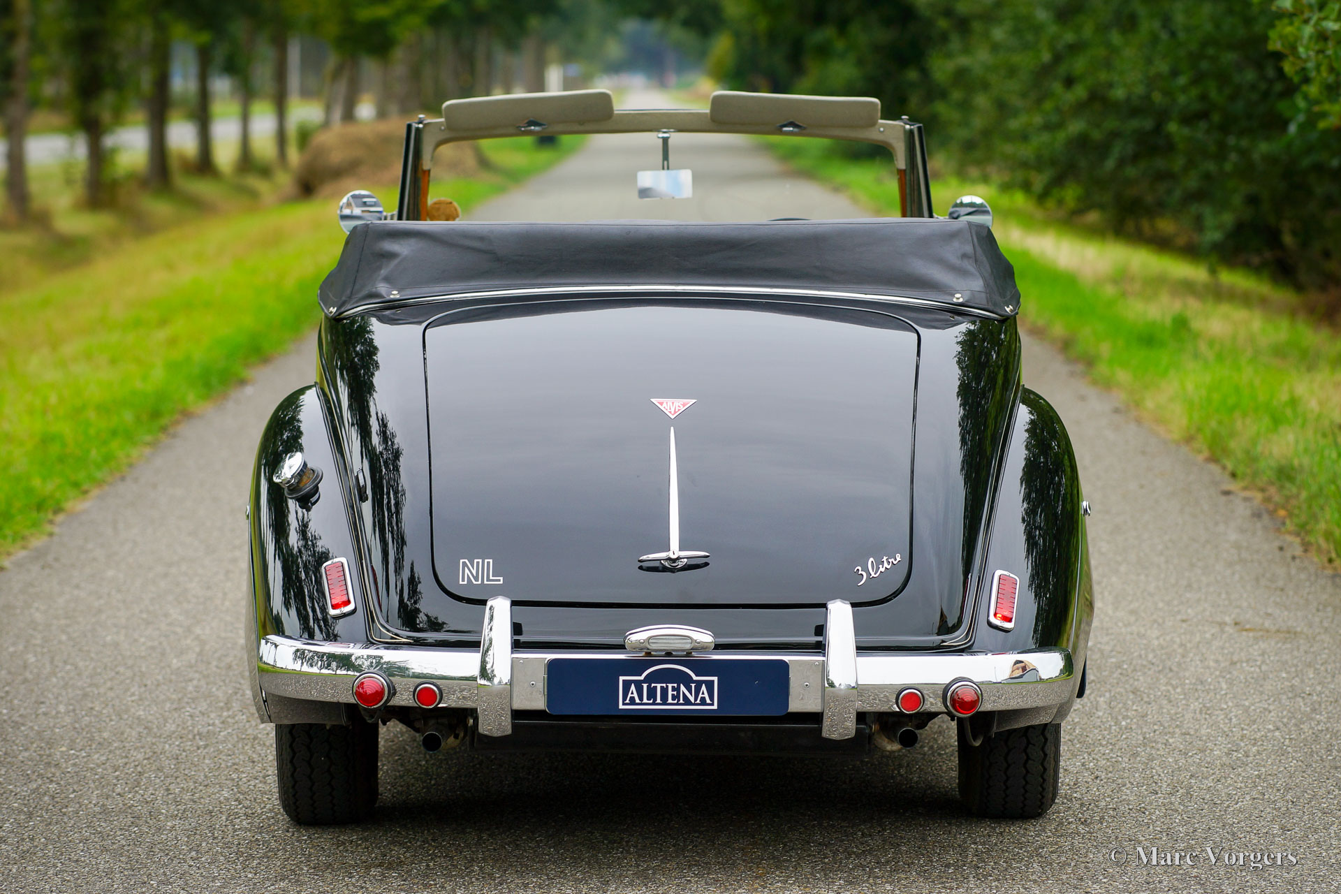 Alvis TC21 100 cabriolet, jaar 1955. Kleur ‘two-tone’ zwart boven grijs gecombineerd met een lichtgroen lederen interieur en bijpassend tapijt. Zwarte vinyl kap met drie standen en grijze vilten hemelbekleding. Deze voortreffelijke Alvis TC21 100 cabriolet is in 2007 vanuit het Verenigd Koninkrijk naar Nederland geïmporteerd. In het Verenigd Koninkrijk had auto het kenteken KNR999. Deze fraaie automobiel heeft door de jaren heen veel aandacht gekregen, deze Alvis verkeert in een excellente conditie! De auto heeft 15 jaar deel uitgemaakt van een autoverzameling. De eigenaar heeft de Alvis regelmatig gereden en de auto is zorgvuldig onderhouden. De Alvis toont fantastische originele details. De auto is voorzien van chromen spaakwielen, een klassieke Blaupunkt radio met chromen front (geen FM), extra koelopeningen voor in de motorkap en Lucas SLR/SFT spot/mistlampen voor. Deze Alvis TC21 100 cabriolet is een schitterend exemplaar van topkwaliteit!
