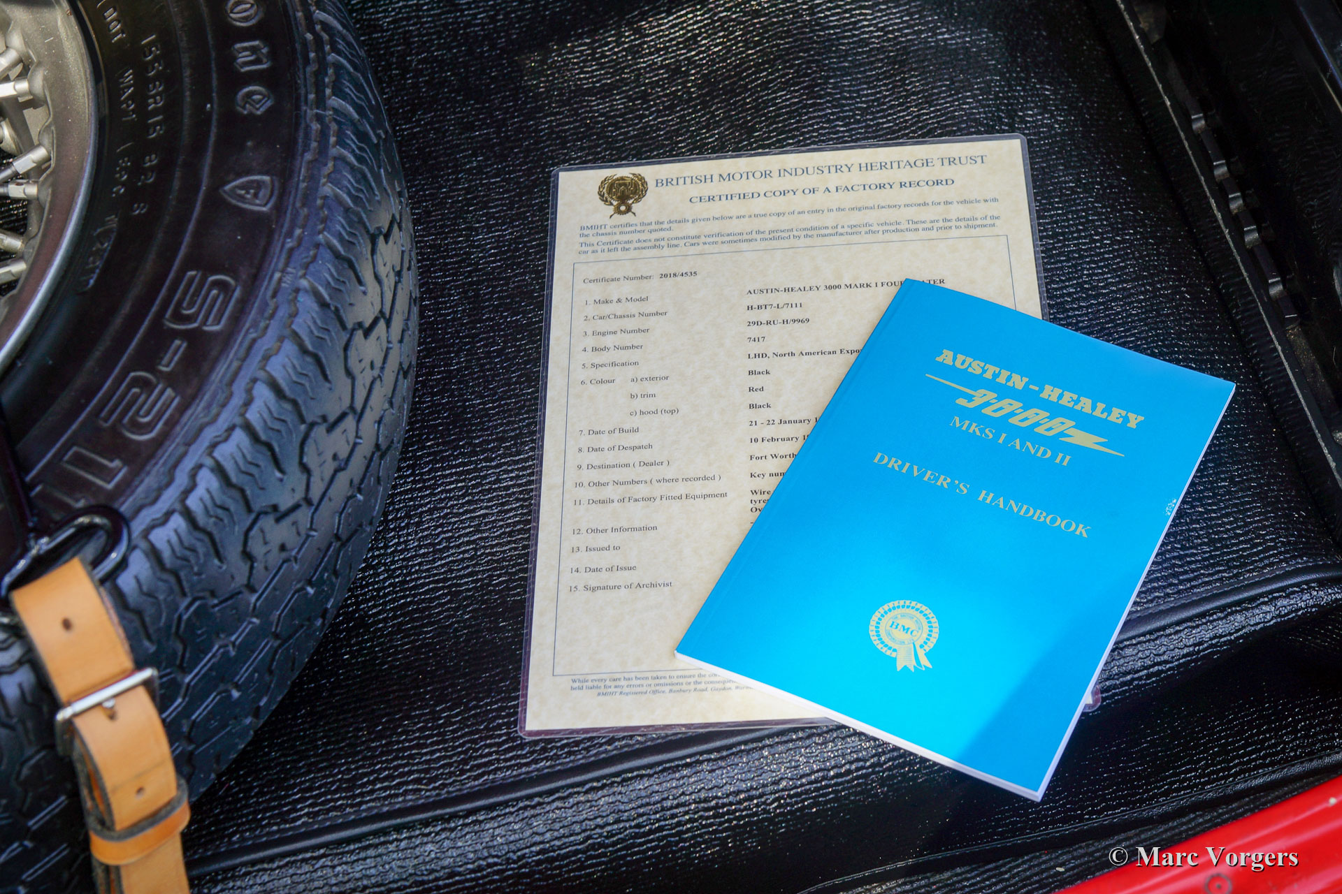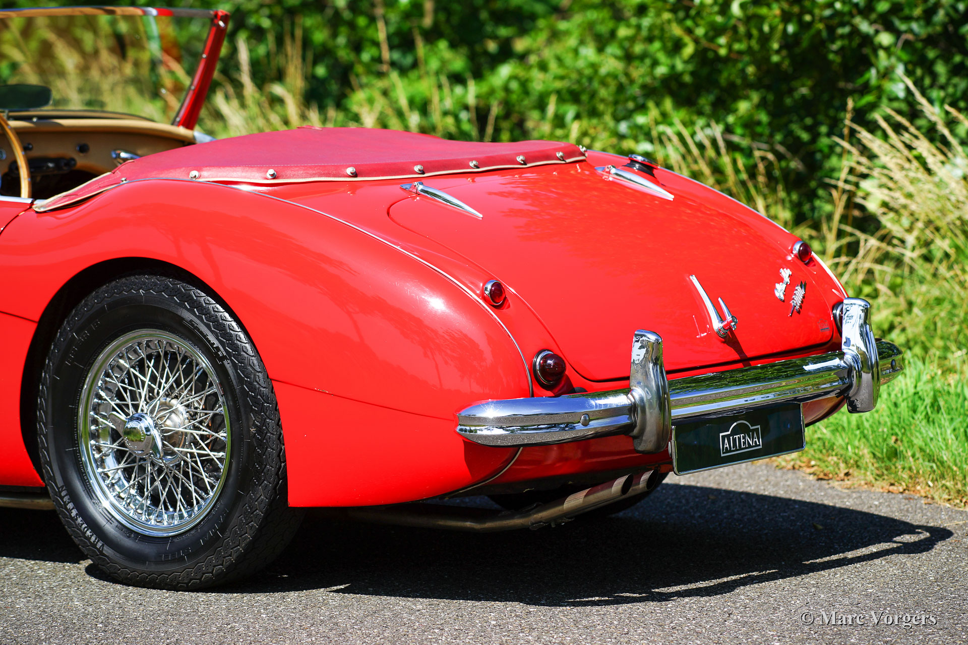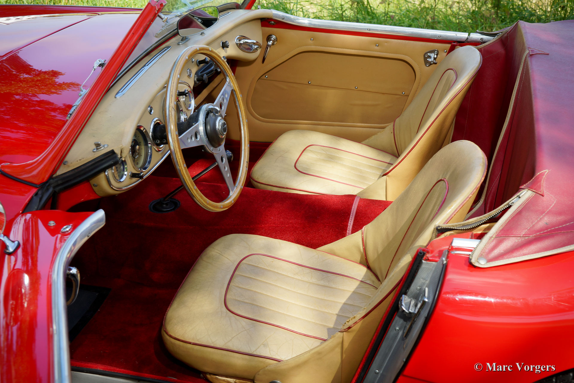 Austin Healey 3000 Mk I, jaar 1960. ‘Matching numbers’. Een Heritage certificaat om dit te bevestigen is aanwezig. Kleur rood gecombineerd met een beige leren interieur afgewerkt met rode biezen en rood tapijt. Zwarte soft-top, zijruiten met zwarte frames en een donkerrode tonneau cover. Deze prachtige Austin Healey werd nieuw verkocht in Fort Worth, Texas, USA. In het jaar 1993 werd de auto in Nederland geïmporteerd. De Austin Healey 3000 Mk I is het eerste Austin Healey-model met de 3-liter zescilindermotor. Deze zeer fraaie 'Big Healey' werd eind jaren negentig volledig gerestaureerd. In 2002 verkocht Altena Classic Service deze schoonheid aan de huidige eigenaar. De auto is altijd punctueel en perfect onderhouden. Deze fantastische Austin Healey verkeert in zeer goede staat en de auto rijdt fantastisch! De carrosserie toont een fraaie paneelpassing en prachtige chromen details. De motor is prachtig gedetailleerd! Deze begeerlijke Austin Healey Mk I is uitgerust met overdrive, verchroomde spaakwielen met Vredestein Sprint Classic-banden, een verchroomde badge-bar met Lucas SLR/ SFT 576 mist / spot-lampen en een MotoLita sportstuur met houten rand. De auto is goed gedocumenteerd. Zeer interessante prijsstelling voor deze kwaliteit!