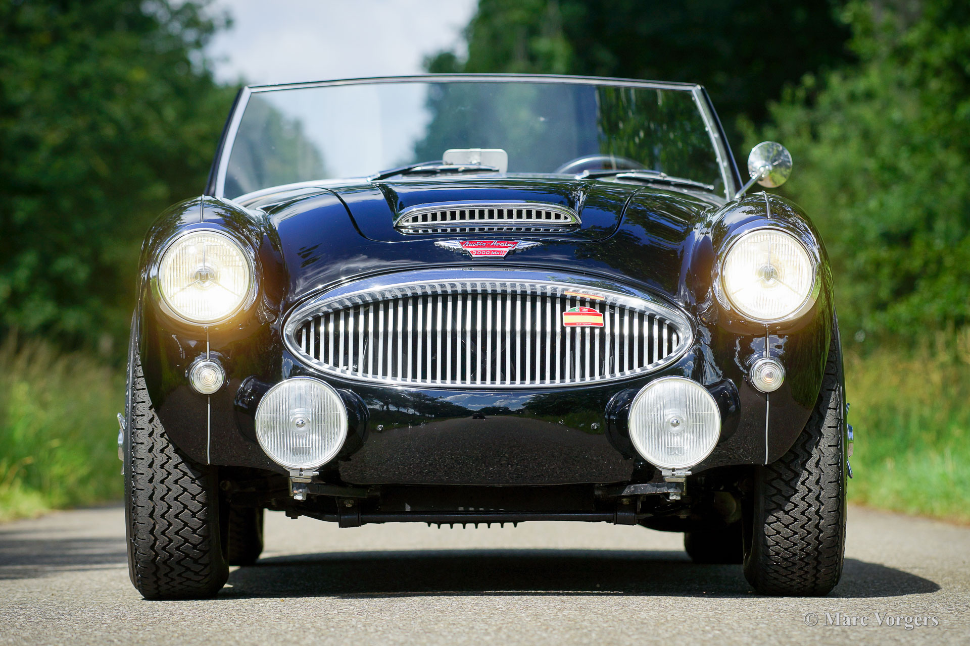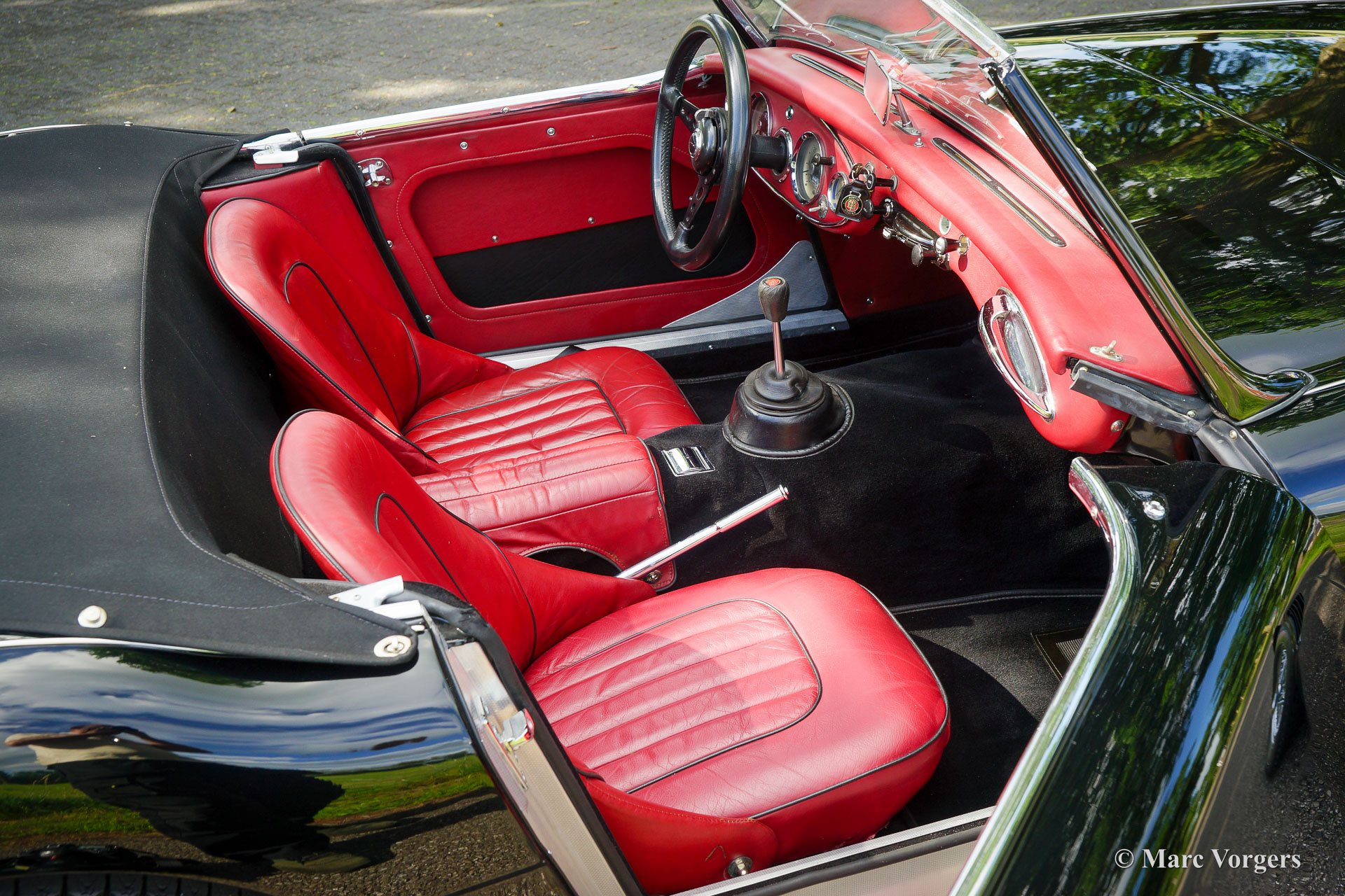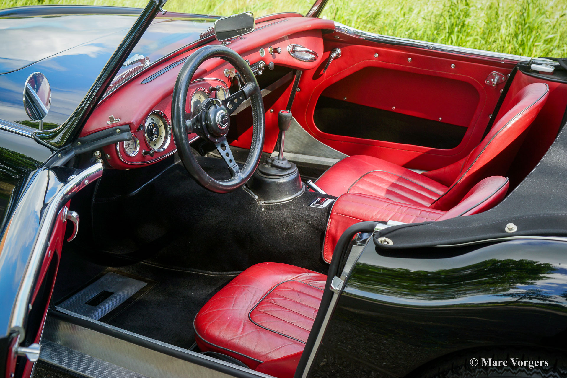Austin Healey 3000 Mk II, jaar 1959. Kleur zwart gecombineerd met een donkerrood lederen interieur afgewerkt met zwarte biezen en zwart tapijt. Zwarte mohair soft-top, tonneau cover en hood-cover. Zijruiten met aluminium frames. Deze prachtige ‘Big Healey’ is in de periode 2013-2014 uitvoerig gerestaureerd, gereviseerd en getuned door Denis Welch in het Verenigd Koninkrijk. De restauratie is uitgevoerd in opdracht van de huidige eigenaar. De firma Denis Welch is een gerenommeerde Austin Healey-specialist, ook bekend om hun Austin Healey-rallyconversies. Deze prachtige Austin Healey 3000 Mk II is prachtig gerestaureerd, een fotoreportage en facturen van de restauratie zijn aanwezig. De restauratie- en revisiekosten overschreden de € 100.000. De krachtige 3-liter motor kreeg speciale upgrades en is voorzien van twee S.U. HD8 carburateurs, 123 elektronische ontsteking, een wisselstroomdynamo, Denis Welch aluminium kleppendeksel en nog veel meer. Sinds voltooiing van de restauratie heeft de auto 13.000 kilometer gereden en is de auto onderhouden door een Austin Healey specialist. Deze fraaie ‘Big Healey’ is voorzien van chromen spaakwielen, chromen ‘knock-on’ wielmoeren, grote Lucas SFT700 mistlampen/ breedstraler vóór, chromen ‘bumperettes’ achter, een zij-uitlaat, speciale louvres voor extra motorkoeling in de spatborden, een 5-versnellingsbak en een MotoLita sportstuur met lederen rand. Deze Austin Healey is een bijzonder fraai en sportief exemplaar. Een kwaliteitsexemplaar voor de Austin Healey-liefhebber!