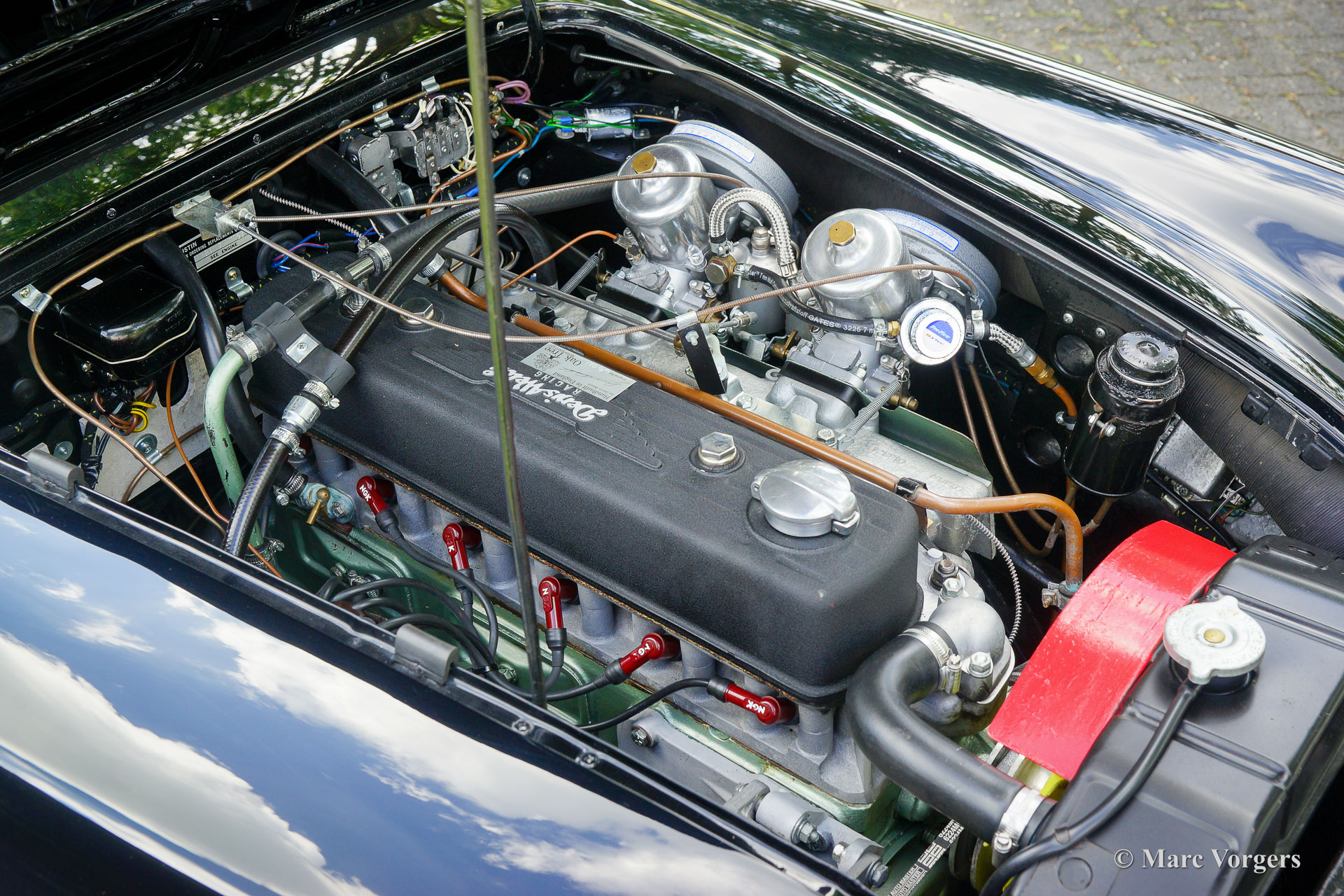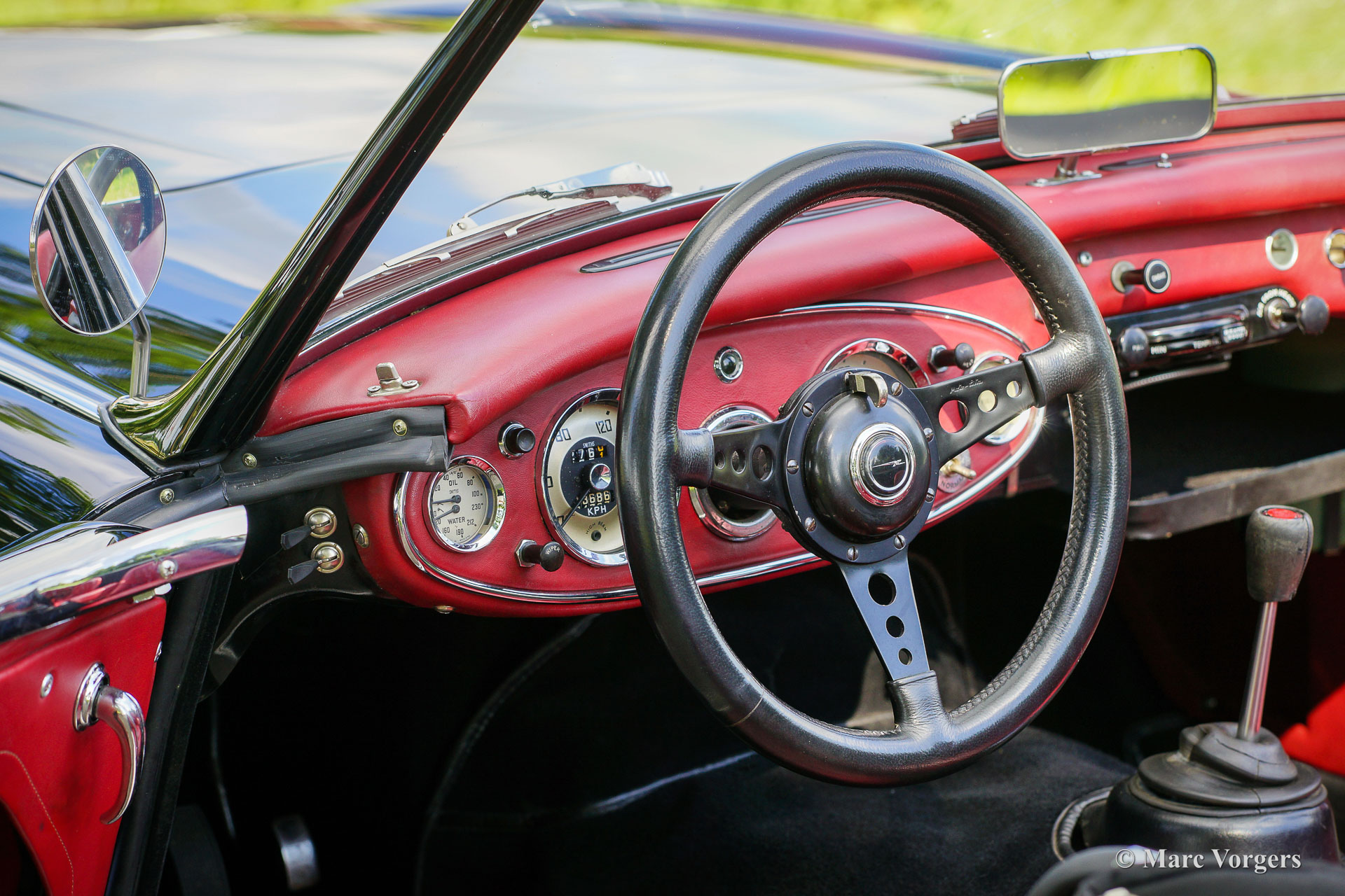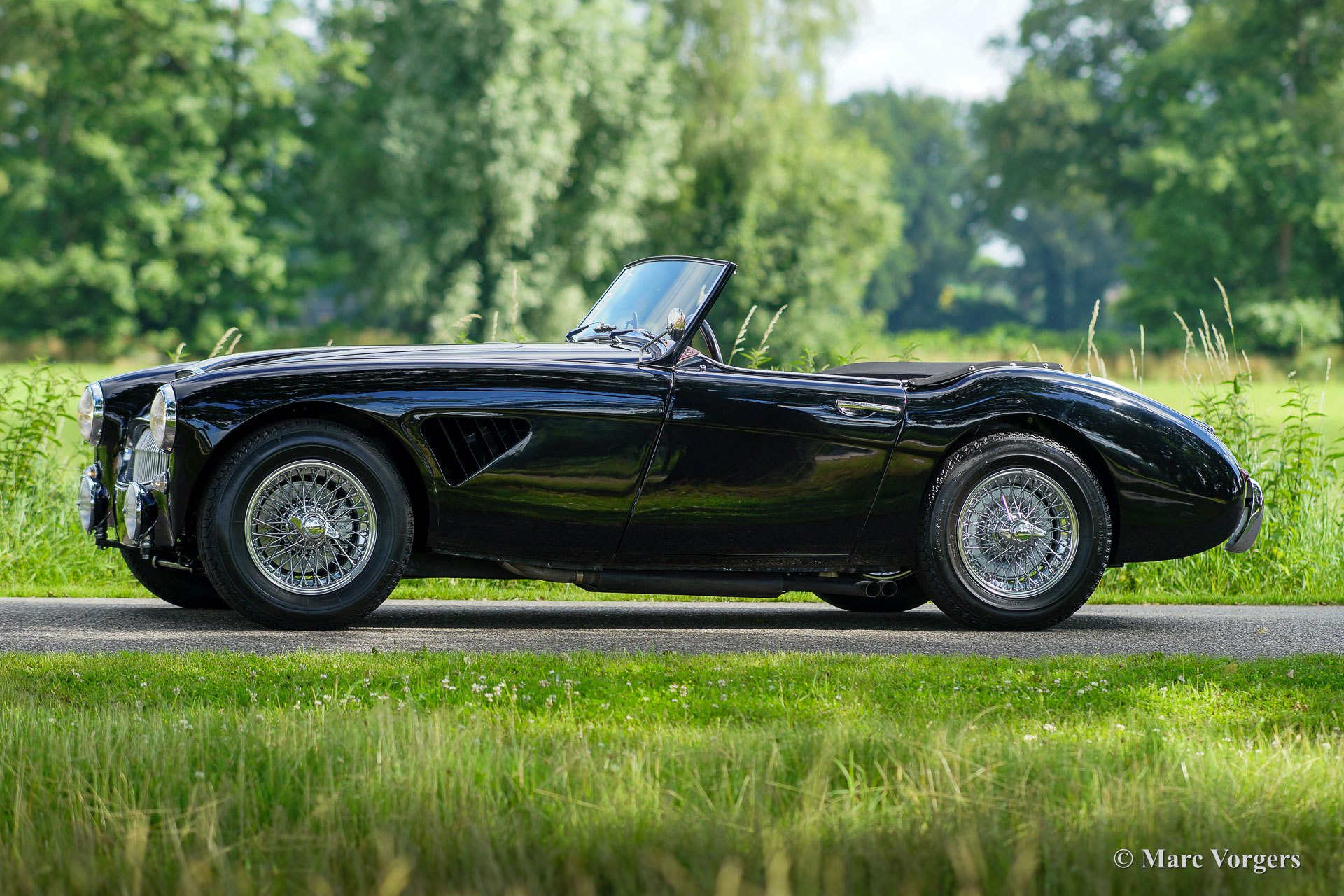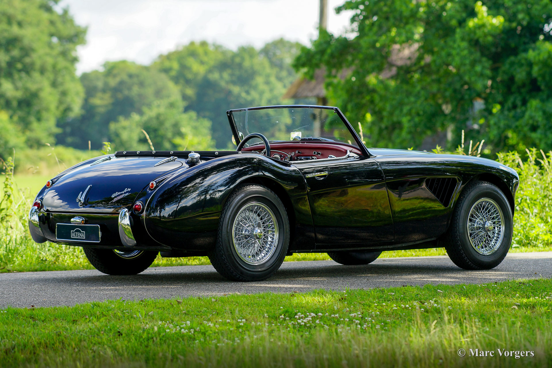 Austin Healey 3000 Mk II, jaar 1959. Kleur zwart gecombineerd met een donkerrood lederen interieur afgewerkt met zwarte biezen en zwart tapijt. Zwarte mohair soft-top, tonneau cover en hood-cover. Zijruiten met aluminium frames. Deze prachtige ‘Big Healey’ is in de periode 2013-2014 uitvoerig gerestaureerd, gereviseerd en getuned door Denis Welch in het Verenigd Koninkrijk. De restauratie is uitgevoerd in opdracht van de huidige eigenaar. De firma Denis Welch is een gerenommeerde Austin Healey-specialist, ook bekend om hun Austin Healey-rallyconversies. Deze prachtige Austin Healey 3000 Mk II is prachtig gerestaureerd, een fotoreportage en facturen van de restauratie zijn aanwezig. De restauratie- en revisiekosten overschreden de € 100.000. De krachtige 3-liter motor kreeg speciale upgrades en is voorzien van twee S.U. HD8 carburateurs, 123 elektronische ontsteking, een wisselstroomdynamo, Denis Welch aluminium kleppendeksel en nog veel meer. Sinds voltooiing van de restauratie heeft de auto 13.000 kilometer gereden en is de auto onderhouden door een Austin Healey specialist. Deze fraaie ‘Big Healey’ is voorzien van chromen spaakwielen, chromen ‘knock-on’ wielmoeren, grote Lucas SFT700 mistlampen/ breedstraler vóór, chromen ‘bumperettes’ achter, een zij-uitlaat, speciale louvres voor extra motorkoeling in de spatborden, een 5-versnellingsbak en een MotoLita sportstuur met lederen rand. Deze Austin Healey is een bijzonder fraai en sportief exemplaar. Een kwaliteitsexemplaar voor de Austin Healey-liefhebber!