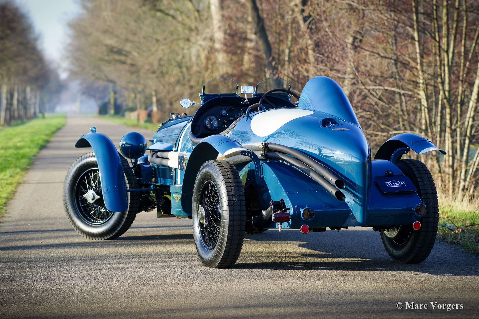 Bentley Special 3/8 Racer, bouwjaar chassis 1951. Deze indrukwekkende Bentley Special werd met de hand gebouwd door Racing Green Engineering uit Zuid-Wales in het Verenigd Koninkrijk, en eind 2020 voltooid. Kleur blauw met crème witte accenten, hoogglans zwart chassis en spaakwielen. Interieur afgewerkt met zwart leer, en zwart mohair slechtweer uitrusting. Deze prachtige Bentley Special 3/8 Racer is gebaseerd op een Bentley Mk VI-chassis uit 1951 dat volledig is gerestaureerd en verstevigd om de eveneens volledig herbouwde Bentley B81 6516 cc achtcilinder lijnmotor en de (volledig gesynchroniseerde) handgeschakelde Bentley-vierversnellingsbak op te nemen. De carrosserie is een toonbeeld van vakmanschap. Het ontwerp is geïnspireerd op de lijnen en details van vintage racewagens en meesterlijk gemaakt door de vakmensen van Racing Green Engineering. De bouw en afwerking van deze bijzondere automobiel zijn van de beste kwaliteit die u in de klassieke-auto-industrie aantreft. Deze Bentley verkeert in als nieuw topstaat! De rijervaring maakt indruk op al uw zintuigen; de grote achtcilinder lijnmotor trekt als een locomotief en het geluid van de uitlaat doet denken aan een onweer in de bergen. De hoge zit met geweldig open zicht rondom, en het uitzicht over de machtige motorkap geven je het gevoel een gevechtsvliegtuigpiloot op de weg te zijn. Deze Bentley Special rijdt, schakelt, remt en stuurt buitengewoon goed en gemakkelijk voor zo'n grote, zware en krachtige machine. De auto heeft ook enkele praktische kenmerken; het interieur biedt veel ruimte voor bestuurder en bijrijder, en een grote kofferruimte die vanachter de stoelen toegankelijk is. Deze Bentley Special is geregistreerd in Nederland en kan naar elk land geëxporteerd worden. Een zeer begeerlijke machine...