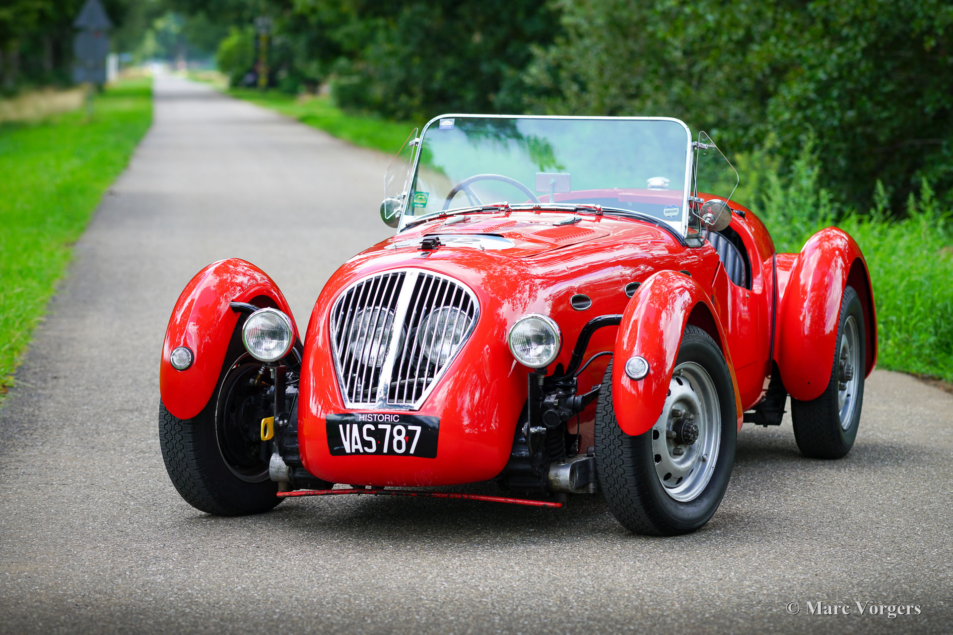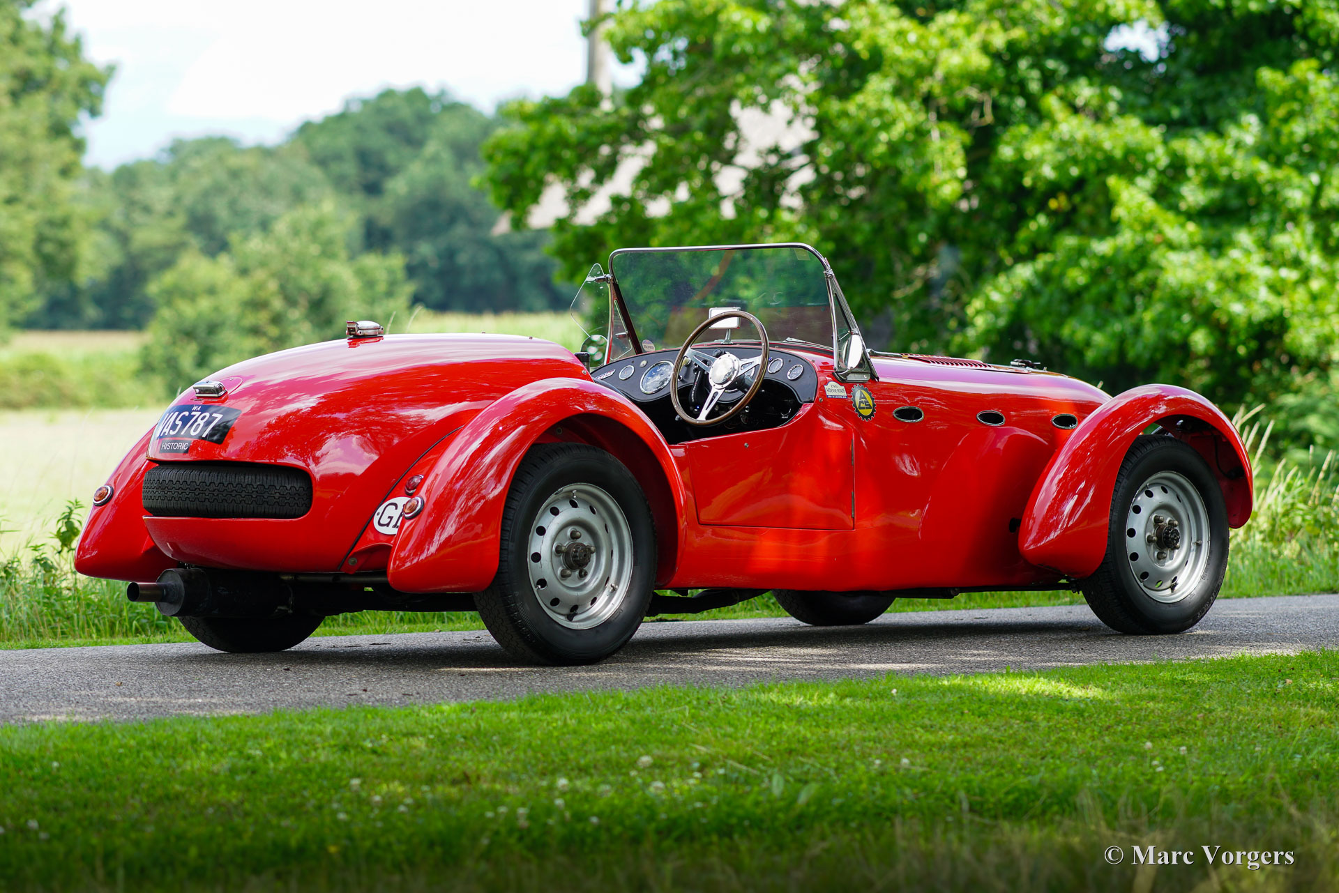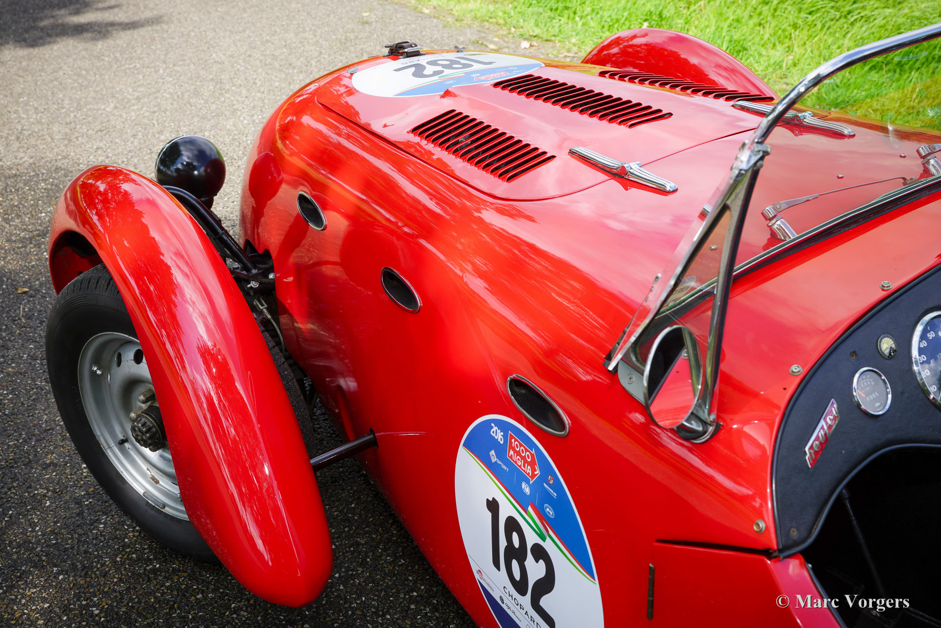 Healey Silverstone D-type, bouwjaar 1949. Chassisnummer D23, motornummer B3738. Kleur rood gecombineerd met een zwart interieur en zilver gelakte wielen. Deze magnifieke Healey Silverstone heeft een Amerikaanse en Europese racegeschiedenis en de auto heeft deelgenomen aan de Mille Miglia 2016. Deze zeldzame Healey Silverstone is nieuw verkocht naar de USA, de volledige historie is bekend en gedocumenteerd. Halverwege de jaren 50 werd de auto gedeeltelijk beschadigd door een brand en vervolgens gekocht door George Hoffmann uit Los Angeles. Hoffmann liet de Silverstone repareren en voorzien van een vaste voorruit en de ovale koelopeningen in de zijkanten van de motorruimte. Deze Healey Silverstone stond in maart 1957 in het Amerikaanse automagazine Road & Track. In 1979 werd de Healey Silverstone in erbarmelijke staat aangetroffen door de Amerikaan Mr. Clifford Jones die begon aan een volledige restauratie van vier jaar om de auto terug te brengen naar topconditie. Na voltooiing van de restauratie in de jaren tachtig racete Mr. Jones met de auto op Laguna Seca in Californië. In 2004 werd de Healey gekocht door de historische VSCC- en HSCC-coureur Stewart Wilkie, die met de auto racete op Silverstone, Donington en Le Mans in de jaren 2004 en 2005. De heer Wilkie verkocht de Silverstone aan een Australiër die de auto reed in Australische clubraces in de jaren 2005 en 2006. De Healey Silverstone is een zeldzame sportwagen. Van juli 1949 tot september 1950 werden 105 exemplaren gebouwd: 51 D-Types en 54 E-Types. Donald Healey Motor Company bouwde het chassis en Riley leverde de 2400 cc 'Big Four'-motoren (met dubbele nokkenassen en bovenliggende kleppen), versnellingsbak met 4 versnellingen en achteras. In die tijd was de Healey Silverstone de ultieme droom van clubracers. Sinds 2016 is de Healey Silverstone in bezit van een Healey-liefhebbersfamilie in België. Ze namen met succes deel aan de Mille Miglia 2016 met deze fantastische Healey Silverstone D-type. Ze hebben de auto laten onderhouden en perfectioneren door topspecialisten. Deze Healey Silverstone verkeert in een zeer goede conditie met een fantastisch patina. De auto rijdt en stuurt perfect en wordt geleverd met een afneembare rolbeugel voor circuitgebruik. Deze fantastische Healey Silverstone kan uw toegangsbewijs zijn voor een toekomstige Mille Miglia regelmatigheidsrace!