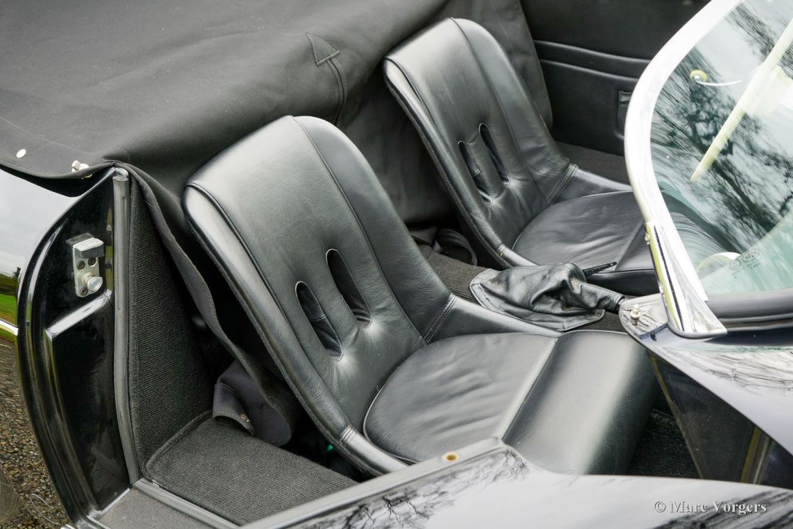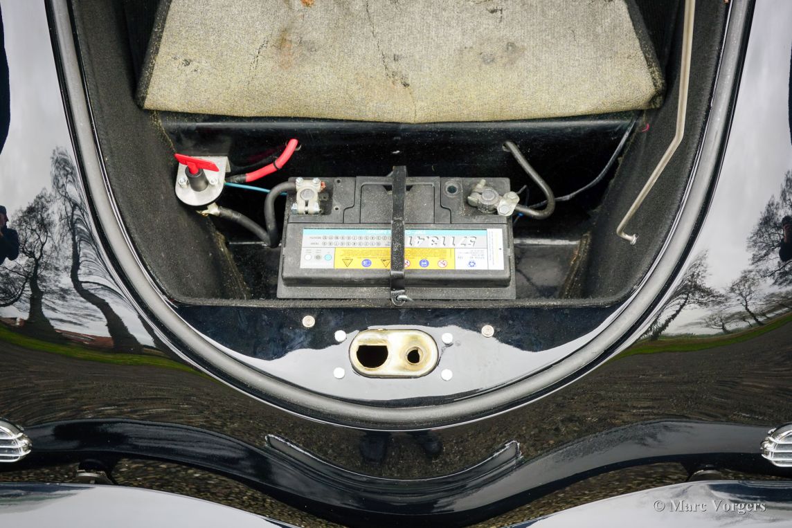 356 Speedster recreatie op VW-chassis uit 1965. Chassisnummer: 1156376671. Uitgevoerd in ‘triple black’ met zwarte carrosserie, een zwart interieur en een zwarte soft-top, ziet deze prachtige recreatie van de 356 Speedster er verbluffend uit! Deze schitterende Speedster recreatie is gebouwd op een ingekort chassis van een Volkswagen Kever uit 1965. De carrosserie van deze recreatie is exact gevormd naar de originele 356 A Speedster (met de gebogen voorruit) die Porsche tussen 1955 en 1959 produceerde en is gemaakt van glasvezelversterkte kunststof (GRP) in plaats van metaal. Alle details van het exterieur en interieur komen overeen met het origineel. Het dashboard, de meters, het stuurwiel, de versnellingspook, de deurgrepen, de logo's en emblemen (niet zichtbaar op de foto’s wegens Porsche eigendomsrechten), de koplampen en achterlichten, de wielen en de wieldoppen zijn allemaal identiek aan het origineel. De zachte vloermatten zijn een latere toevoeging, maar ze geven deze Spartaanse sportwagen een extra comfortabele uitstraling! De luchtgekoelde VW-viercilinder boxermotor levert pittige prestaties en produceert een indrukwekkend geluid. Deze recreatie van de 356 Speedster verkeert in een prachtige en zeer goede staat; de auto vertoont slechts lichte gebruikssporen. De auto wordt geleverd met zwarte mohair soft-top, tonneauhoes en zijruiten en is geregistreerd in Nederland. Er zijn ongeveer 4144 originele Porsche 356 Speedsters (waarvan 2910 A-modellen) gebouwd door Porsche. Deze auto's zijn zeldzaam, zeer gewild en daardoor erg duur. Een goede replica is echter betaalbaar en kan voor velen een ideaal alternatief zijn om te genieten van de schoonheid, stijl en bijzondere rijervaring van een 356 Speedster. Dit is een prachtig exemplaar dat van buiten alleen door een specialist van een origineel te onderscheiden is.
