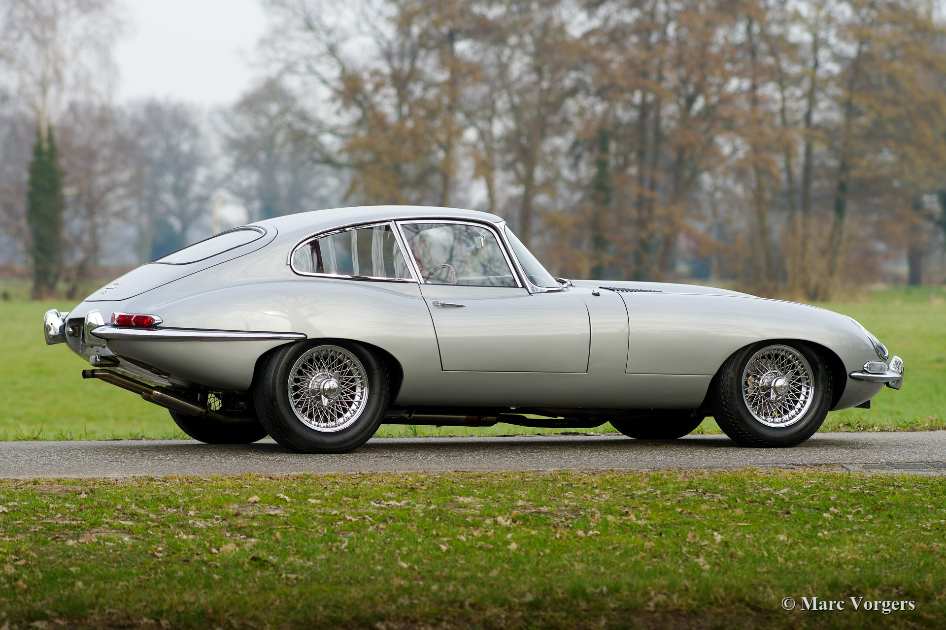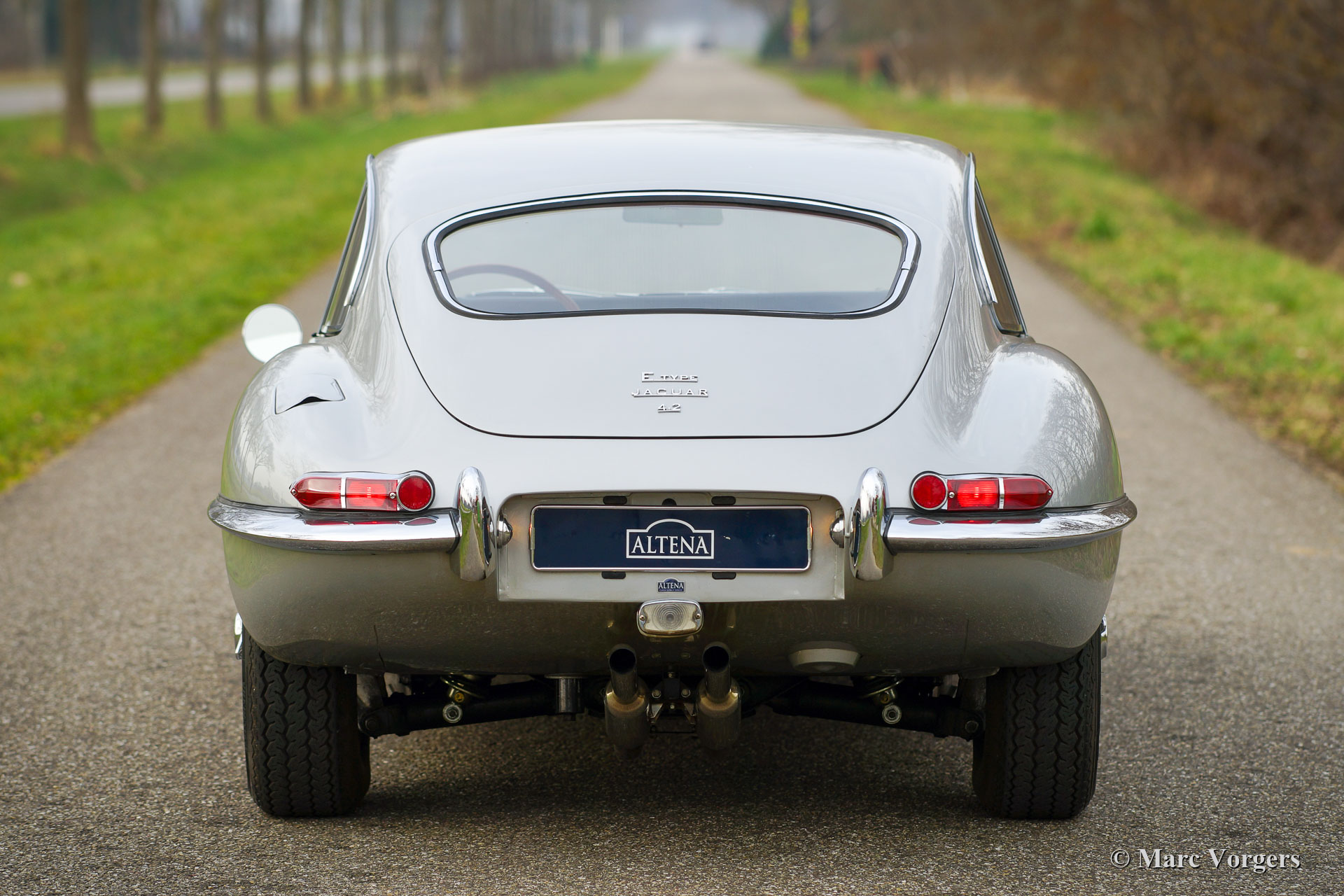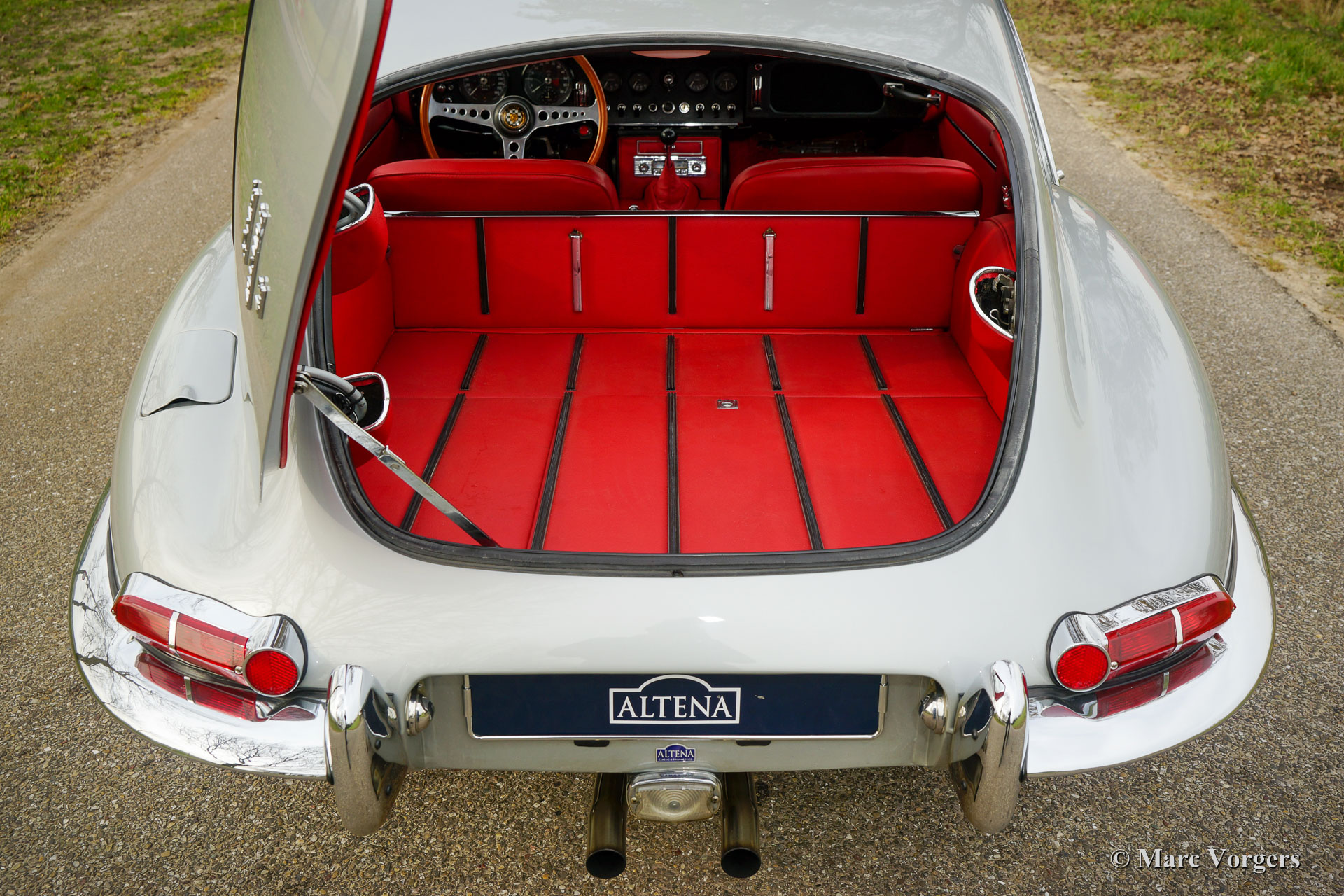 Jaguar E-Type 4.2 Liter serie 1 FHC, jaar 1966. Dit is een „Matching Numbers” E-type, een Heritage-certificaat is aanwezig om dit te bevestigen. Kleur zilver metallic gecombineerd met een roodlederen interieur en rood tapijt. Deze fantastische Jaguar E-type 4.2 Liter FHC is nieuw verkocht door Jaguar Cars uit New York aan Mr. L. Ryder uit Kent, Washington. In 2002 is de auto in Nederland geïmporteerd. Na aankomst in Nederland is de auto in de jaren 2005 - 2007 uitvoerig “nut and bolt” gerestaureerd. Een fotoreportage en documentatie van de restauratie is aanwezig. Alles is gerestaureerd, gereviseerd en/ of vernieuwd. De carrosserie is gerestaureerd vanaf het blanke metaal en is afgewerkt met een 2K laksysteem in zilver metallic. De motor, versnellingsbak, wielophanging, remmen en de dashboardmeters zijn gereviseerd en de chroomdelen zijn opnieuw verchroomd. Er is een nieuwe kabelboom gemonteerd en het interieur is voorzien van nieuwe lederen bekleding en tapijt. Bij deze restauratie zijn kosten noch moeite bespaard. Nu veertien jaar later verkeert de Jaguar E-type nog steeds in uitstekende conditie! De auto is gekoesterd door Jaguar-liefhebbers en sinds 2014 is de auto onderhouden door Altena classic Service. Deze Jaguar E-type is een fantastische rijdersauto, de krachtige motor loopt en klinkt geweldig, de versnellingsbak schakelt perfect en de besturing en wegligging zijn uitstekend! Deze fantastische Jaguar E-type 4.2 Liter FHC (Fixed Head Coupé) wordt geleverd met de originele gebruikershandleiding (in zeldzaam origineel etui) en zeven (!) ordners gevuld met historie, foto's en restauratie/ servicefacturen. Deze prachtige Jaguar E-type is klaar voor elk avontuur in handen van een nieuwe trotse eigenaar.