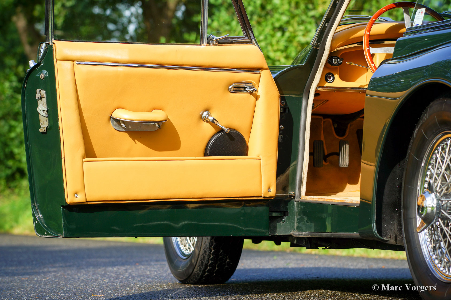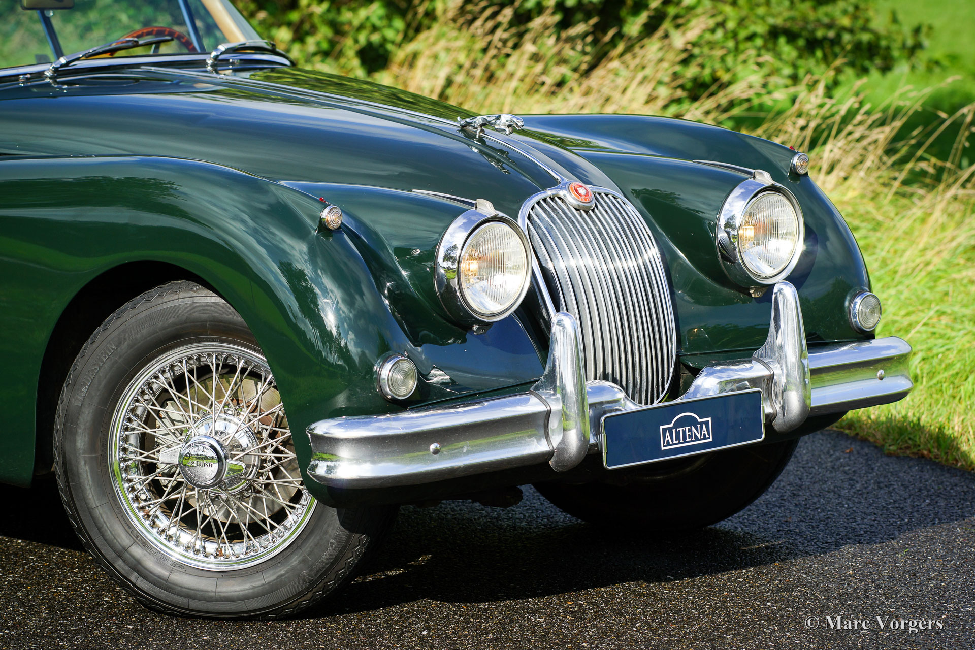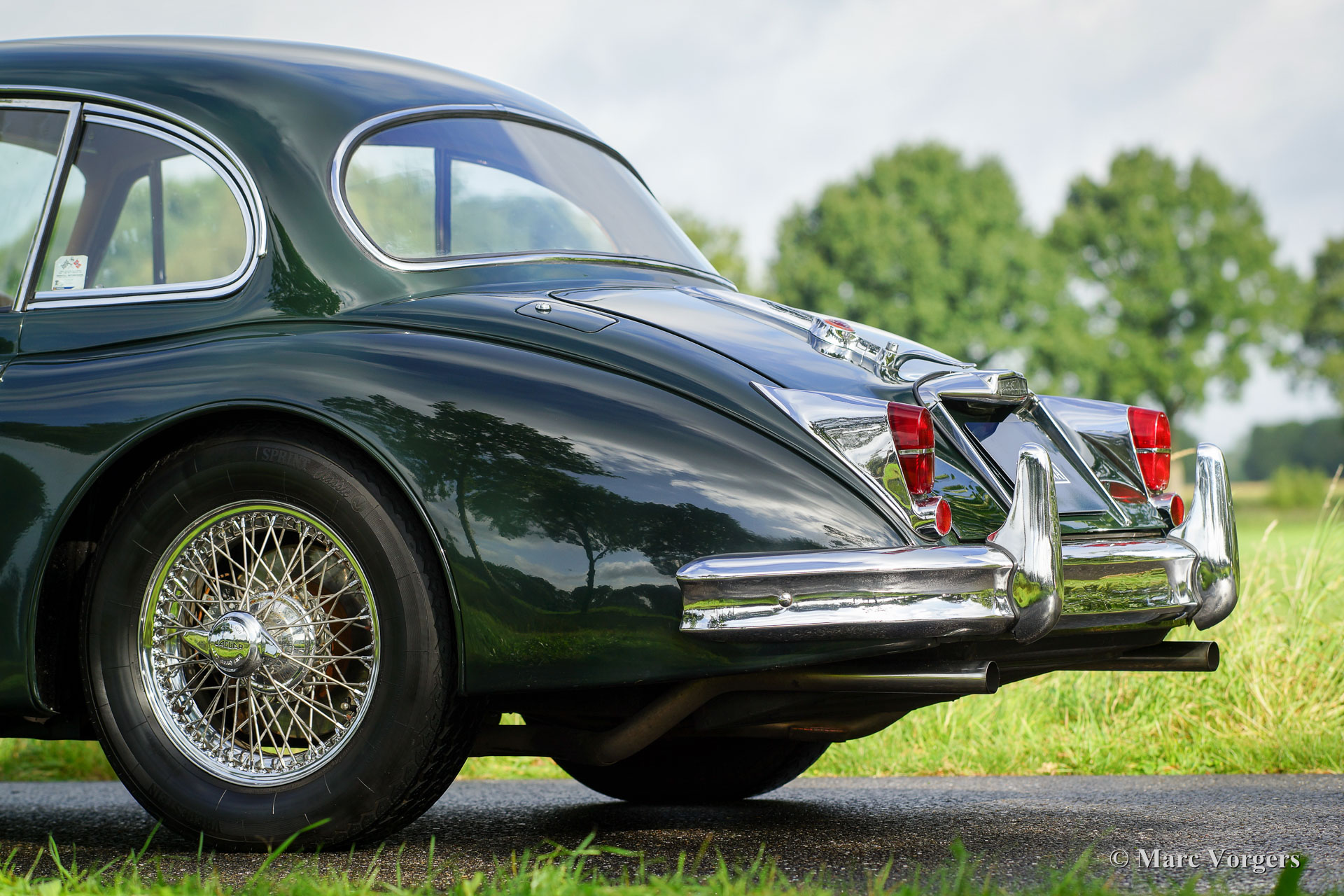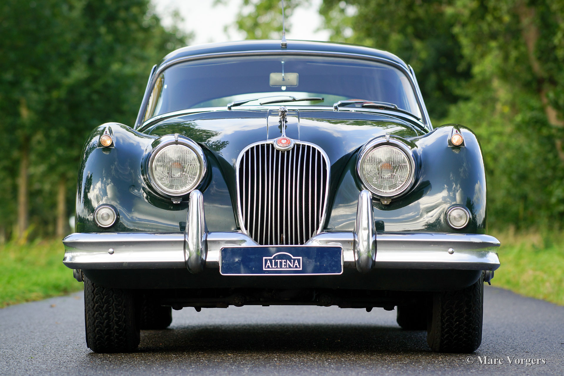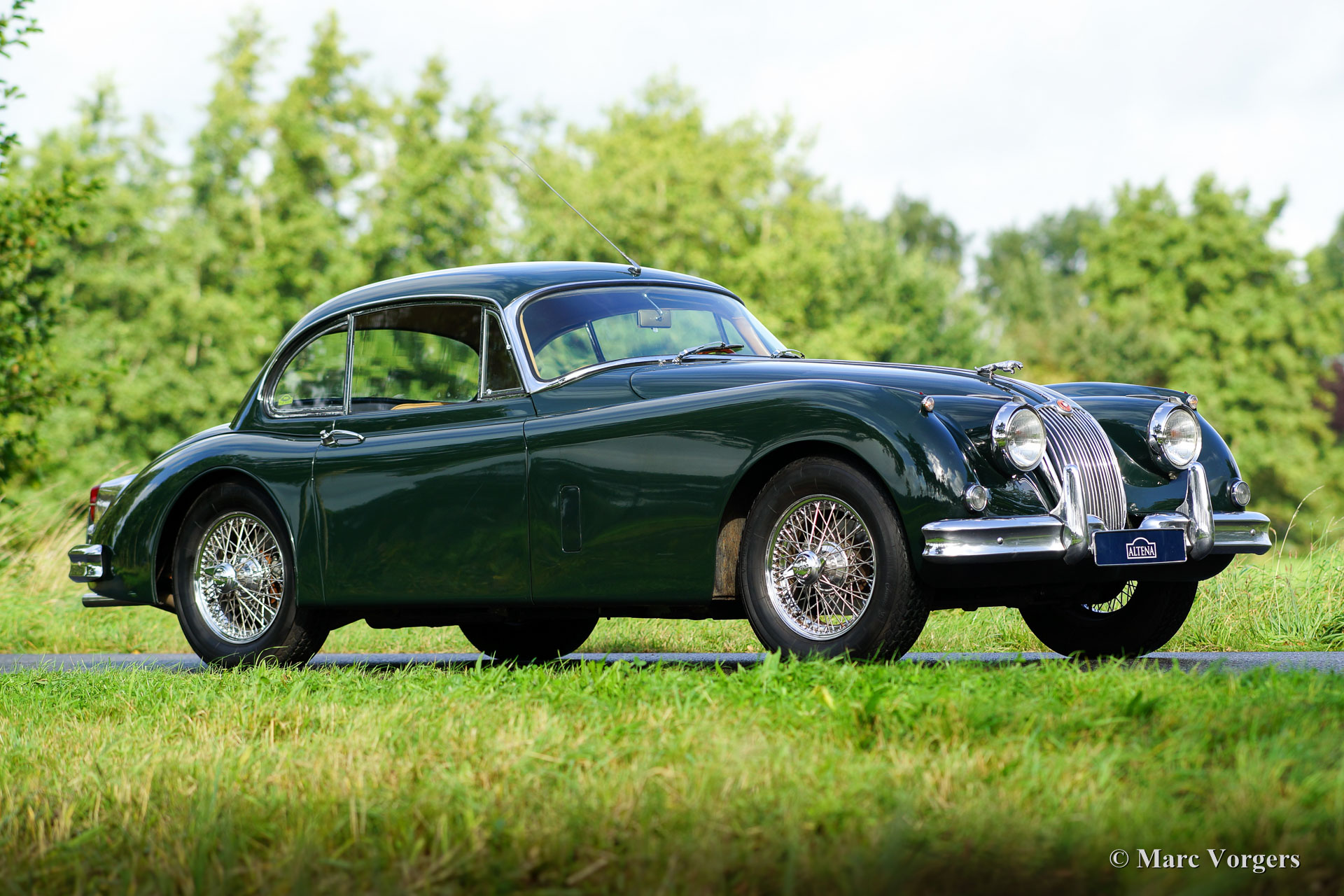 Jaguar XK 150 3.8 Litre FHC, jaar 1961. ‘Matching numbers’. Kleur British Racing Green met een beige leren interieur en beige tapijt. Deze fraaie Jaguar XK 150 Fixed Head Coupe (FHC) werd in het jaar 1992 in Nederland geïmporteerd; de auto is sindsdien in handen geweest van één eigenaar! Het betreft een originele en gewilde 3.8 liter uitvoering met handgeschakelde versnellingsbak. Deze Jaguar XK 150 verkeert in zeer goede conditie met enige lichte gebruikssporen. De automobiel werd in het verleden gerestaureerd, een fotoreportage van de restauratie is aanwezig. De auto is uitgerust met chroom spaakwielen en een vierspaaks stuurwiel met houten rand. Bijzonder is de aanwezigheid van de originele boeken zoals de handleiding en het onderhoud/ service boek. Een geweldige rijdersauto!