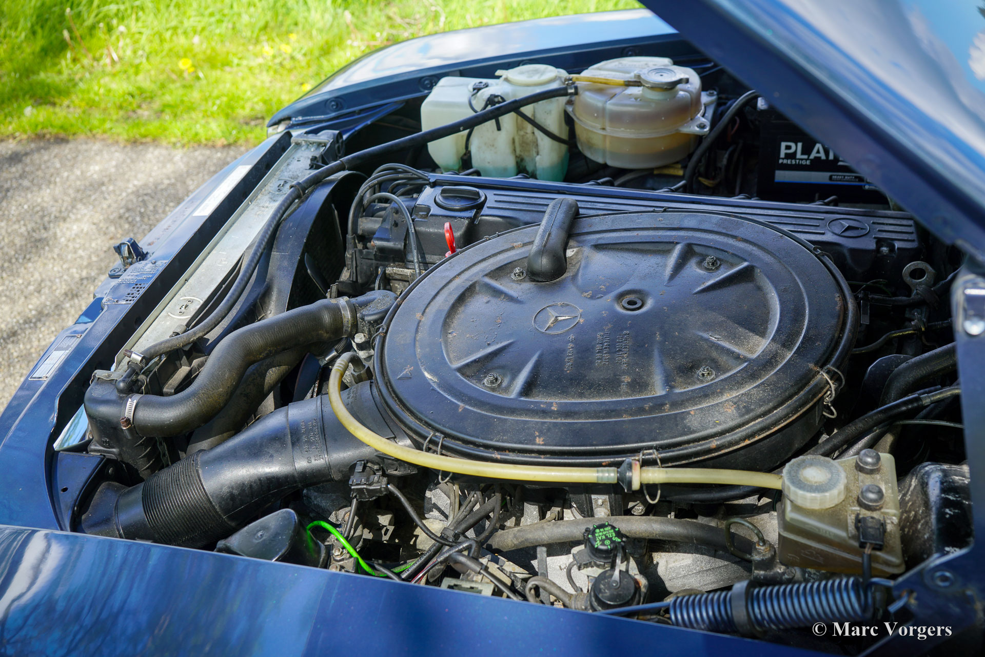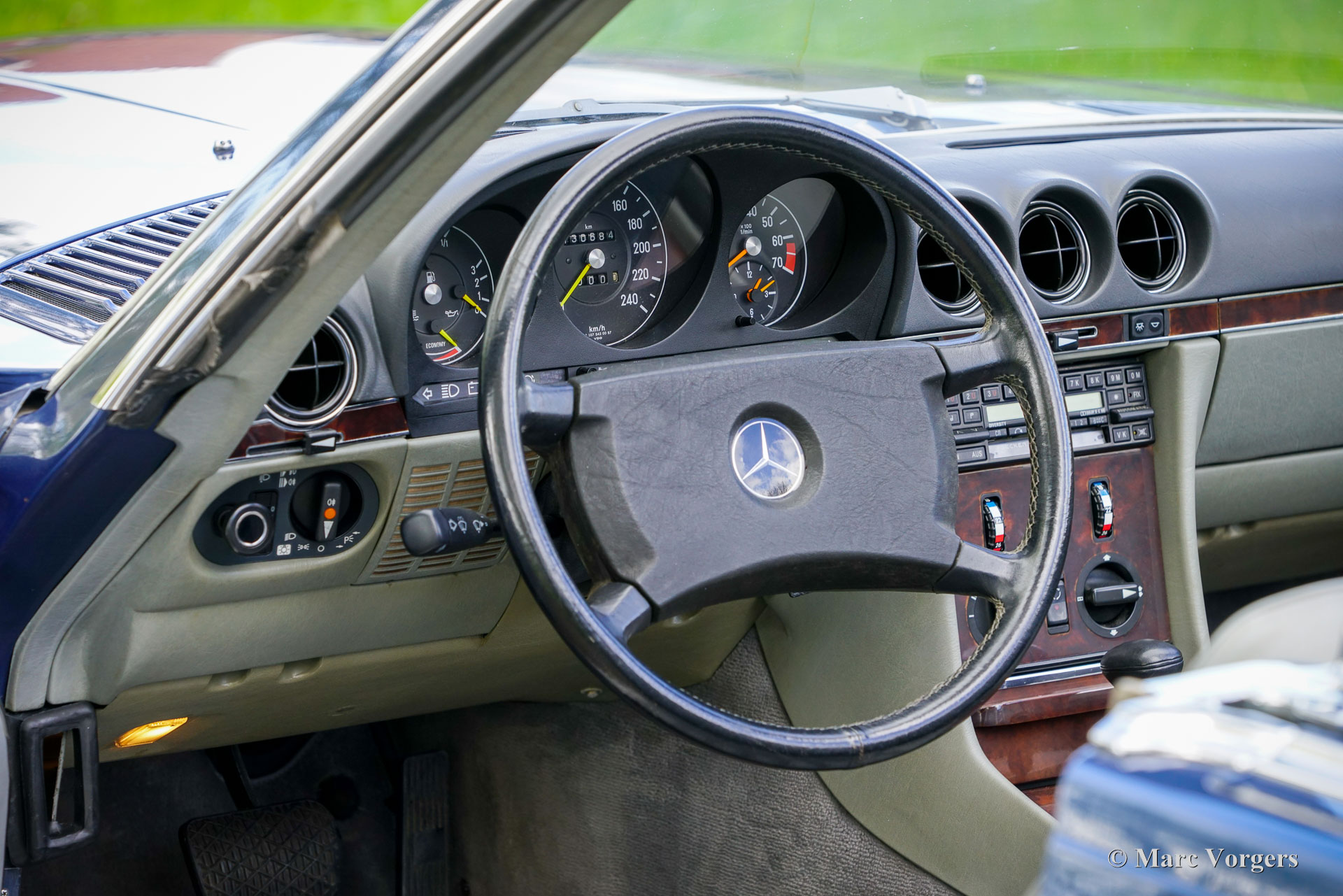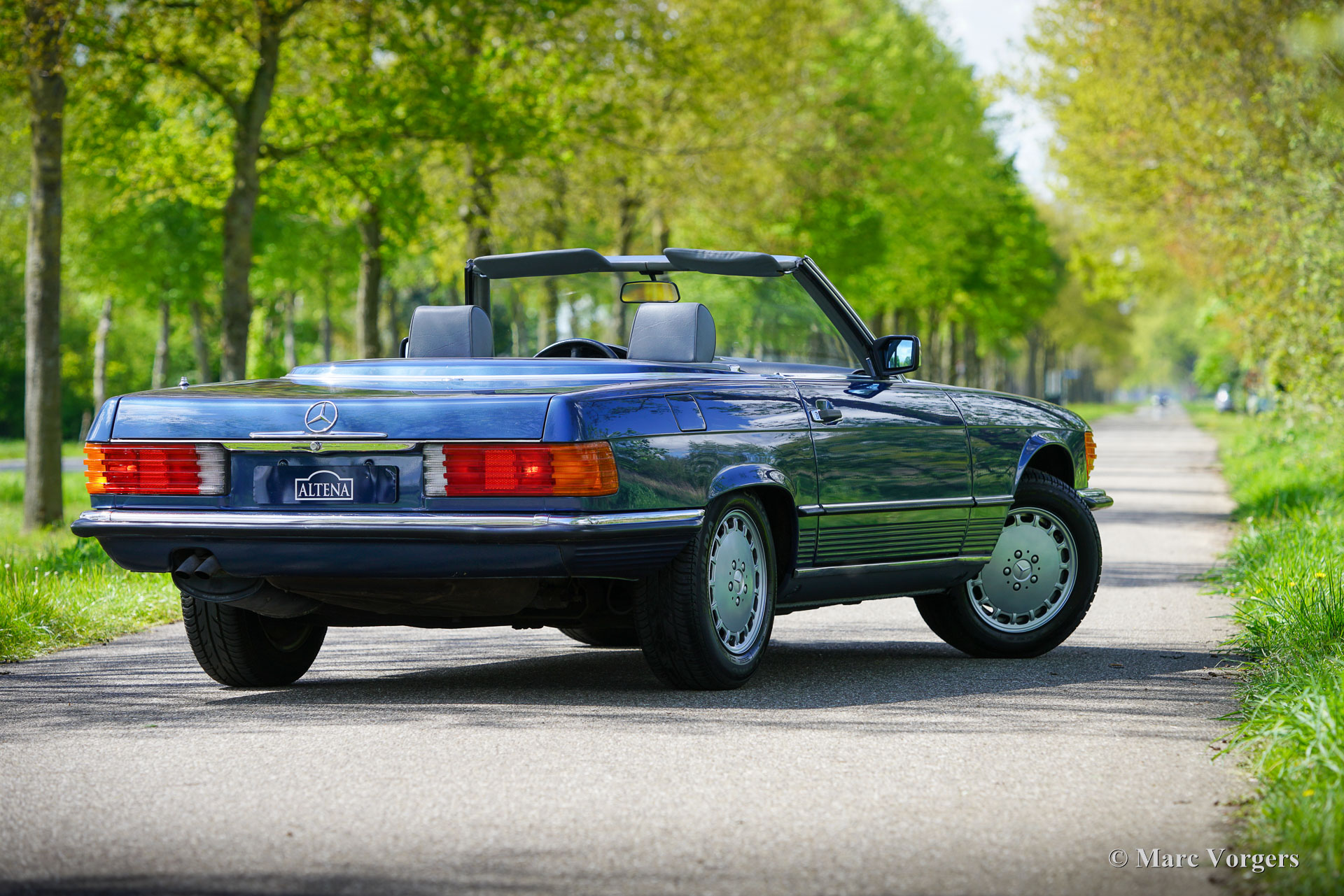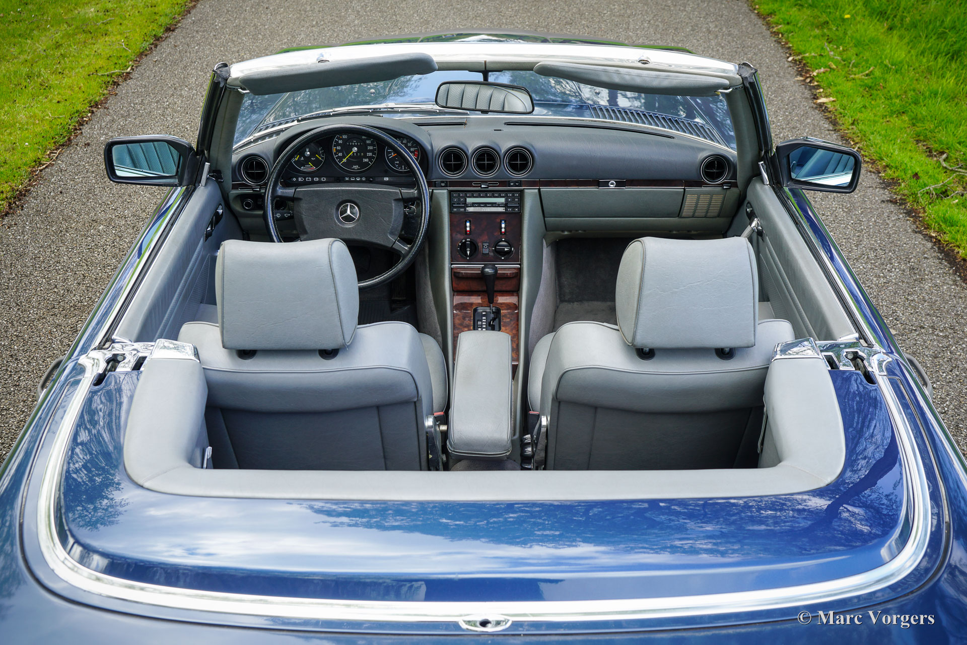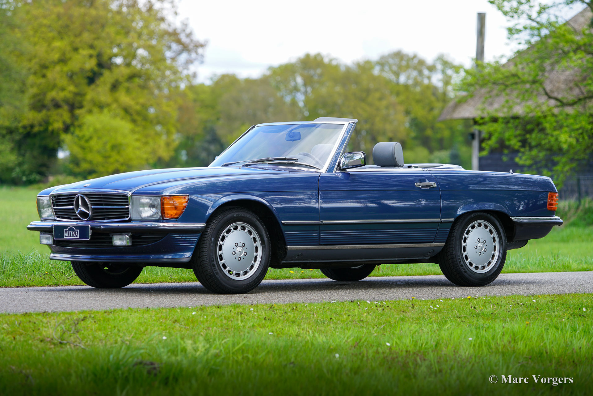 Mercedes Benz 300 SL (model R107 K6), bouwjaar 1986. Chassisnummer WDB1070411A051476, motornummer 10398212002707, versnellingsbaknummer 72232202800040. Kleur blauw metallic gecombineerd met een grijs kunstleren ‘tex’ interieur, grijs tapijt en een donkerblauwe kap. De auto wordt compleet geleverd met de originele hardtop in carrosseriekleur. De auto is nog geheel naar fabrieksspecificaties met fabriek originele “matching” nummers en kleuren. De fabrieksstickers zijn nog aanwezig. Deze 300 SL is een Europees model dat nieuw werd verkocht aan de heer Volckmann in Duitsland. Een kopie van het oude identiteitsbewijs van de eerste eigenaar is aanwezig, evenals de originele set boekjes die bij de auto zijn geleverd, en de originele afleverbrief! Tijdens de onderhoudsintervallen werd het onderhoudsboekje ingevuld en afgestempeld. In het jaar 2006 werd de Mercedes-Benz geïmporteerd in Nederland waar de auto door twee opeenvolgende eigenaren werd genoten en gekoesterd. Vanaf nieuw heeft deze 300 SL 130.687 kilometer gereden. De auto verkeert in een zeer goede en super originele staat! De carrosserie is geheel gaaf, de lak is prachtig en de chroom/roestvrijstalen delen zijn schitterend! Het originele interieur verkeert in een vrijwel onberispelijke staat met slechts de geringste sporen van gebruik. De zescilinder-lijnmotor loopt soepel en krachtig, de automatische 4-versnellingsbak schakelt perfect en de auto stuurt en remt voortreffelijk. De auto is voorzien van een stuur met lederen rand, de originele Becker Mexico radio (inclusief originele gebruiksaanwijzing), de originele MB-lichtmetalen “putdeksel” velgen geschoeid met zeer goede Fulda Carat banden rondom. De auto is compleet met het ongebruikte originele reservewiel en de originele gereedschap set. Dit is een fantastische Mercedes-Benz 300 SL in schitterende fabriek originele staat!