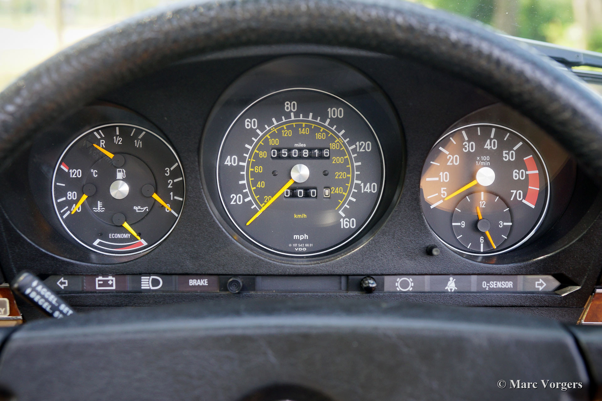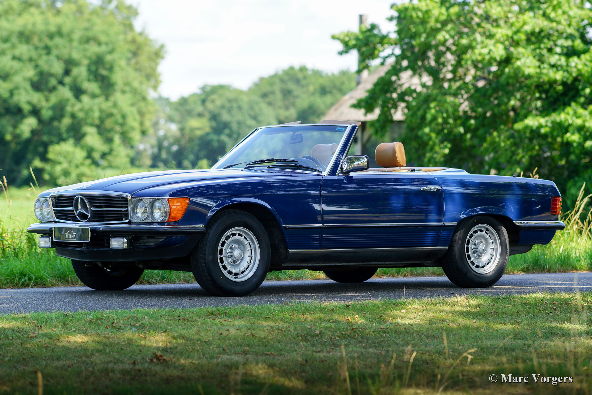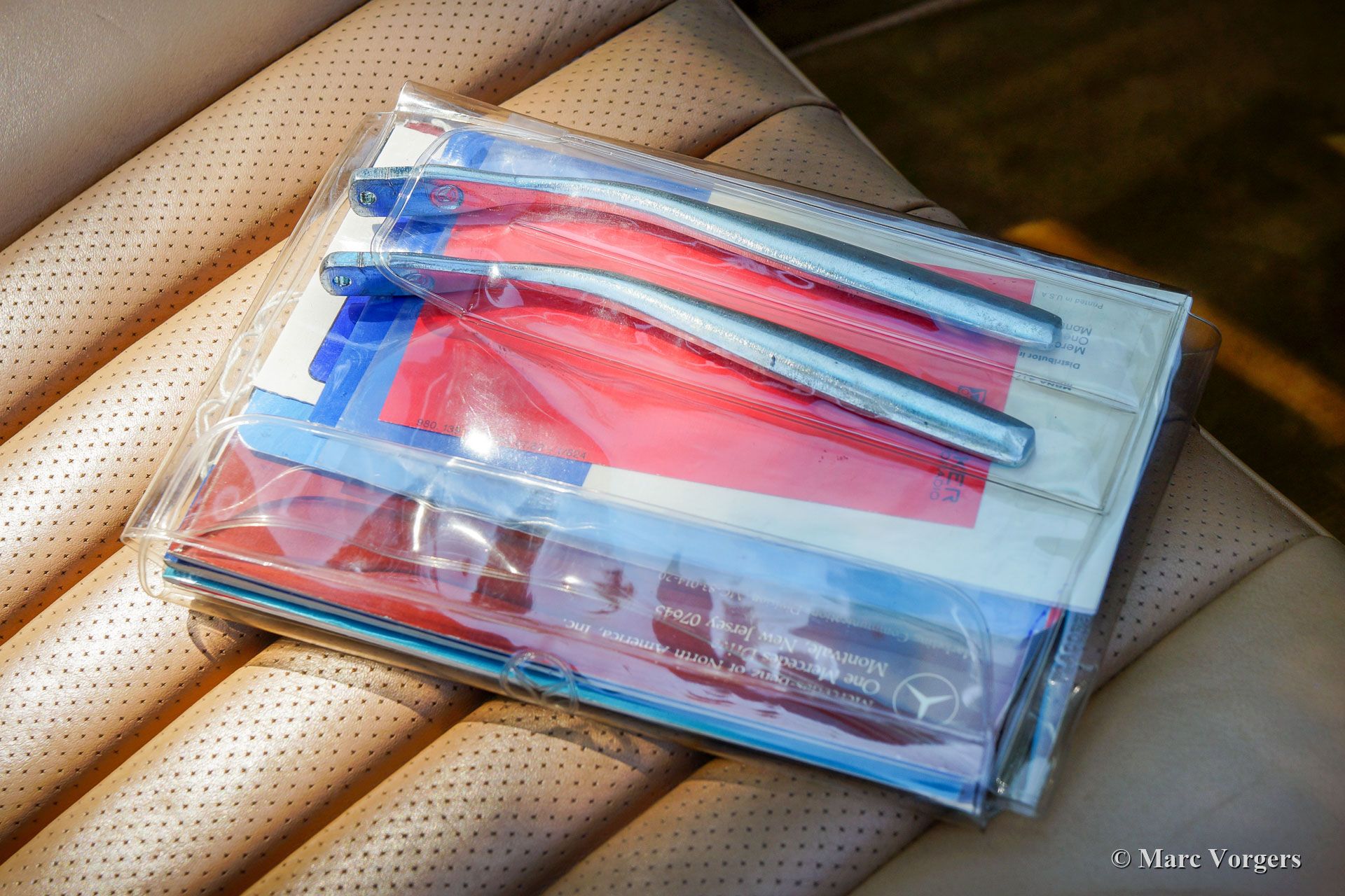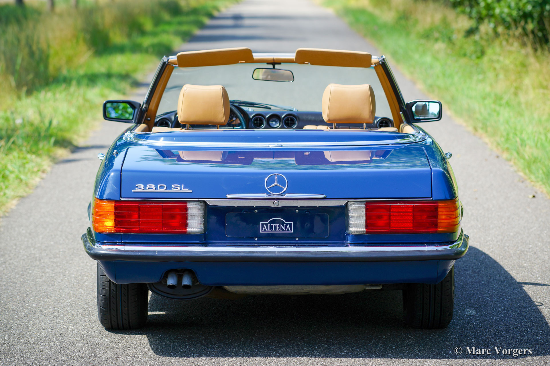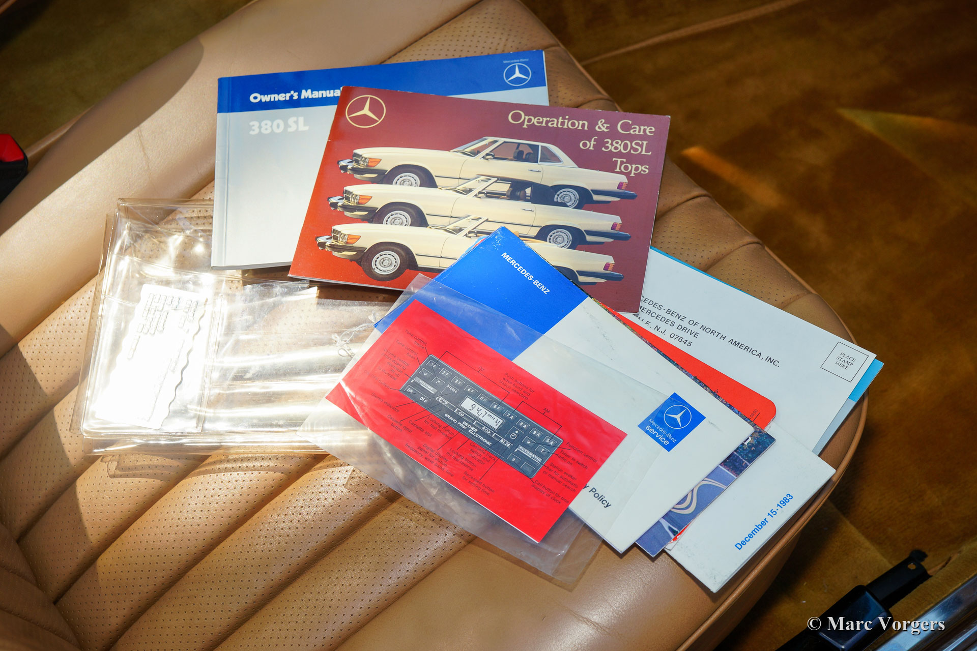 Mercedes-Benz 380 SL (R107-serie), jaar 1984. Kleur blauw (Surf Blau) gecombineerd met een beige leren interieur en beige tapijt. Donkerblauwe soft-top en een hard-top in carrosseriekleur. Deze prachtige Mercedes-Benz 380 SL werd in 1984 nieuw verkocht in Nebraska (VS). Vanaf nieuw heeft de auto slechts 50.816 mijl gereden! Een Carfax document is aanwezig dat deze lage mijlenstand bevestigt. Deze Mercedes-Benz bevindt zich in een prachtige en perfecte concoursstaat, als nieuw! Waar u ook kijkt, elk detail is in smetteloze originele conditie! De motorruimte is perfect en alle originele stickers zitten nog netjes op hen plaats. Ook is de originele ‘datenkarte’ nog altijd aanwezig in het ‘geheime’ vakje in de kofferbak. De 380 SL is nog altijd voorzien van de eerste soft-top die in perfecte staat verkeert en het reservewiel is nog nooit gebruikt. Deze bijzonder fraaie Mercedes-Benz 380 SL wordt compleet geleverd met alle originele boekjes, inclusief de boekjes die bij de originele Becker-radio werden geleverd. In het onderhoudsboekje zijn alle onderhoudsintervallen correct genoteerd en afgestempeld. Deze prachtige 380 SL heeft slechts twee vorige eigenaars gekend, wij hebben de auto gekocht van de tweede Amerikaanse eigenaar. Deze Mercedes 380 SL is uitgerust met vele opties, zoals stuurbekrachtiging, cruise control, airconditioning, ABS, originele lichtmetalen wielen en een fabrieks-Becker-radio. Deze 380 SL ziet er nog precies zo uit als bij het verlaten van de Mercedes-Benz-fabriek in 1984!