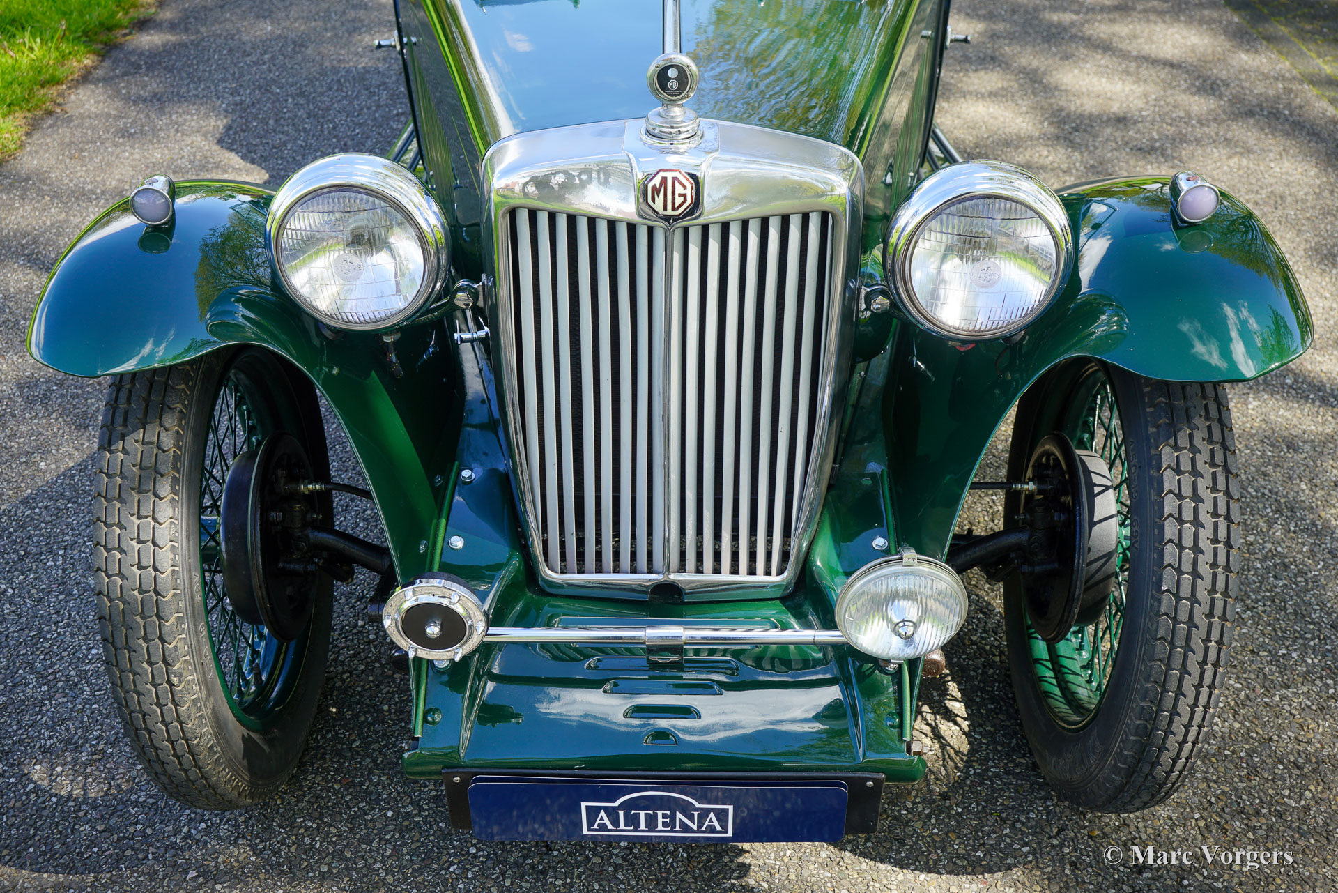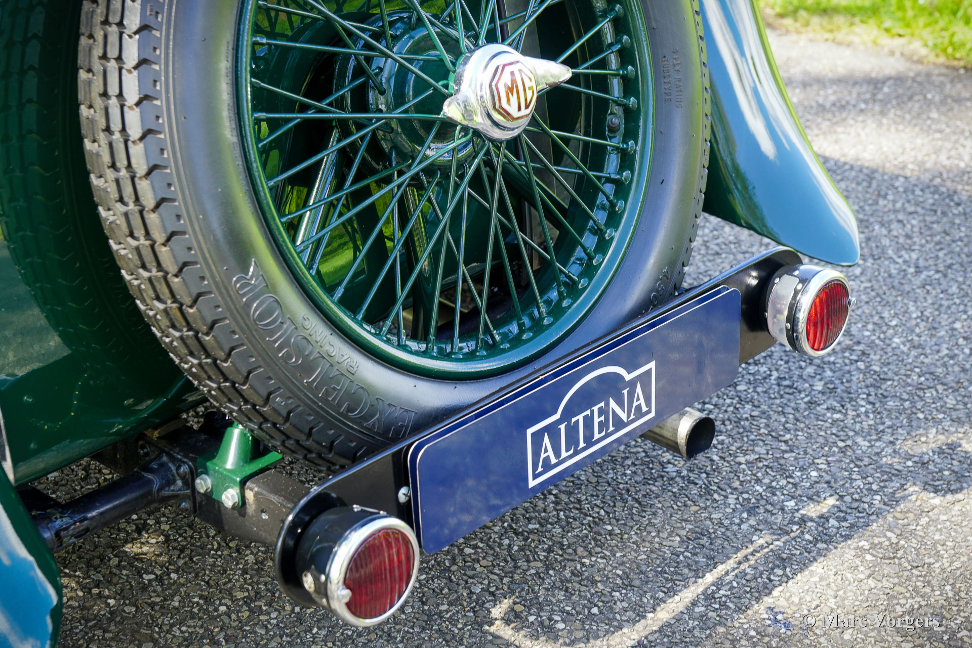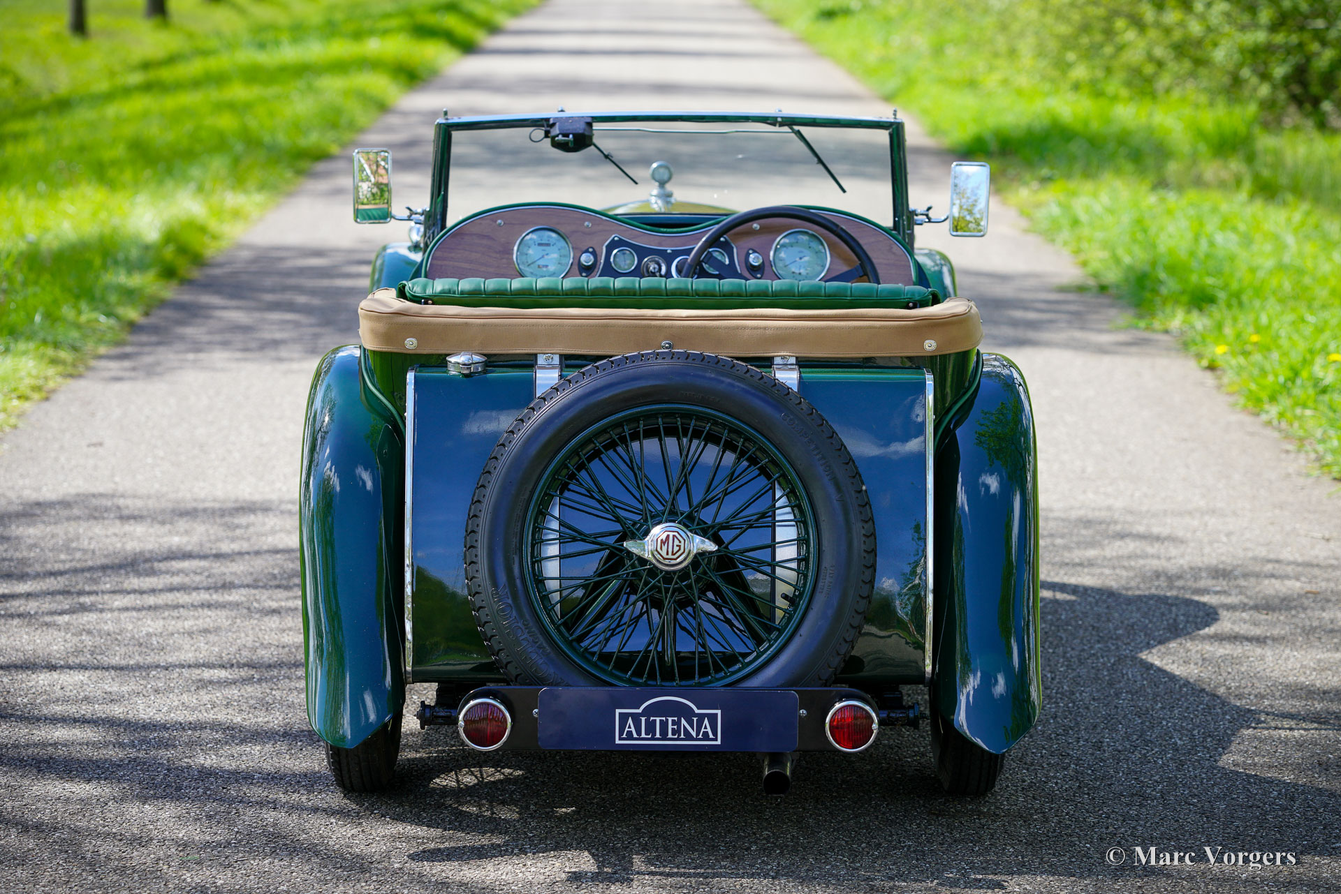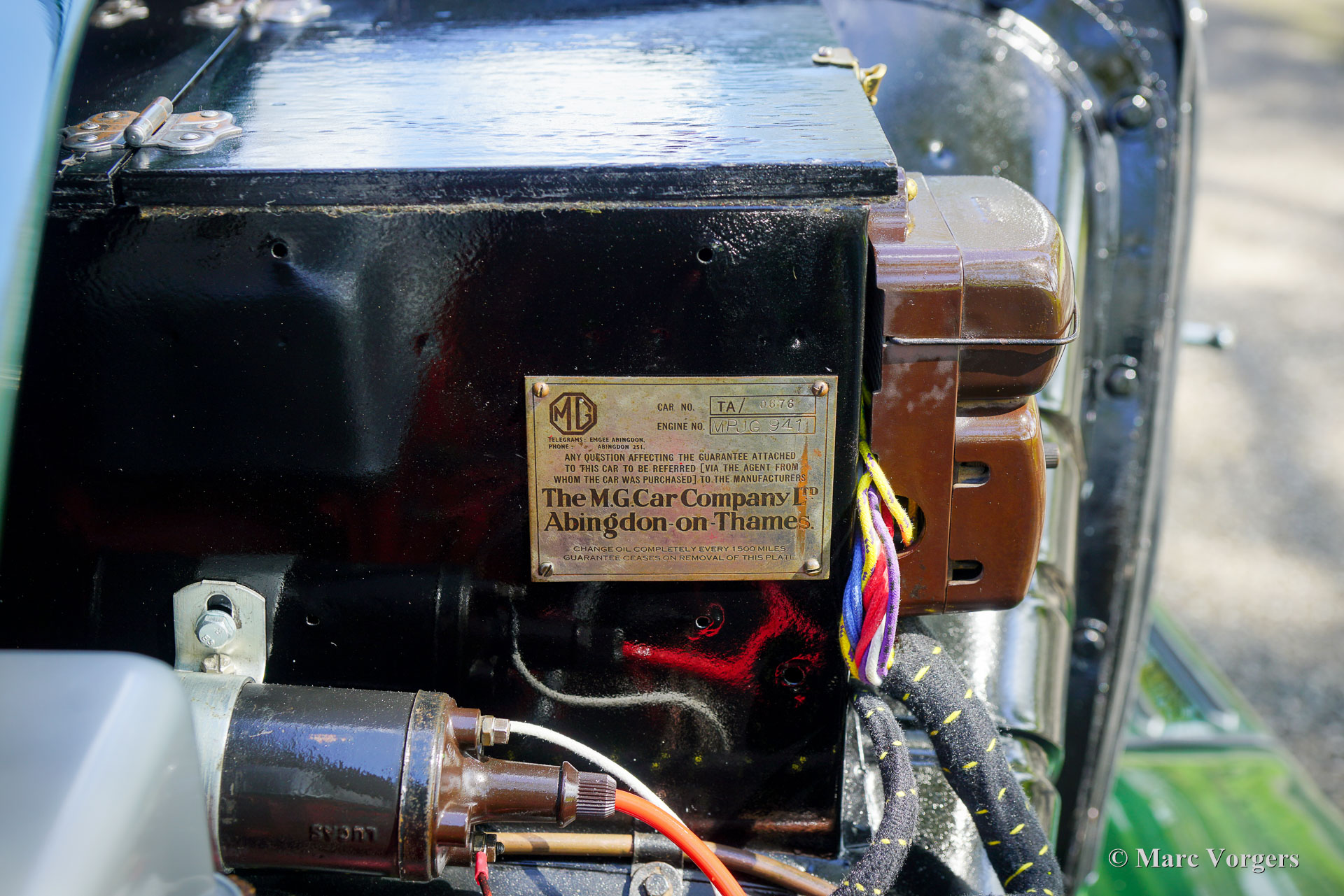 MG TA, bouwjaar 1936. Kleur British Racing Green gecombineerd met een groen lederen interieur en zwart tapijt. Lichtbruine kapafdekking. In 2020 is deze prachtige MG TA gekocht van de 94-jarige eigenaar in Texas door Altena Classic Service. De geschiedenis van deze MG TA is interessant; de auto is na de Tweede Wereldoorlog door een Amerikaanse luchtmachtpiloot naar de VS gebracht en de unieke originele Britse registratie 'CAR615' is nog steeds aanwezig, evenals de USAF 'registered vehicle' badge met nummer CDV 198. De auto is in Nederland aangekomen in een nooit gerestaureerde 'survivor' conditie. Erg bijzonder is dat de auto altijd zeer goed onderhouden was en daardoor nog uitstekend functioneerde! In 2021 werd de MG TA verkocht aan twee gepensioneerde MG-liefhebbers die door de jaren heen als tijdverdrijf meerdere MG’s bezeten, opgeknapt, gerepareerd en gerestaureerd hebben. De MG TA werd gedemonteerd, alles werd schoongemaakt, geïnspecteerd en opgeknapt. Waar nodig werden onderdelen gerepareerd en vernieuwd. De carrosserie is nu gespoten in British Racing Green met groene ‘piping’ tussen de panelen. De wielen zijn in carrosseriekleur gespoten en voorzien van Excelsior 4,50 – 19 inch banden. De motor, versnellingsbak en achteras hebben een uitvoerige onderhoudsbeurt gehad, geen revisie, en alles functioneert zoals het hoort. Er is een nieuwe kabelboom gemonteerd en de auto is met zorg afgebouwd. Deze vooroorlogse MG TA verkeert in een prachtige staat met een fantastische kleurstelling! De auto toont fantastische originele details en is een geweldige vondst voor de MG-T liefhebber!