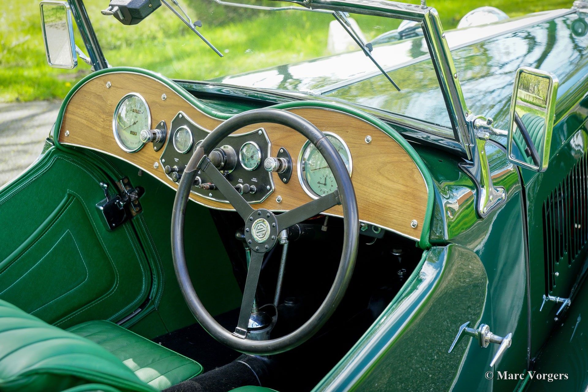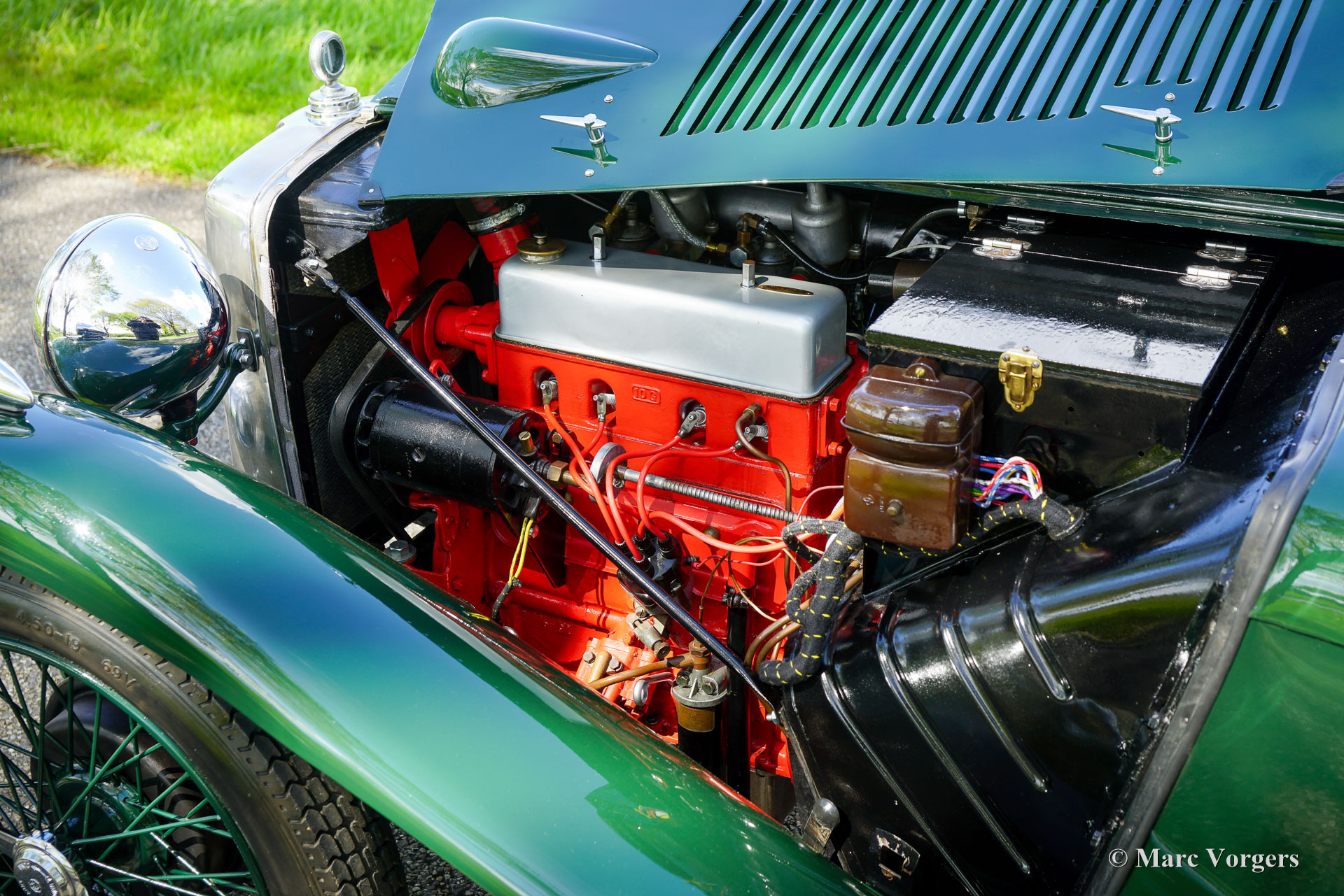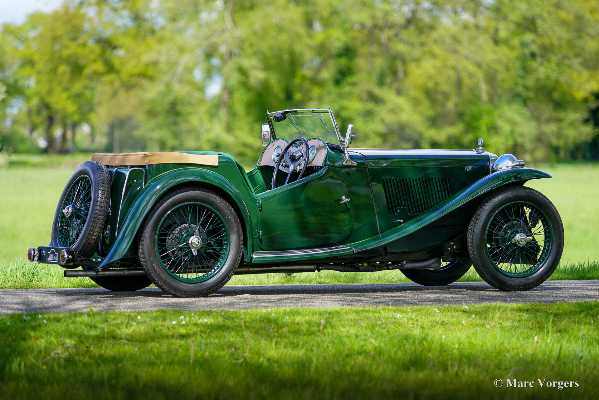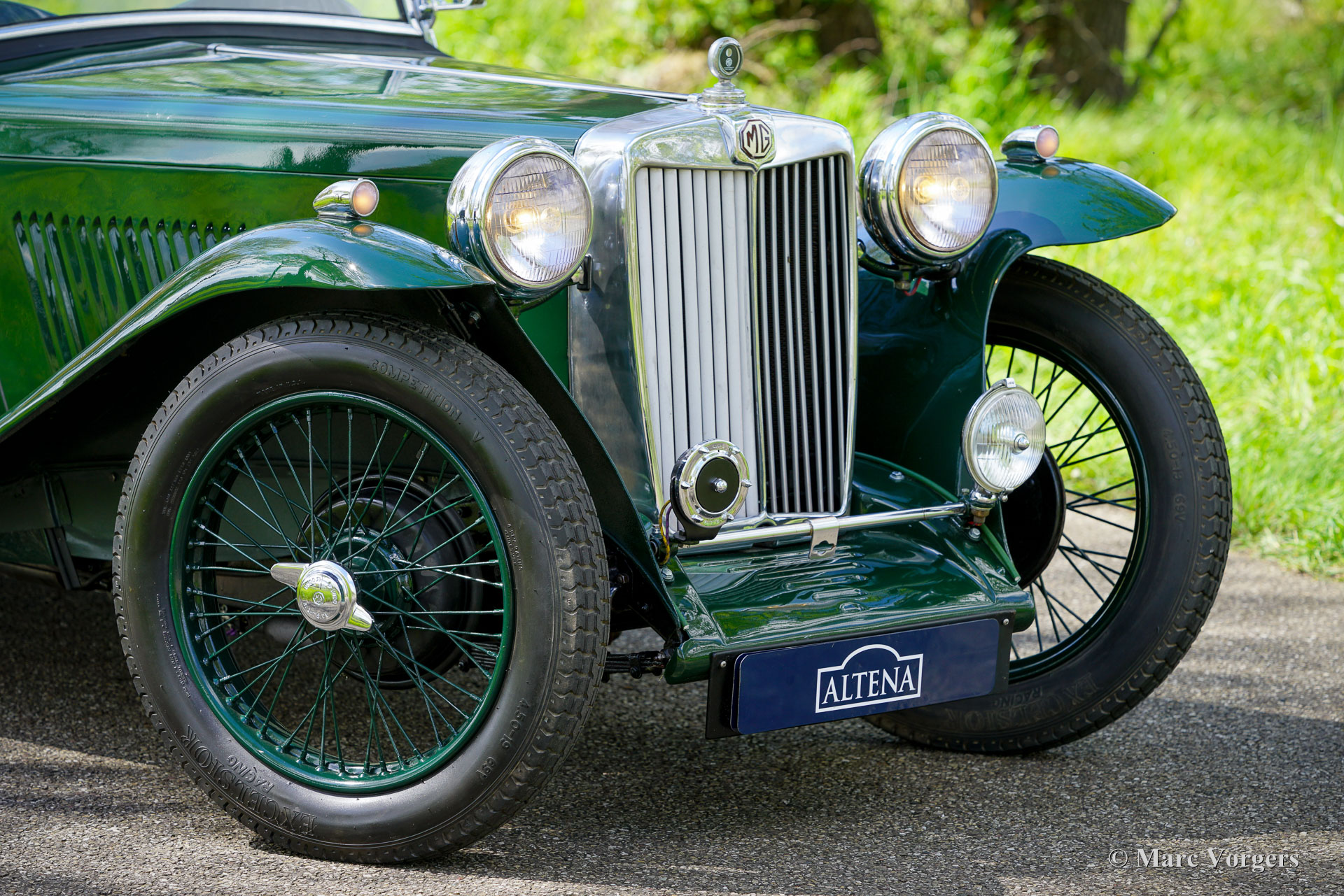 MG TA, bouwjaar 1936. Kleur British Racing Green gecombineerd met een groen lederen interieur en zwart tapijt. Lichtbruine kapafdekking. In 2020 is deze prachtige MG TA gekocht van de 94-jarige eigenaar in Texas door Altena Classic Service. De geschiedenis van deze MG TA is interessant; de auto is na de Tweede Wereldoorlog door een Amerikaanse luchtmachtpiloot naar de VS gebracht en de unieke originele Britse registratie 'CAR615' is nog steeds aanwezig, evenals de USAF 'registered vehicle' badge met nummer CDV 198. De auto is in Nederland aangekomen in een nooit gerestaureerde 'survivor' conditie. Erg bijzonder is dat de auto altijd zeer goed onderhouden was en daardoor nog uitstekend functioneerde! In 2021 werd de MG TA verkocht aan twee gepensioneerde MG-liefhebbers die door de jaren heen als tijdverdrijf meerdere MG’s bezeten, opgeknapt, gerepareerd en gerestaureerd hebben. De MG TA werd gedemonteerd, alles werd schoongemaakt, geïnspecteerd en opgeknapt. Waar nodig werden onderdelen gerepareerd en vernieuwd. De carrosserie is nu gespoten in British Racing Green met groene ‘piping’ tussen de panelen. De wielen zijn in carrosseriekleur gespoten en voorzien van Excelsior 4,50 – 19 inch banden. De motor, versnellingsbak en achteras hebben een uitvoerige onderhoudsbeurt gehad, geen revisie, en alles functioneert zoals het hoort. Er is een nieuwe kabelboom gemonteerd en de auto is met zorg afgebouwd. Deze vooroorlogse MG TA verkeert in een prachtige staat met een fantastische kleurstelling! De auto toont fantastische originele details en is een geweldige vondst voor de MG-T liefhebber!