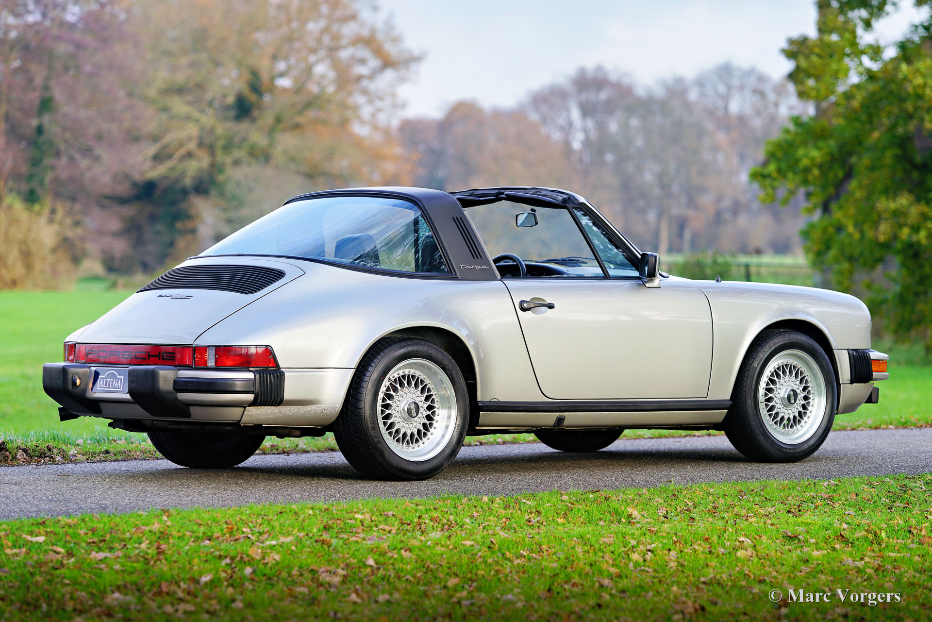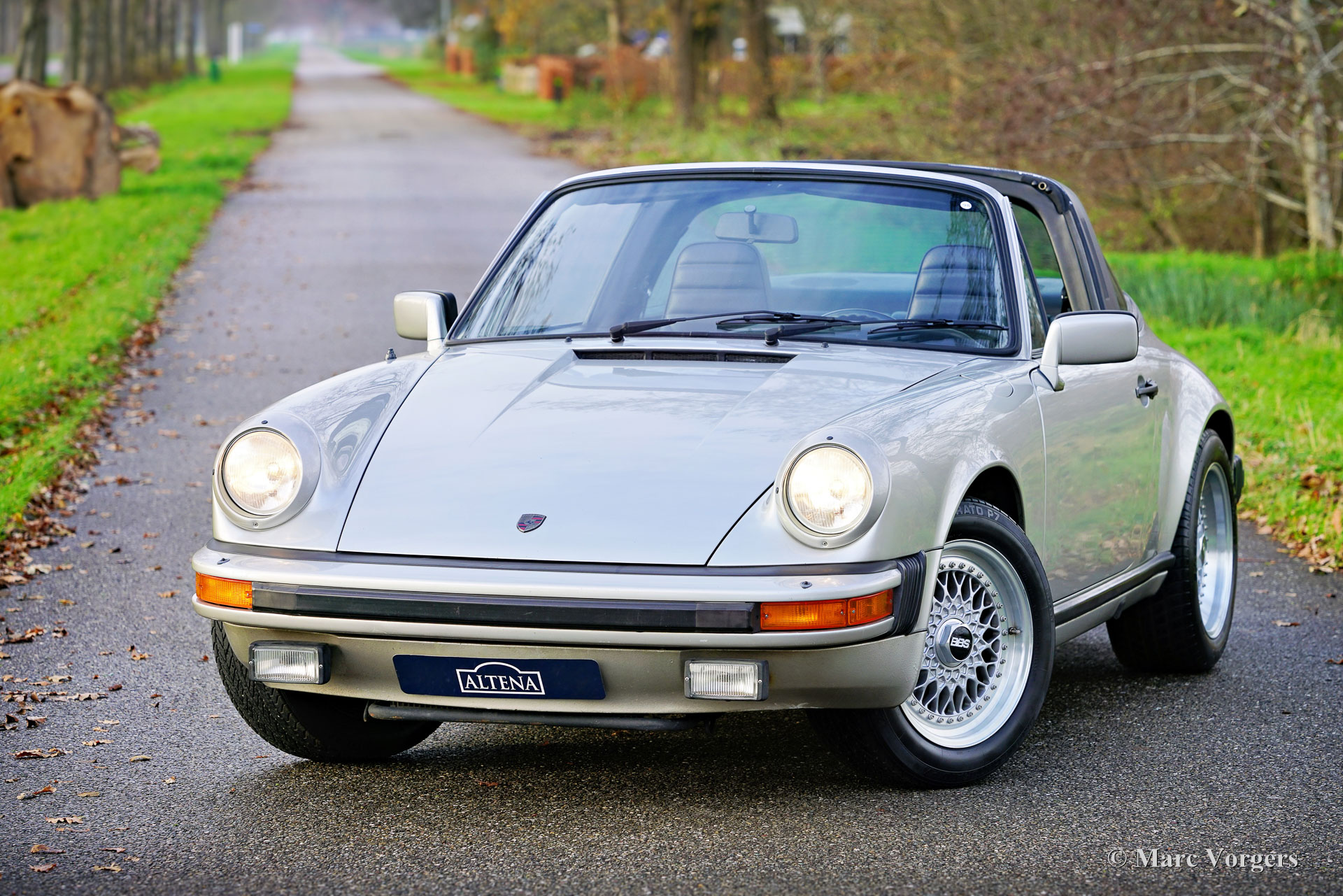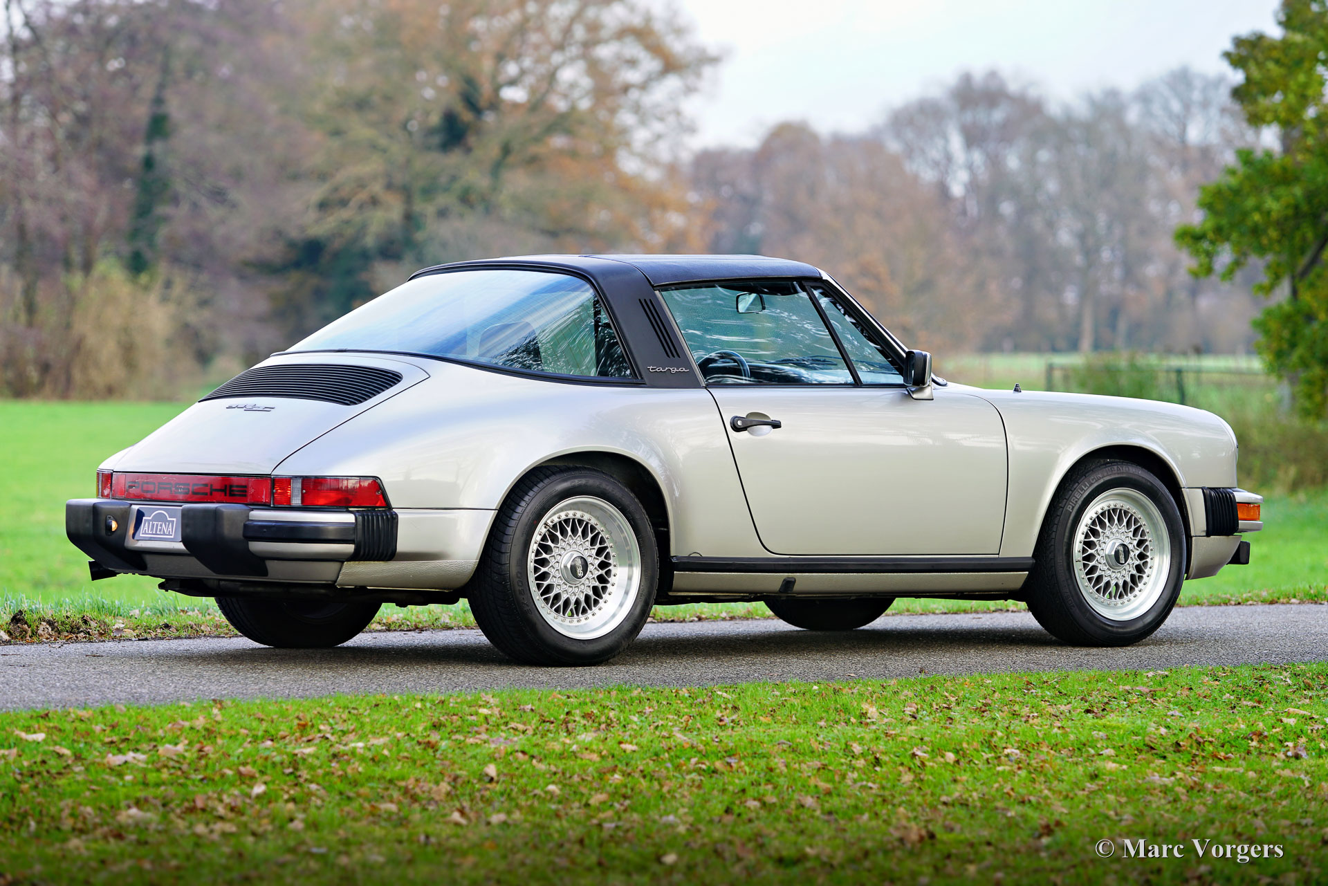 Porsche 911 3.0 SC Targa, jaar 1982. Dit is een ‘matching numbers’ en ‘matching colours’ Porsche 911, een echtheidscertificaat is aanwezig om dit te bevestigen. Kleur grijs metallic (Zinn Metallic, Porsche kleurcode L956/Z8/U3) gecombineerd met een zwartlederen interieur en zwart tapijt. Deze fantastische Porsche 911 uit de G-serie werd nieuw verkocht in de Verenigde Staten van Amerika. In de VS heeft de auto in 30 jaar slechts twee eigenaren gekend. In 2012 werd de auto verkocht naar Europa waar deze deel uitmaakte van een autoverzameling. Vanaf nieuw heeft de auto slechts 52.405 mijl gereden! Deze Porsche 911 Targa verkeert in een zeer goede en super originele staat! Het lakwerk is origineel en vertoont alleen wat kleine krasjes hier en daar en kleine lakbeschadigingen aan de voorkant. Het interieur vertoont lichte sporen van gebruik, de voorste kofferbak en het motorcompartiment zijn mooi en schoon. De Porsche 911 G-serie is een van de meest gewilde klassieke 911-modellen met het klassieke 911 ontwerp, een fantastische rijervaring en het geweldige zescilinder luchtgekoelde boxergeluid! Bovendien is dit model gebouwd om lang mee te gaan met zijn superieur ontworpen mechanica en het gebruik van hoogwaardige materialen. Het is erg moeilijk om een originele vintage Porsche 911 te vinden die niet is gerestaureerd of aangepast. De enige aanpassing op deze 911 is de dure, periodecorrecte, BBS-lichtmetalen velgen set. In overleg en tegen meerprijs kan de auto worden geleverd met periodecorrecte Fuchs-wielen. Deze fraaie verzamelaarsauto 911 is uitgerust met veel opties zoals groen getint glas, elektrisch bedienbare zijruiten, volledig lederen interieur en een Blaupunkt Stereo AM/FM-radio met cassettespeler. Dit is moeilijk te vinden en super originele Porsche 911 3.0 Targa in een prachtige en perfect rijdende staat.
