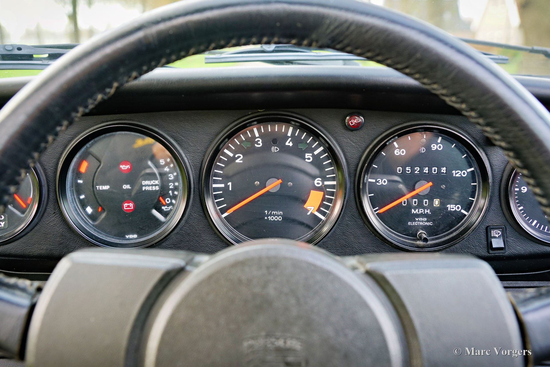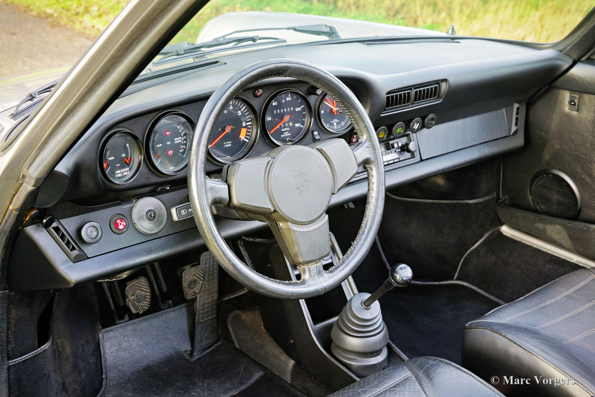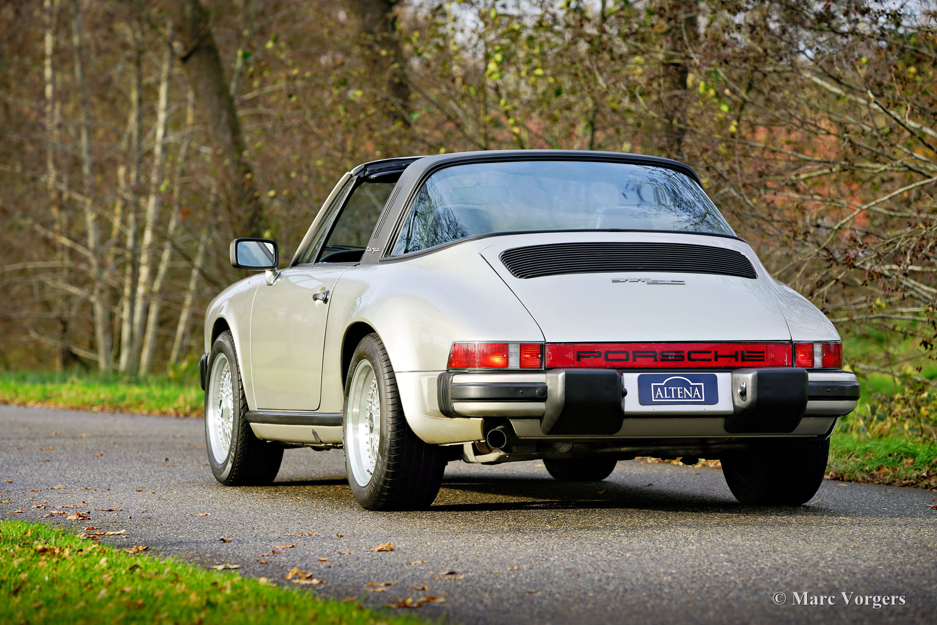 Porsche 911 3.0 SC Targa, jaar 1982. Dit is een ‘matching numbers’ en ‘matching colours’ Porsche 911, een echtheidscertificaat is aanwezig om dit te bevestigen. Kleur grijs metallic (Zinn Metallic, Porsche kleurcode L956/Z8/U3) gecombineerd met een zwartlederen interieur en zwart tapijt. Deze fantastische Porsche 911 uit de G-serie werd nieuw verkocht in de Verenigde Staten van Amerika. In de VS heeft de auto in 30 jaar slechts twee eigenaren gekend. In 2012 werd de auto verkocht naar Europa waar deze deel uitmaakte van een autoverzameling. Vanaf nieuw heeft de auto slechts 52.405 mijl gereden! Deze Porsche 911 Targa verkeert in een zeer goede en super originele staat! Het lakwerk is origineel en vertoont alleen wat kleine krasjes hier en daar en kleine lakbeschadigingen aan de voorkant. Het interieur vertoont lichte sporen van gebruik, de voorste kofferbak en het motorcompartiment zijn mooi en schoon. De Porsche 911 G-serie is een van de meest gewilde klassieke 911-modellen met het klassieke 911 ontwerp, een fantastische rijervaring en het geweldige zescilinder luchtgekoelde boxergeluid! Bovendien is dit model gebouwd om lang mee te gaan met zijn superieur ontworpen mechanica en het gebruik van hoogwaardige materialen. Het is erg moeilijk om een originele vintage Porsche 911 te vinden die niet is gerestaureerd of aangepast. De enige aanpassing op deze 911 is de dure, periodecorrecte, BBS-lichtmetalen velgen set. In overleg en tegen meerprijs kan de auto worden geleverd met periodecorrecte Fuchs-wielen. Deze fraaie verzamelaarsauto 911 is uitgerust met veel opties zoals groen getint glas, elektrisch bedienbare zijruiten, volledig lederen interieur en een Blaupunkt Stereo AM/FM-radio met cassettespeler. Dit is moeilijk te vinden en super originele Porsche 911 3.0 Targa in een prachtige en perfect rijdende staat.