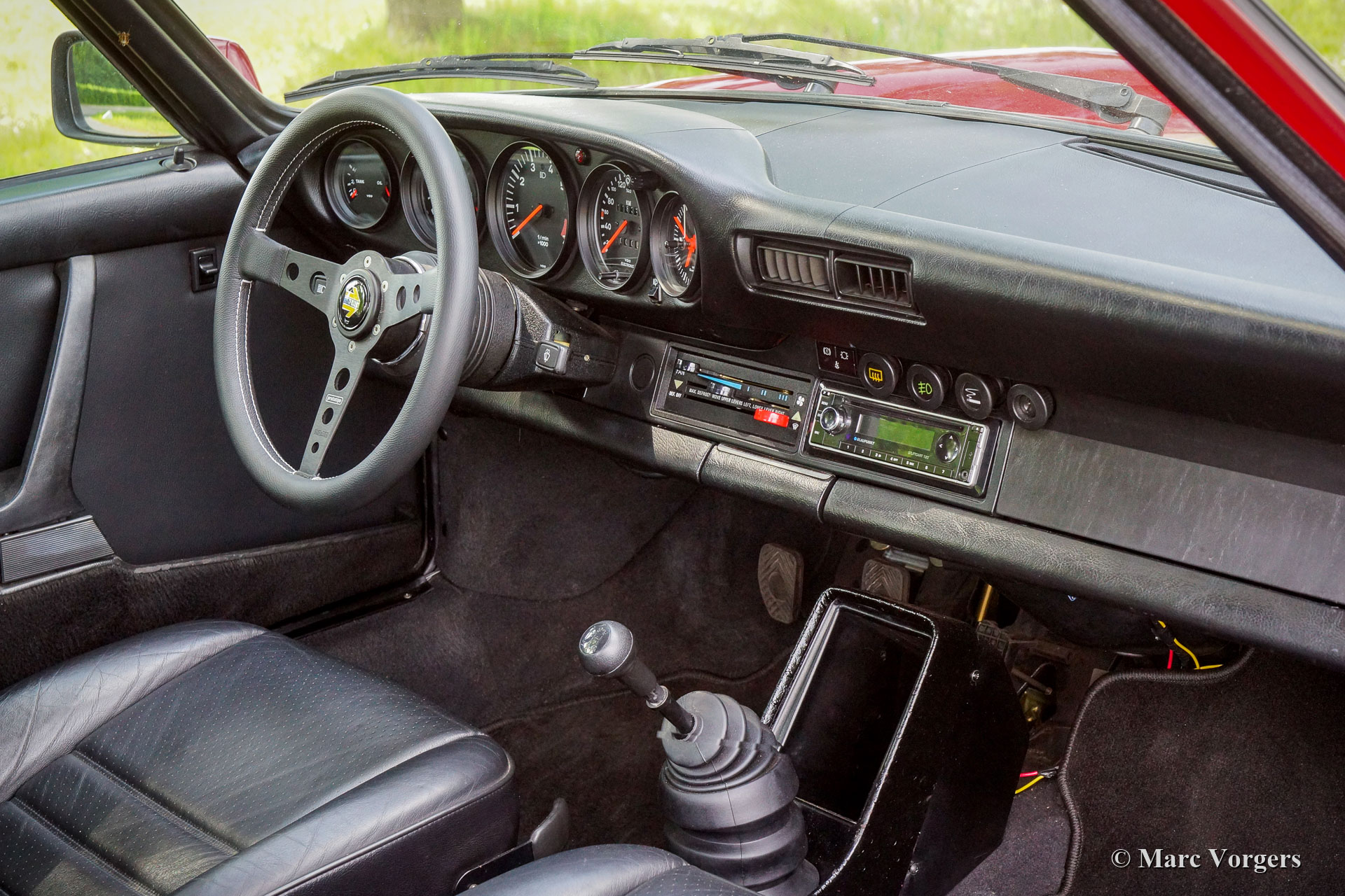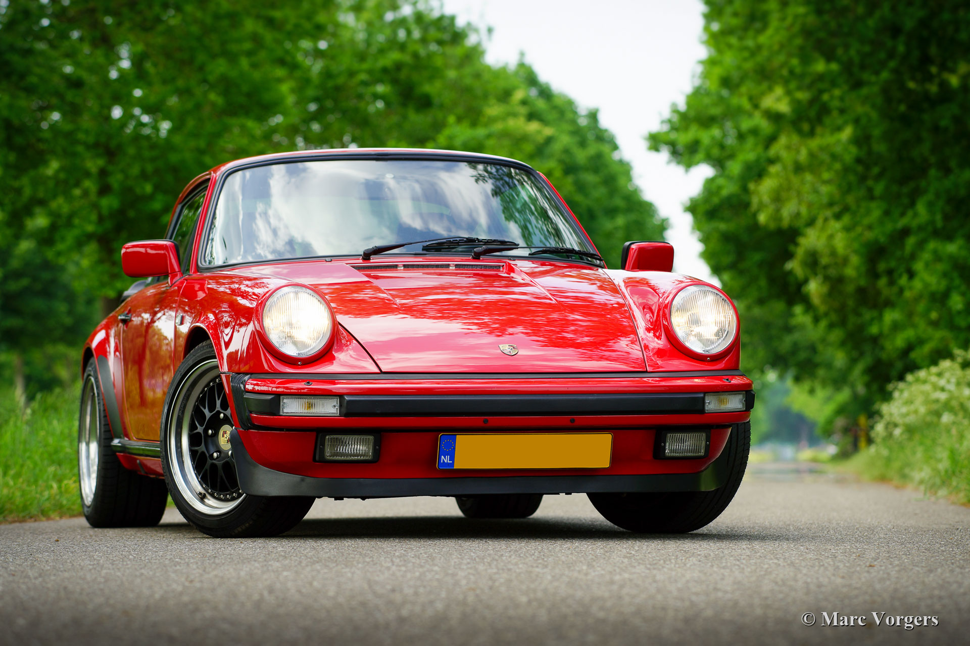 Porsche 911 Carrera 3.2, jaar 1985. Kleur rood (Indischrot) gecombineerd met een zwartlederen interieur afgezet met zwart tapijt. Deze fantastische Porsche 911 Carrera werd nieuw verkocht in Japan. Auto's voor de Japanse markt waren identiek aan de Europese auto's en waren voorzien van kilometertellers in km/u. De auto verliet de Porsche-fabriek gespoten in de kleur Pruisisch Blauw metallic. De auto is prachtig overgespoten, maar de originele kleur is nog te zien in de kofferbak en in de motorruimte. Vanaf nieuw heeft deze 911 slechts 118.000 kilometer gereden. De auto verkeert in een zeer goede tot excellente conditie! Het interieur is in een uitstekende originele staat, enkel de bovenkant van het dashboard vertoont door de inwerking van zonlicht enige barsten. Mechanisch is de auto in zeer goede conditie, alles voelt en werkt zoals het hoort en de auto rijdt perfect! De Carrera 3.2 werd gebouwd van 1984 tot 1989 en is het meest gewilde luchtgekoelde Porsche-model vanwege zijn vermogen, fantastische uiterlijk, betrouwbaarheid en lange levensduur. Het gepresenteerde coupémodel is niet voorzien van een schuifdak waardoor de auto voldoende hoofdruimte biedt aan een lange bestuurder en/of bijrijder. Deze fraaie 911 Carrera 3.2 is voorzien van een vijfversnellingsbak, een prachtige Porsche achterspoiler, een Momo sportstuur (in overleg te vervangen door een origineel stuur), zeer exclusieve en schitterende Brombacher lichtmetalen velgen geschoeid met Michelin 225/40 17- inch banden en een Blaupunkt ‘retro’ radio. Dit is een zeer begeerlijke Porsche 911 Carrera 3.2 in een prachtige en zeer goede conditie, een auto die de volgende eigenaar vele jaren rijplezier zal geven.