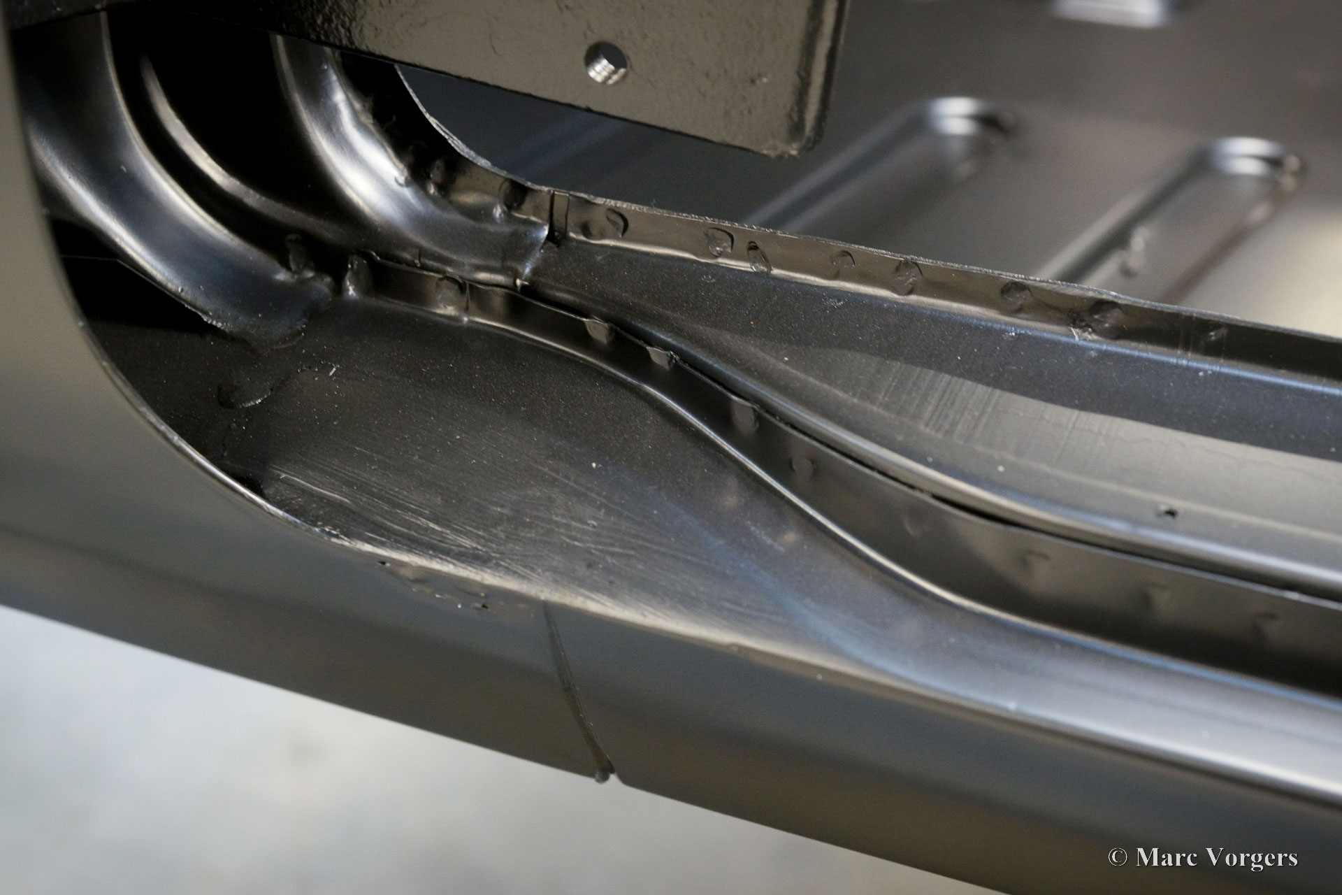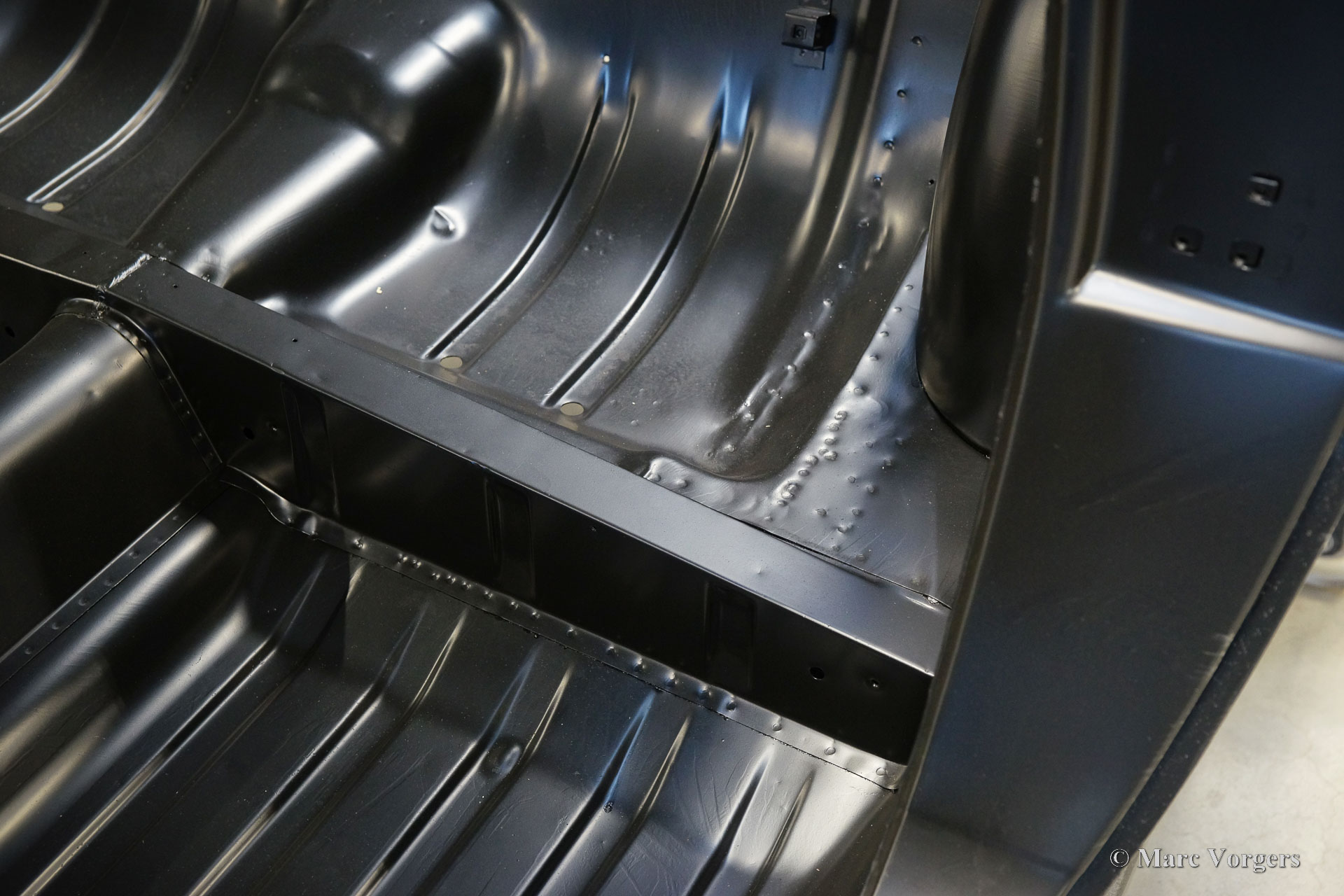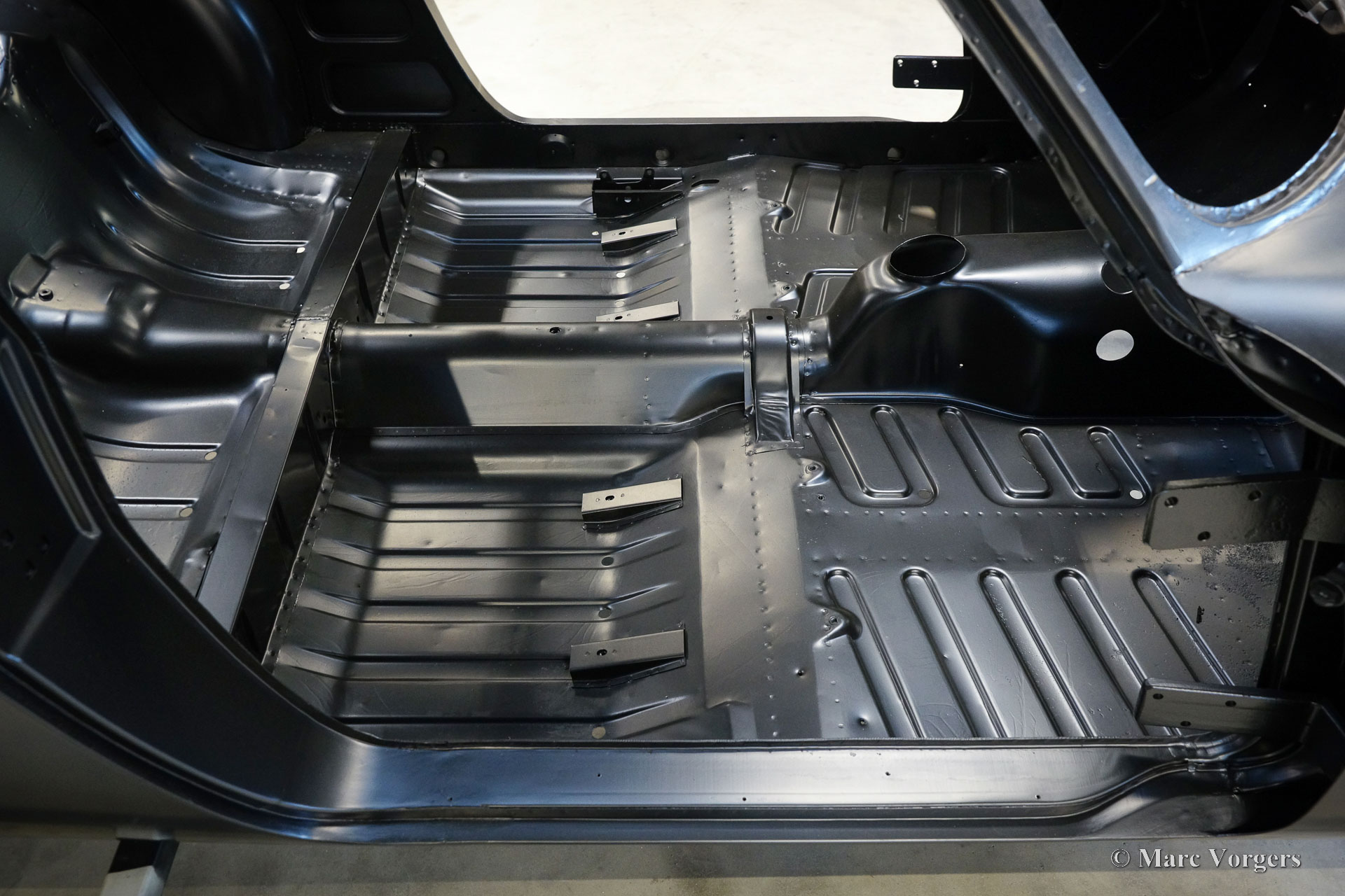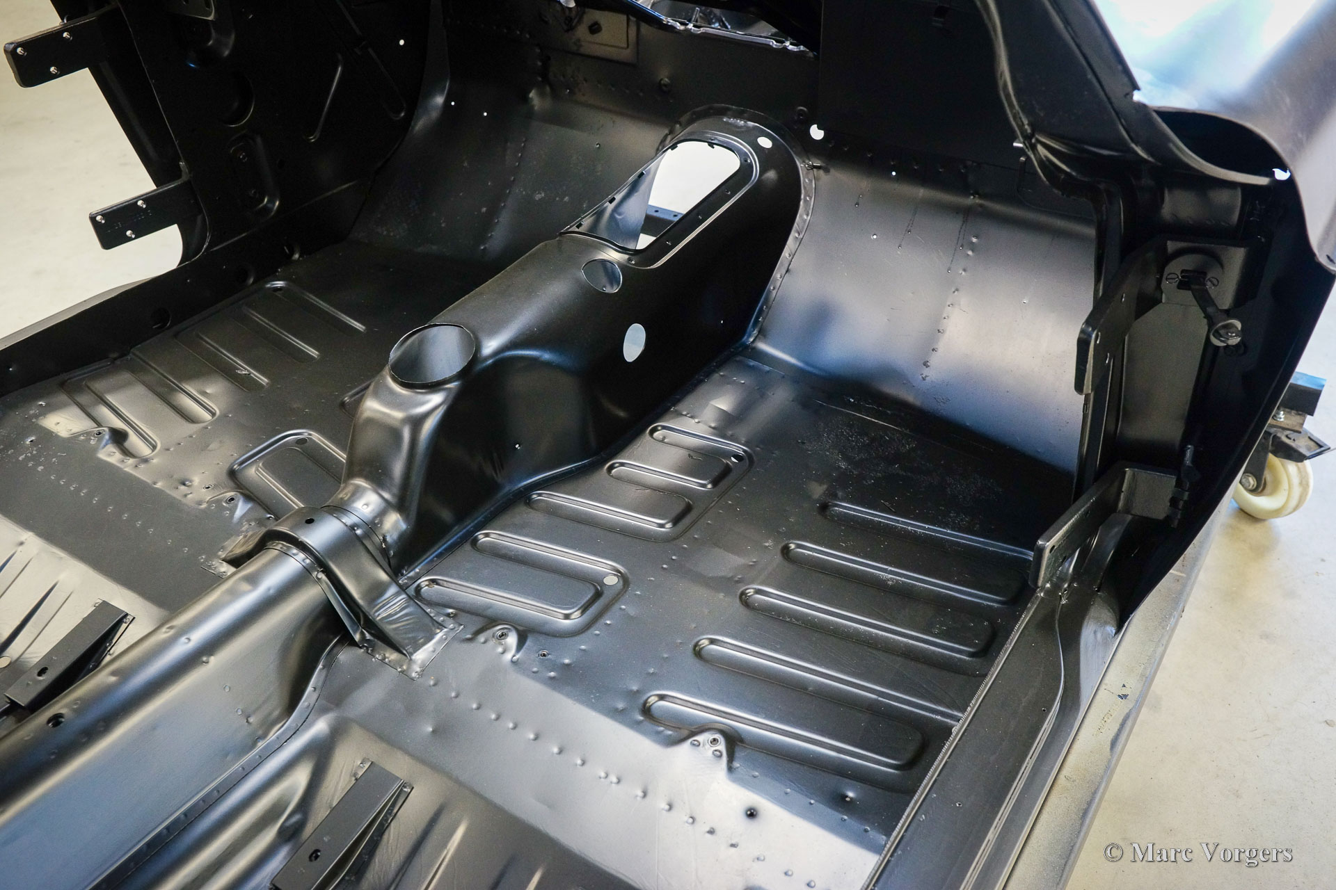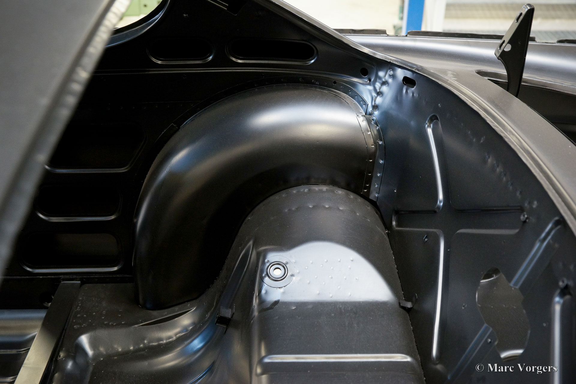 De carrosserie van deze Volvo 1800 S is door Classic Job naar beter dan nieuwstaat gerestaureerd. De carrosserie is door de klant gedemonteerd aangeleverd. Er is begonnen met het verwijderen van alle lijmresten en de oude bodembescherming. Vervolgens is de carrosserie in een verfafbijtbad volledig ontlakt. De carrosserie bleek in een mooie en roestvrije staat te verkeren. Aansluitend zijn de plaatwerk werkzaamheden uitgevoerd. Beide achterspatborden vertoonden slecht gerepareerde kleine aanrijdingsschades die gerepareerd moesten worden. Het achterpaneel tussen de achterlichten is vervangen vanwege een eerdere slechte reparatie. Nadat het plaatwerk was voltooid is de carrosserie voorzien van een KTL-coating waarbij de carrosserie volledig is ondergedompeld in een speciaal bad waardoor op elk metalen oppervlak van binnen en buiten en in elke naad een zwarte corrosie werende coating is achtergebleven. Daarna is de carrosserie verder strakgemaakt, gegrond en voorzien van een perfect nieuw laksysteem. De Volvo 1800 S wordt door de eigenaar afgebouwd.
