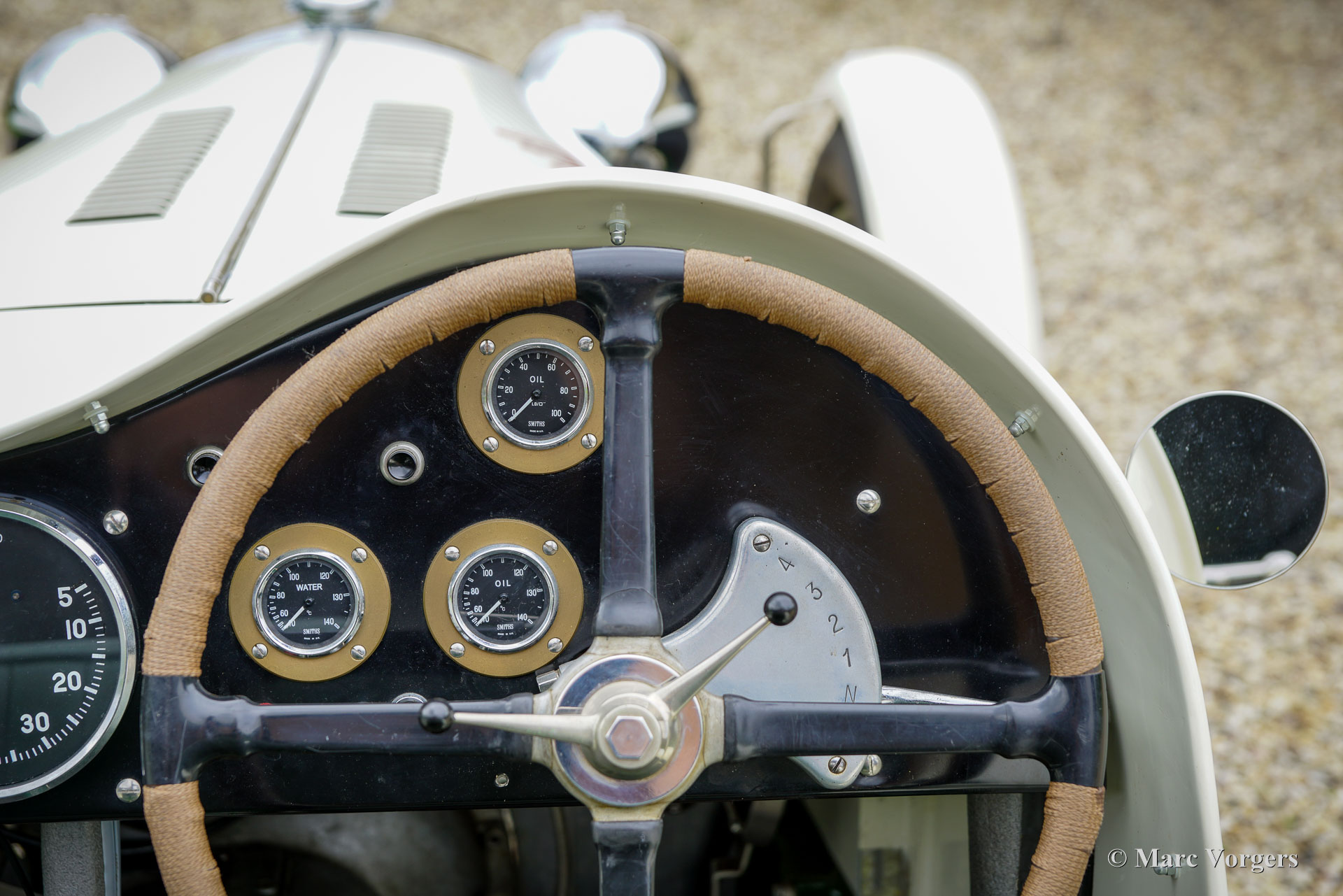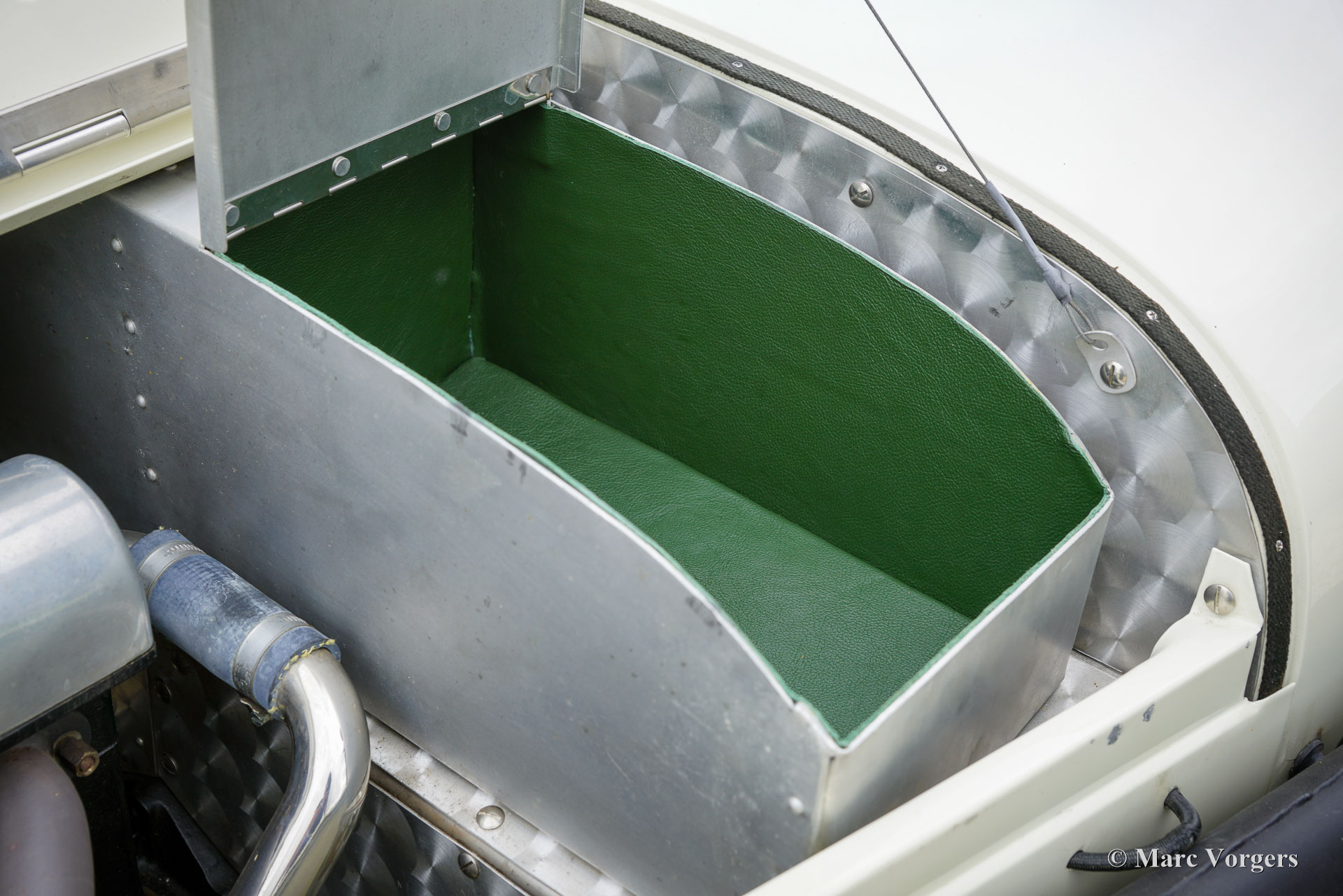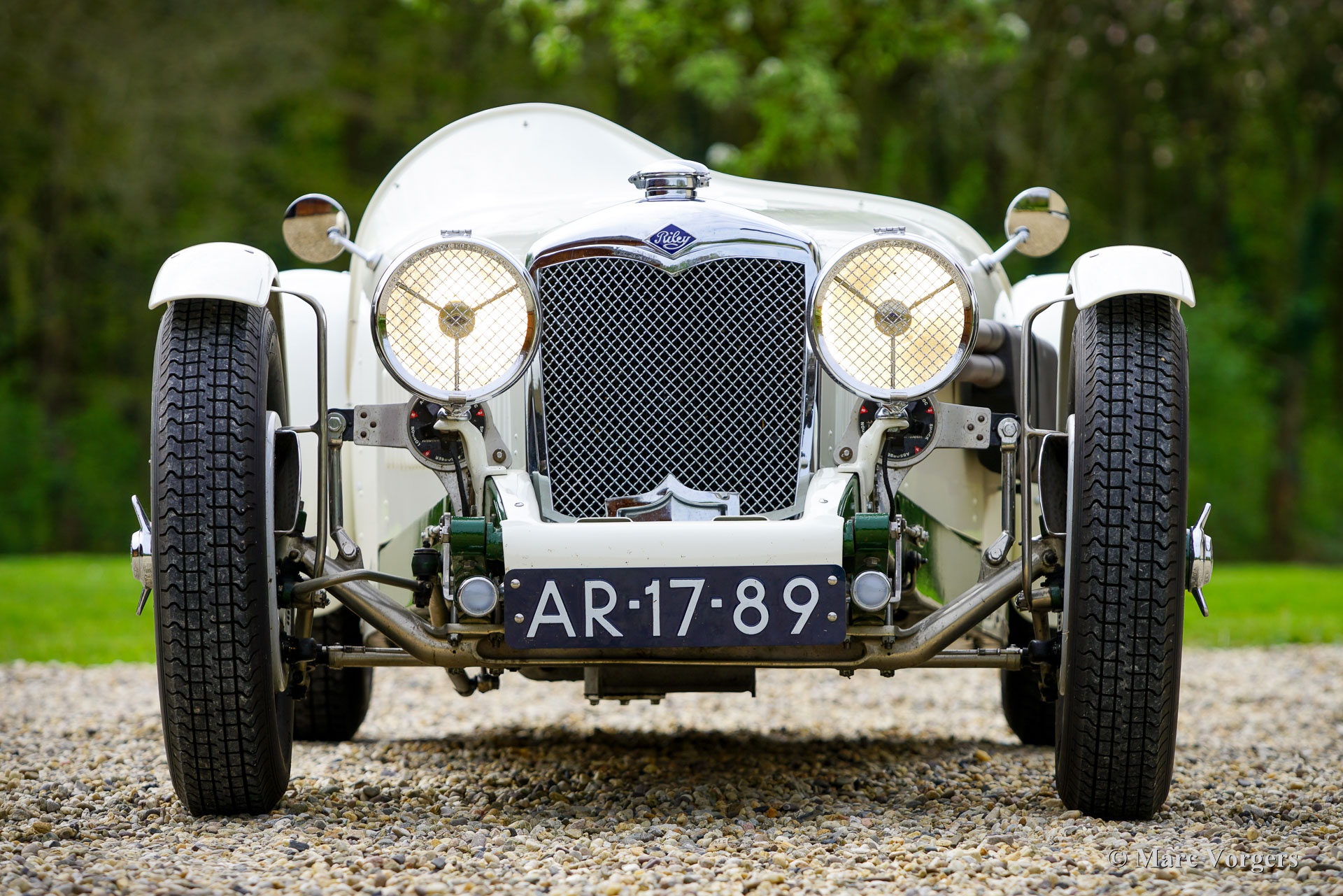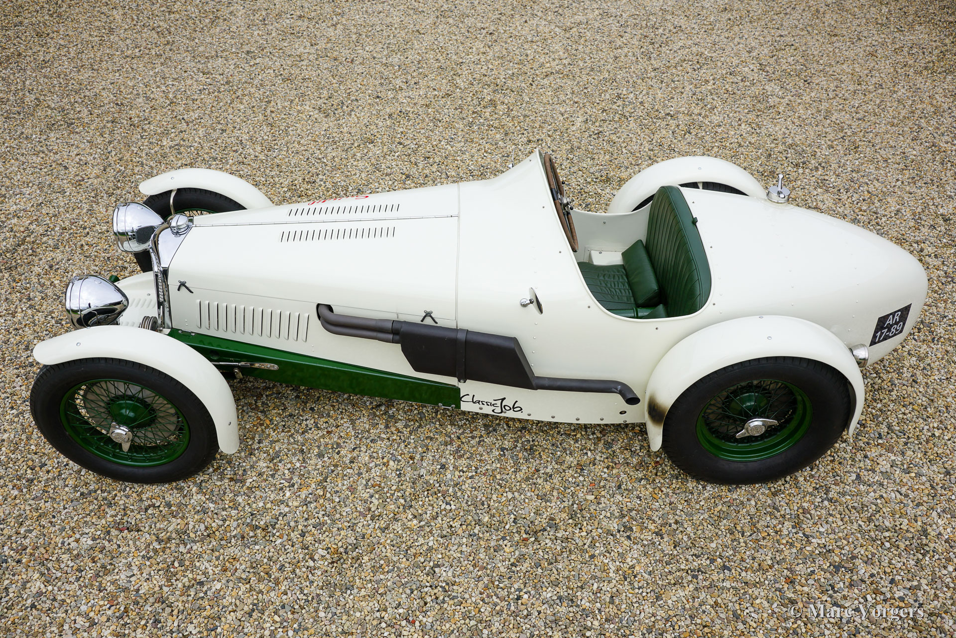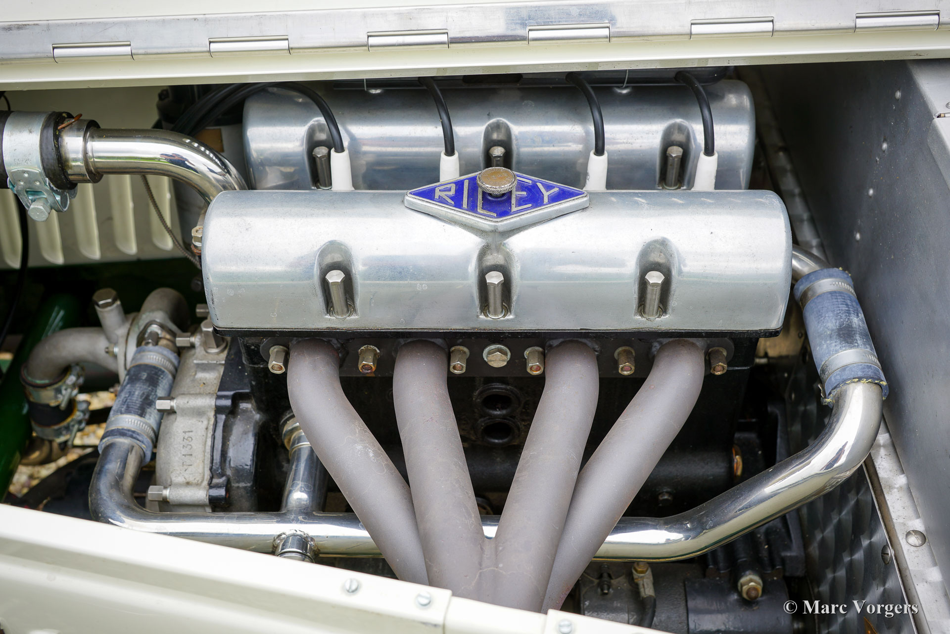 Riley TT Sprite replica, chassisjaar 1935. Eerste registratie 27 maart 1935. Carrosseriekleur wit gecombineerd met een groen chassis, groene spaakwielen en groene lederen bekleding in het interieur. Het originele Riley 12/4 (9PK) chassis, waarop deze prachtige TT Sprite replica is gebaseerd, verliet de Riley fabriek voorzien van een ‘Falcon’ sedan carrosserie. De Riley bracht een groot deel van zijn leven door met verschillende eigenaren in Devon, VK. In november 1978 werd de auto gekocht door het Nederlandse klassieke automuseum en dealer 'Automuseum Bergeyk' en via de douane van Felixstowe naar Nederland geëxporteerd. Eind jaren 1990 werden er plannen gemaakt om een Riley TT Sprite special te creëren op basis van het 12/4 chassis. In 1935/36 was de originele TT Sprite een racewagen die speciaal gebouwd was om deel te nemen aan de Ulster TT, die jaarlijks gehouden werd op het eiland Man, dat nog steeds bekendstaat om de spannende motorraces die op hetzelfde stratencircuit plaatsvinden. De originele Riley TT Sprite was gebaseerd op een chassis vergelijkbaar met dat van de 12/4 en voorzien van dezelfde 1496 cc viercilindermotor. Vandaar de keuze om chassis 22T1331 om te bouwen naar de specificaties van de TT Sprite. Er werden technische tekeningen gemaakt voor de uitvoering van de carrosserie en het chassis. Er werden detailtekeningen gemaakt voor de productie van het dashboard, de speciale ophanging, de versnellingspook, de koplamp- en spatbordbeugels, en andere speciale onderdelen die op de racewagen te vinden waren. Het technische werk en het tekenwerk werden gedaan door de Nederlander Kees de Cock (chassis en mechanische componenten) en de Engelsman John Pitney (carrosserie). De daadwerkelijke bouw werd gedaan door de heer J. Lensveld. Originele technische tekeningen van 18 december 1998 (chassisspecificaties/modificaties/lassen), 1 januari 1999 (definitieve technische tekeningen) en 2003 (detailtekeningen) zijn aanwezig in het blauwe boek van het historiebestand. In het andere boek is een volledig fotoverslag van de bouw opgenomen. Beginnend met de blauwe ‘Falcon’ sedan, met foto's van alle betrokken personen, de bouw van de houten mallen voor de aluminium carrosserie, de fabricage van de carrosserie en de voltooiing van het chassis en de motor. Met het oog op perfectie duurde de bouw vele jaren. De motor is gebouwd en ‘getuned’ volgens de racespecificaties van de TT Sprite, en de versnellingsbak is een degelijk, zeldzaam en origineel Riley ‘preselector’ exemplaar! De auto werd verkocht aan een Nederlandse autoverzamelaar en in april 2011 geregistreerd voor gebruik op de openbare weg. Vanaf dat moment werd de auto onderhouden door Classic Job. De huidige eigenaar koestert deze Riley TT Sprite replica sinds juli 2021. De auto verkeert in een uitstekende staat en rijdt indrukwekkend. Dit is een zorgvuldig gebouwde Riley TT Sprite replica die zelfs de meest veeleisende Riley-kenners zullen waarderen. Deze auto is een geweldige vondst voor Riley-liefhebbers, zowel op de openbare weg als tijdens regelmatigheid ritten en toertochten. Met aanpassingen om te voldoen aan de geldende FIA-regels, kan de auto zelfs worden ingezet voor nationale en internationale oldtimerraces (bijvoorbeeld via de Dutch Vintage Sports Car Club in Nederland).