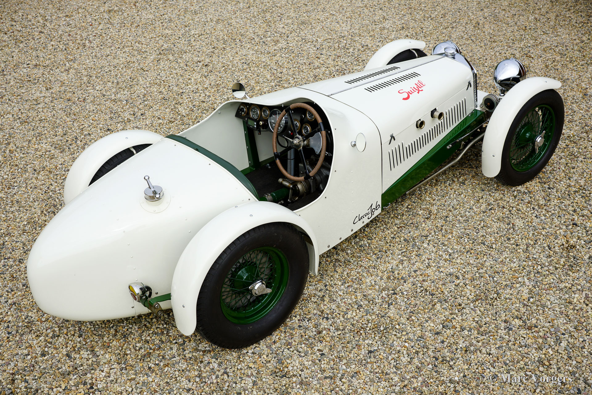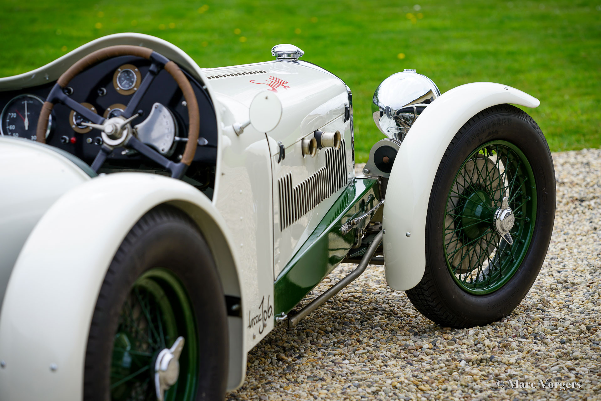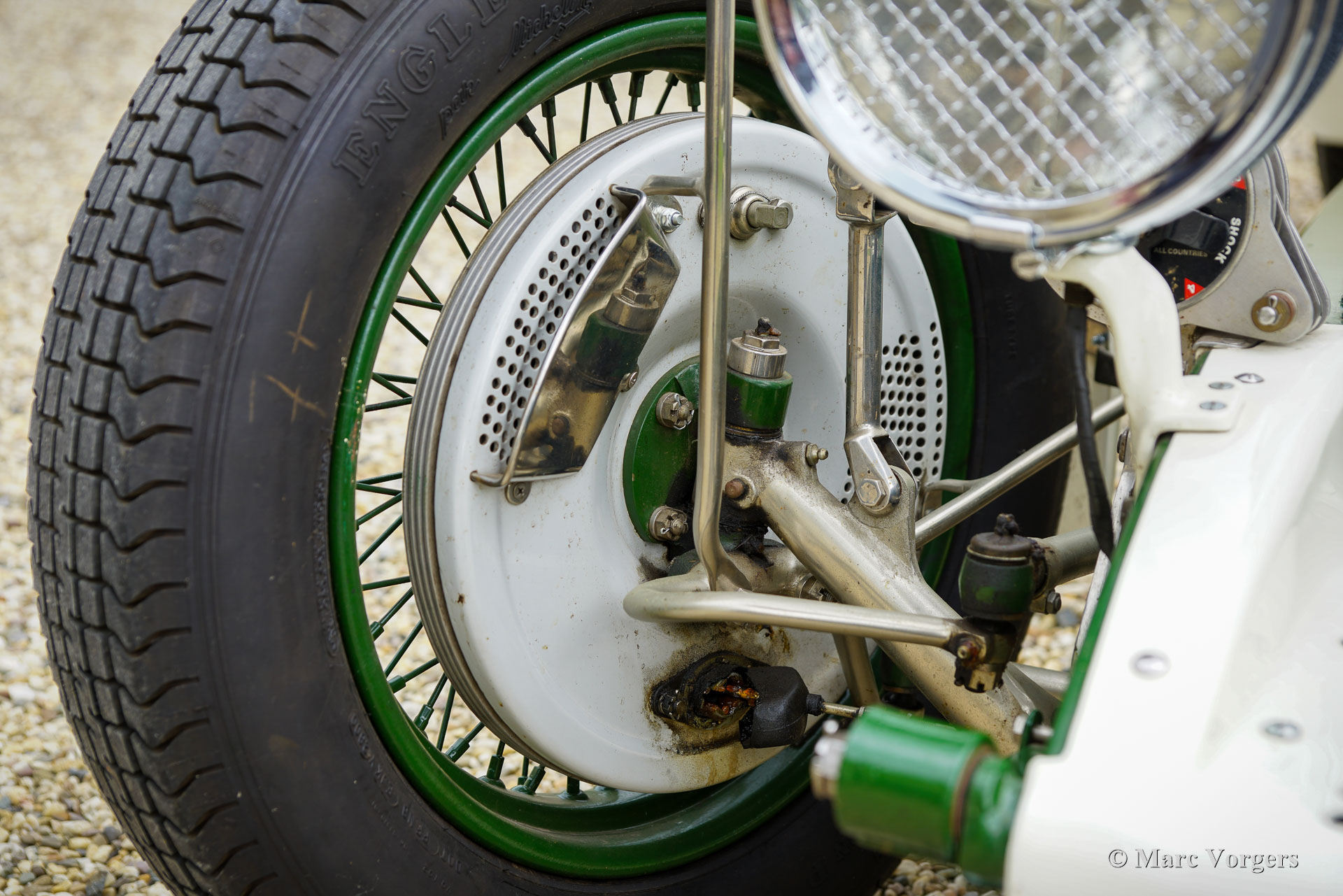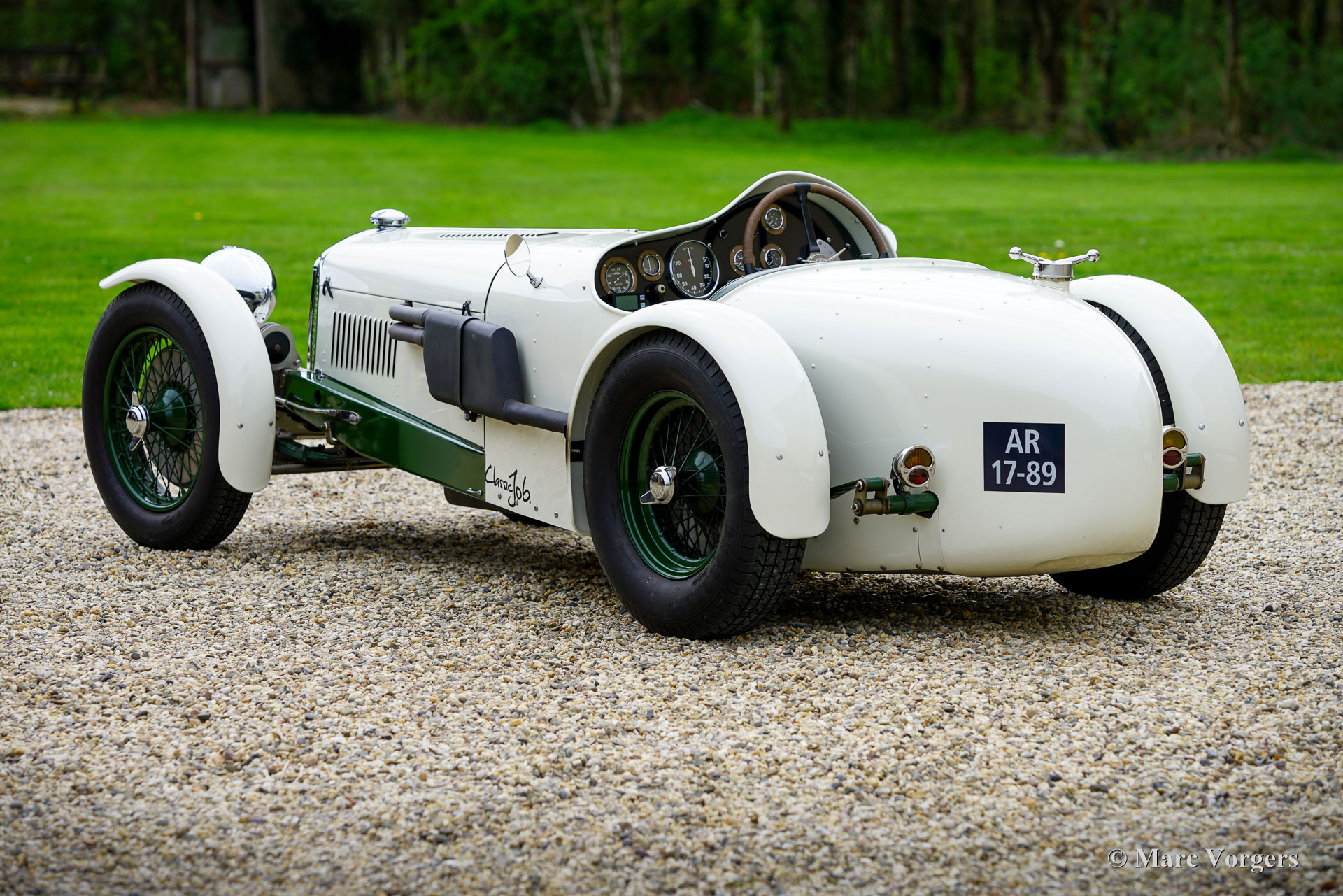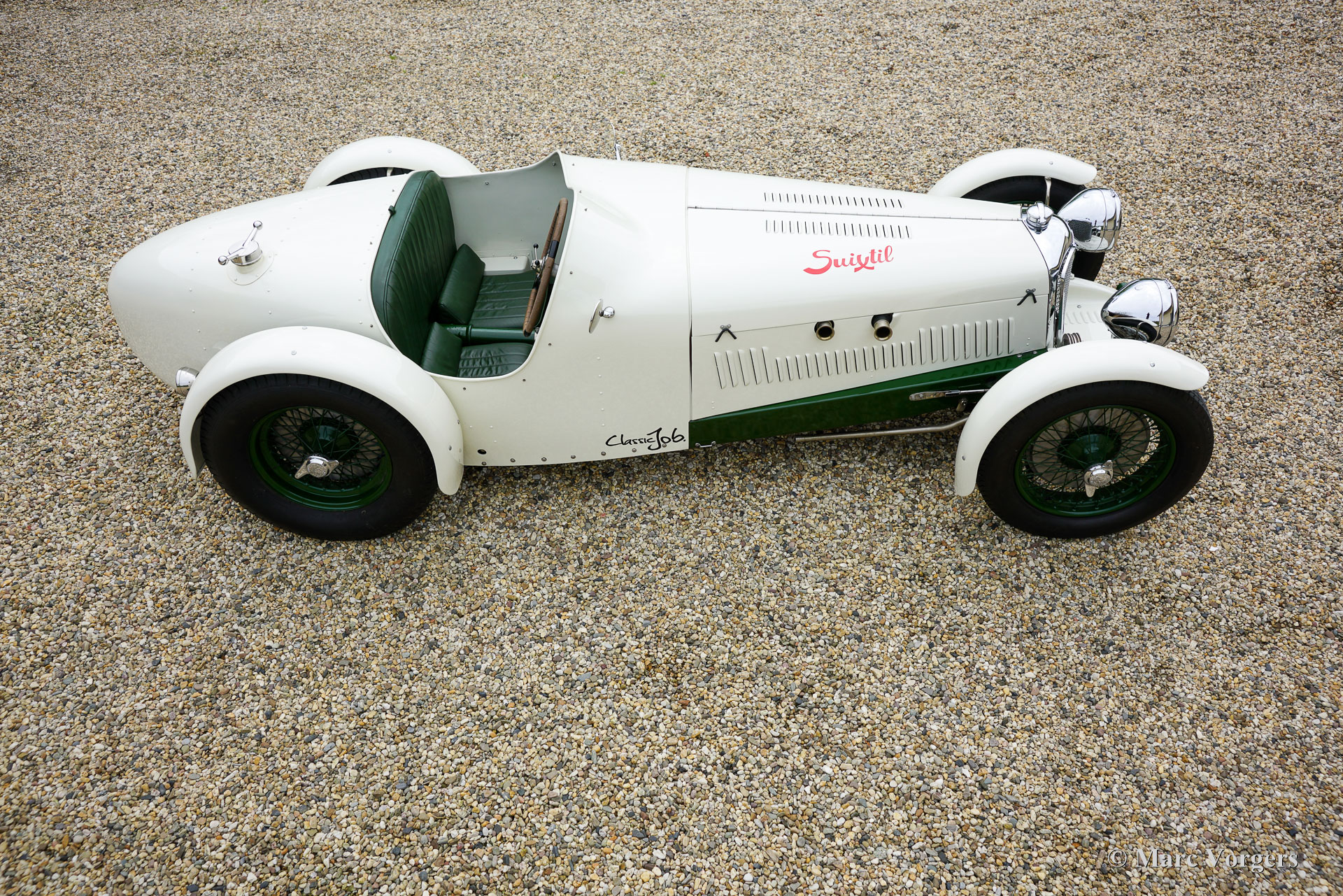 Riley TT Sprite replica, chassisjaar 1935. Eerste registratie 27 maart 1935. Carrosseriekleur wit gecombineerd met een groen chassis, groene spaakwielen en groene lederen bekleding in het interieur. Het originele Riley 12/4 (9PK) chassis, waarop deze prachtige TT Sprite replica is gebaseerd, verliet de Riley fabriek voorzien van een ‘Falcon’ sedan carrosserie. De Riley bracht een groot deel van zijn leven door met verschillende eigenaren in Devon, VK. In november 1978 werd de auto gekocht door het Nederlandse klassieke automuseum en dealer 'Automuseum Bergeyk' en via de douane van Felixstowe naar Nederland geëxporteerd. Eind jaren 1990 werden er plannen gemaakt om een Riley TT Sprite special te creëren op basis van het 12/4 chassis. In 1935/36 was de originele TT Sprite een racewagen die speciaal gebouwd was om deel te nemen aan de Ulster TT, die jaarlijks gehouden werd op het eiland Man, dat nog steeds bekendstaat om de spannende motorraces die op hetzelfde stratencircuit plaatsvinden. De originele Riley TT Sprite was gebaseerd op een chassis vergelijkbaar met dat van de 12/4 en voorzien van dezelfde 1496 cc viercilindermotor. Vandaar de keuze om chassis 22T1331 om te bouwen naar de specificaties van de TT Sprite. Er werden technische tekeningen gemaakt voor de uitvoering van de carrosserie en het chassis. Er werden detailtekeningen gemaakt voor de productie van het dashboard, de speciale ophanging, de versnellingspook, de koplamp- en spatbordbeugels, en andere speciale onderdelen die op de racewagen te vinden waren. Het technische werk en het tekenwerk werden gedaan door de Nederlander Kees de Cock (chassis en mechanische componenten) en de Engelsman John Pitney (carrosserie). De daadwerkelijke bouw werd gedaan door de heer J. Lensveld. Originele technische tekeningen van 18 december 1998 (chassisspecificaties/modificaties/lassen), 1 januari 1999 (definitieve technische tekeningen) en 2003 (detailtekeningen) zijn aanwezig in het blauwe boek van het historiebestand. In het andere boek is een volledig fotoverslag van de bouw opgenomen. Beginnend met de blauwe ‘Falcon’ sedan, met foto's van alle betrokken personen, de bouw van de houten mallen voor de aluminium carrosserie, de fabricage van de carrosserie en de voltooiing van het chassis en de motor. Met het oog op perfectie duurde de bouw vele jaren. De motor is gebouwd en ‘getuned’ volgens de racespecificaties van de TT Sprite, en de versnellingsbak is een degelijk, zeldzaam en origineel Riley ‘preselector’ exemplaar! De auto werd verkocht aan een Nederlandse autoverzamelaar en in april 2011 geregistreerd voor gebruik op de openbare weg. Vanaf dat moment werd de auto onderhouden door Classic Job. De huidige eigenaar koestert deze Riley TT Sprite replica sinds juli 2021. De auto verkeert in een uitstekende staat en rijdt indrukwekkend. Dit is een zorgvuldig gebouwde Riley TT Sprite replica die zelfs de meest veeleisende Riley-kenners zullen waarderen. Deze auto is een geweldige vondst voor Riley-liefhebbers, zowel op de openbare weg als tijdens regelmatigheid ritten en toertochten. Met aanpassingen om te voldoen aan de geldende FIA-regels, kan de auto zelfs worden ingezet voor nationale en internationale oldtimerraces (bijvoorbeeld via de Dutch Vintage Sports Car Club in Nederland).