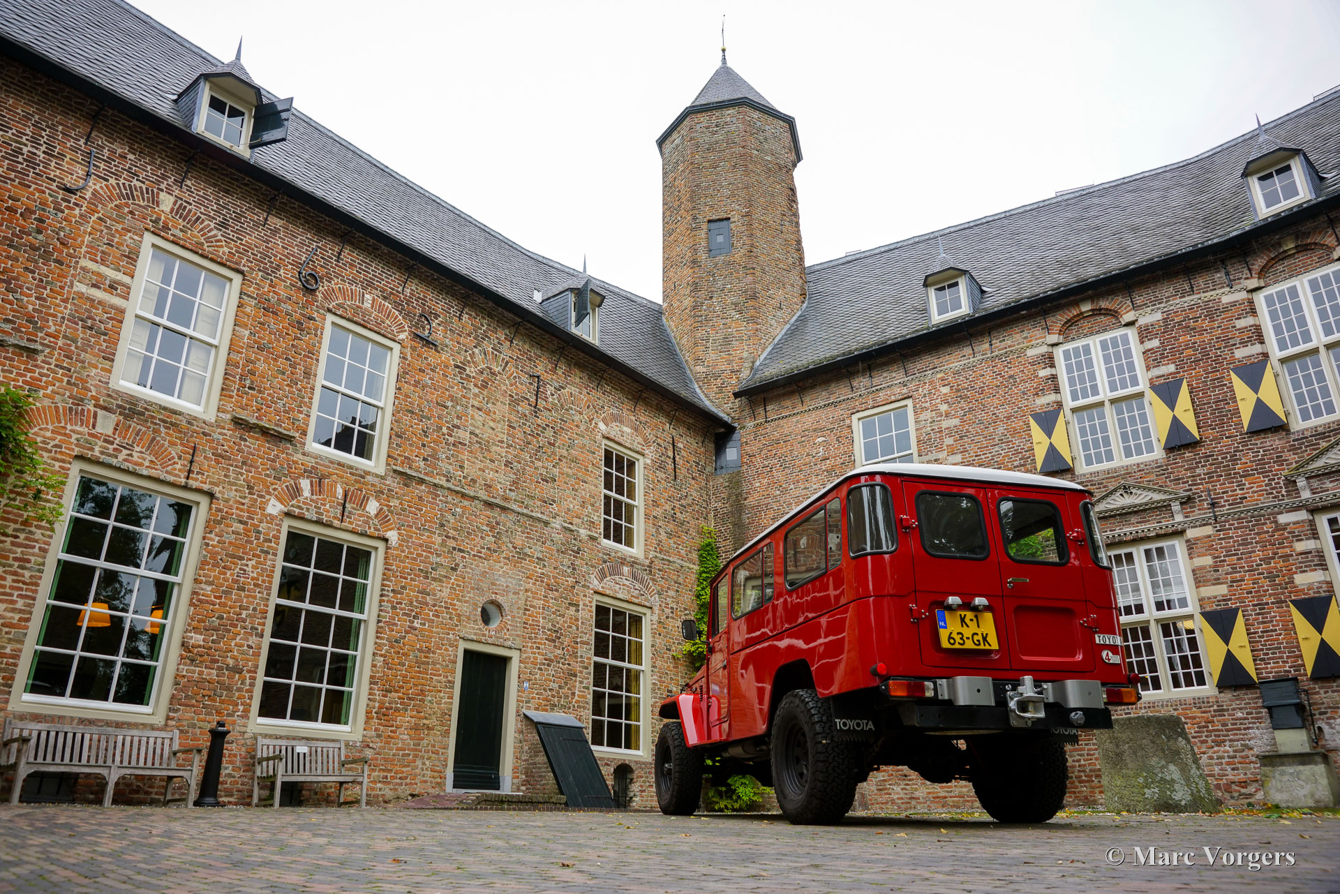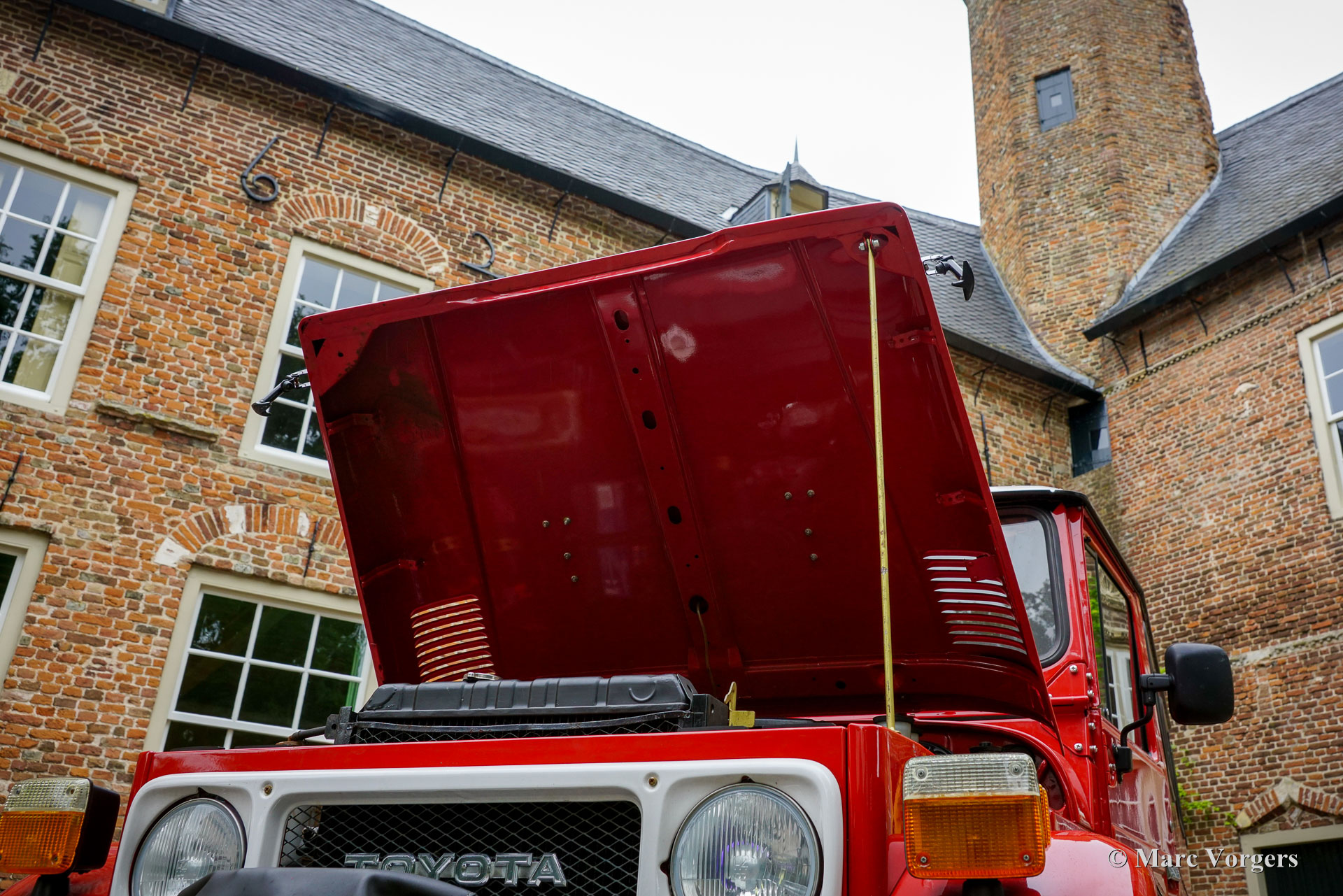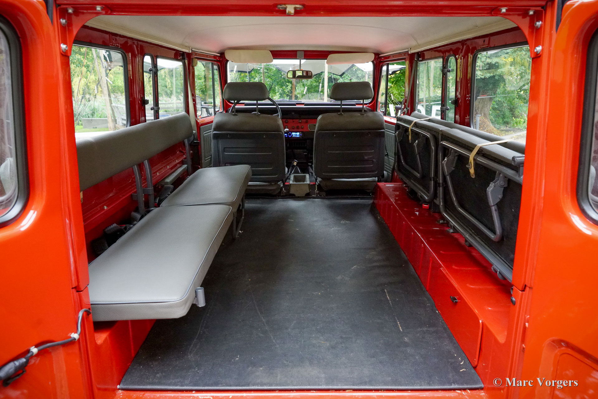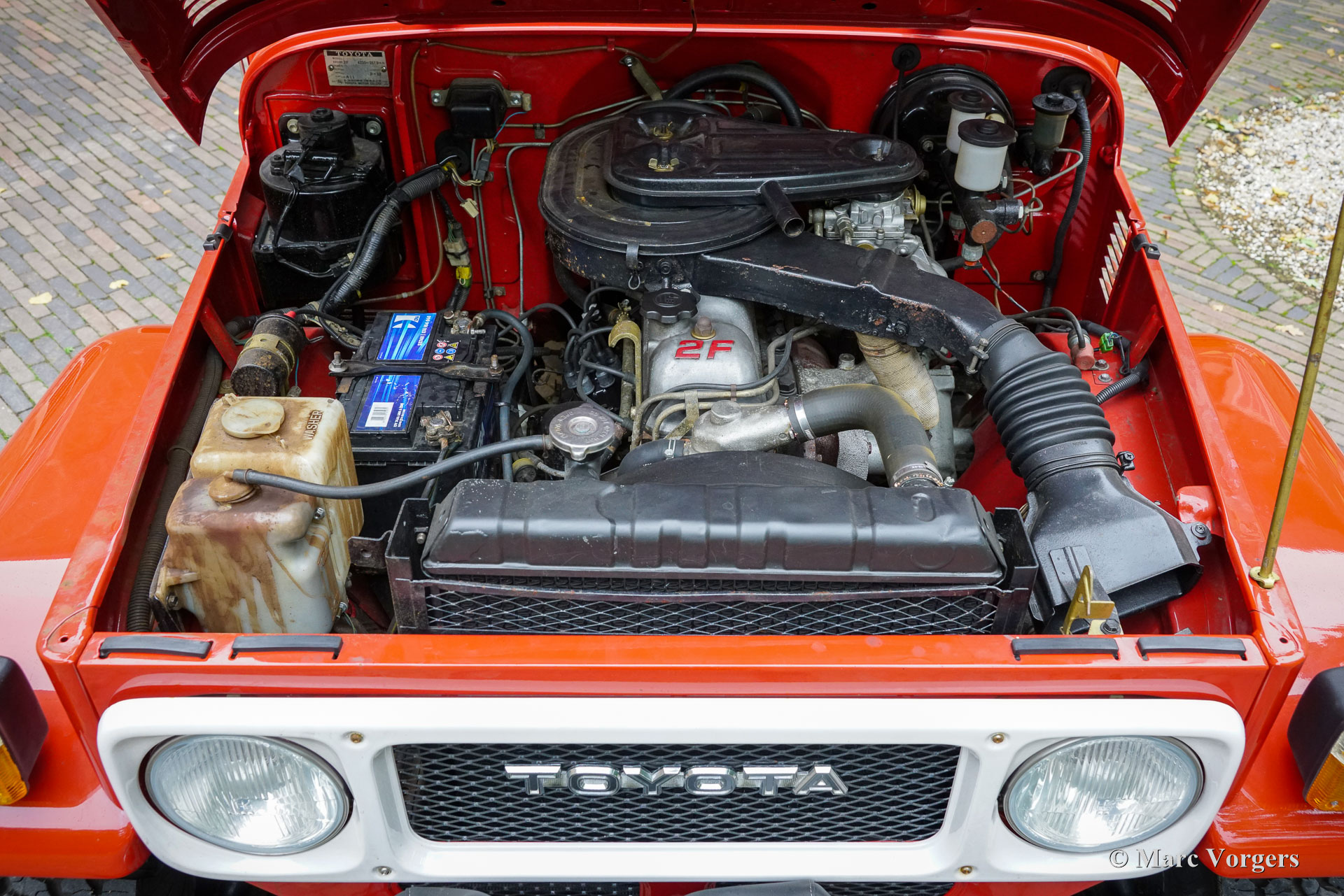 Toyota Land Cruiser FJ45 ‘hard top’, jaar 1980. Chassisnummer FJ4500800146. Kleur rood gecombineerd met een grijs kunstlederen interieur. Deze prachtige en stoere Toyota Land Cruiser FJ45 ‘hard top’ is op 8 december 2020 geïmporteerd naar Nederland. In 2020 heeft de auto een uitgebreide onderhoudsbeurt gehad, waaronder het vernieuwen van de remschoenen, handremset, achterwiellagers, stabilisatorrubbers en koelsysteem slangen. Verder zijn de achterremcilinders gereviseerd, een differentieel lek gerepareerd, klepspeling afgesteld, ontstekingsdelen vernieuwd en afgesteld. In datzelfde jaar is er elektrische stuurbekrachtiging gemonteerd door EZ Power Steering. In 2021 zijn de stuurkogels vernieuwd en zijn de remcilinders aan de voorzijde vernieuwd. De auto is op 18 januari 2024 gekocht door de huidige Nederlandse eigenaar. Deze indrukwekkende Land Cruiser aangedreven door een 4,2 liter zes-in-lijn motor verkeert in een zeer goede en prachtige staat, en de auto rijdt en stuurt zoals het hoort. Zelfs op de snelweg, met snelheden rond de 100 km/u, voelt de auto zich comfortabel en is minder lawaaiig dan verwacht. Het verhaal van de Land Cruiser begon met het prototype van de Toyota ‘Jeep’ BJ in 1951. Het prototype van de BJ bleek een solide en succesvol concept: de auto beklom het zesde controlepunt van de berg Fuji, iets wat geen enkel motorvoertuig eerder had gepresteerd! In 1954 werd de naam Land Cruiser geïntroduceerd en het is het langstlopende Toyotamodel. Deze Toyota Land Cruiser FJ45 ‘hard top’ uit 1980, met de duurzame zescilinder-in-lijn benzinemotor, is een gewild stukje Japans auto-erfgoed. Het model wordt wereldwijd bewonderd om zijn robuuste techniek, zijn uitzonderlijke ‘offroad’-capaciteiten en zijn klassieke, utilitaire uiterlijk. Dit geweldige exemplaar is klaar voor weekendavonturen en/of om te bewaren en te bewonderen in een collectie. De auto is super origineel en kan worden geïmporteerd en geregistreerd in elk land ter wereld. Deze auto is alleen op afspraak beschikbaar voor bezichtiging en een testrit.