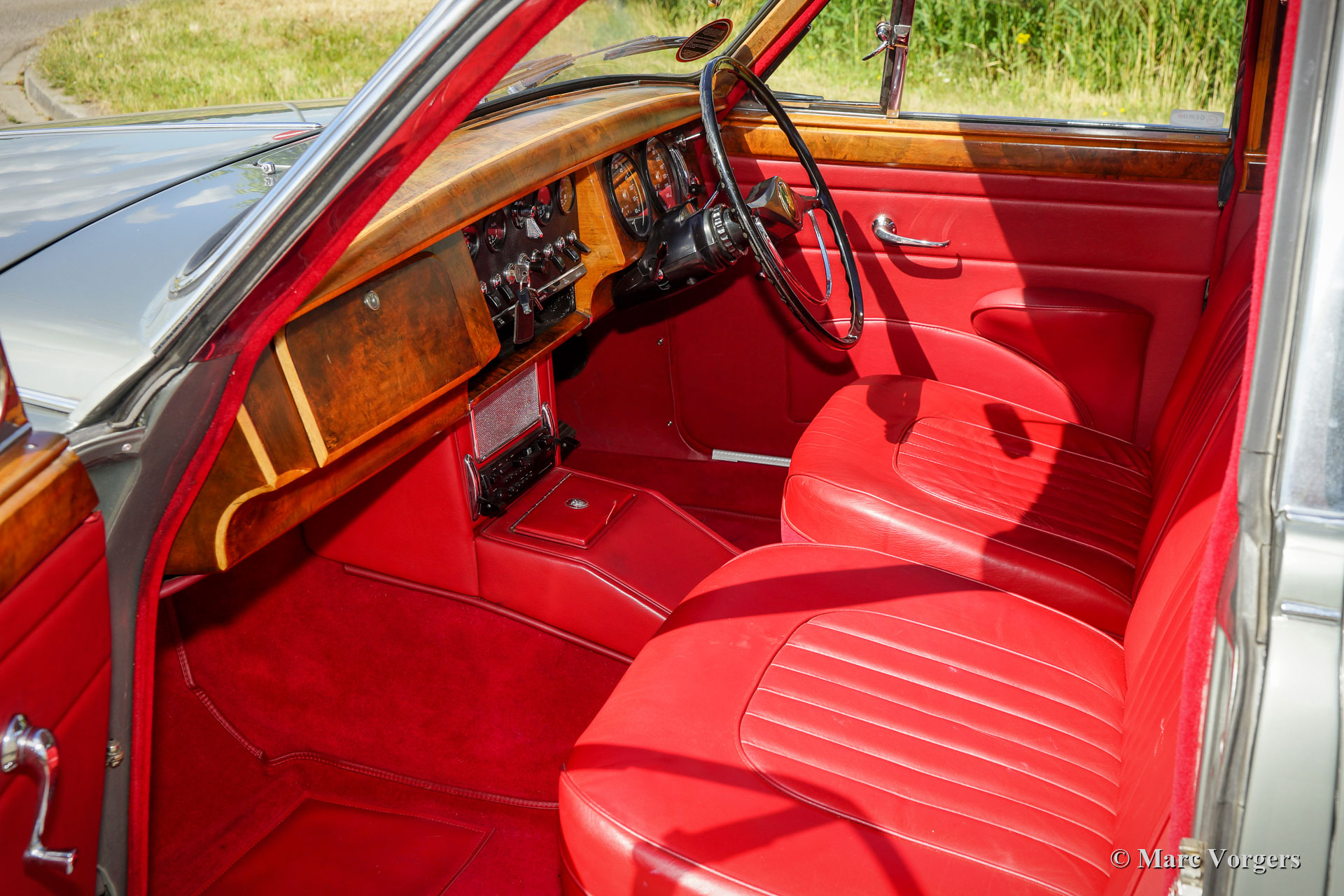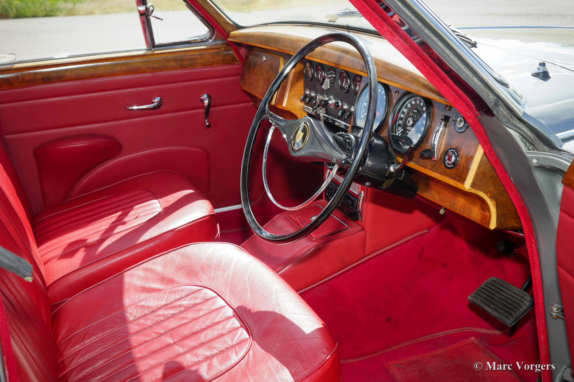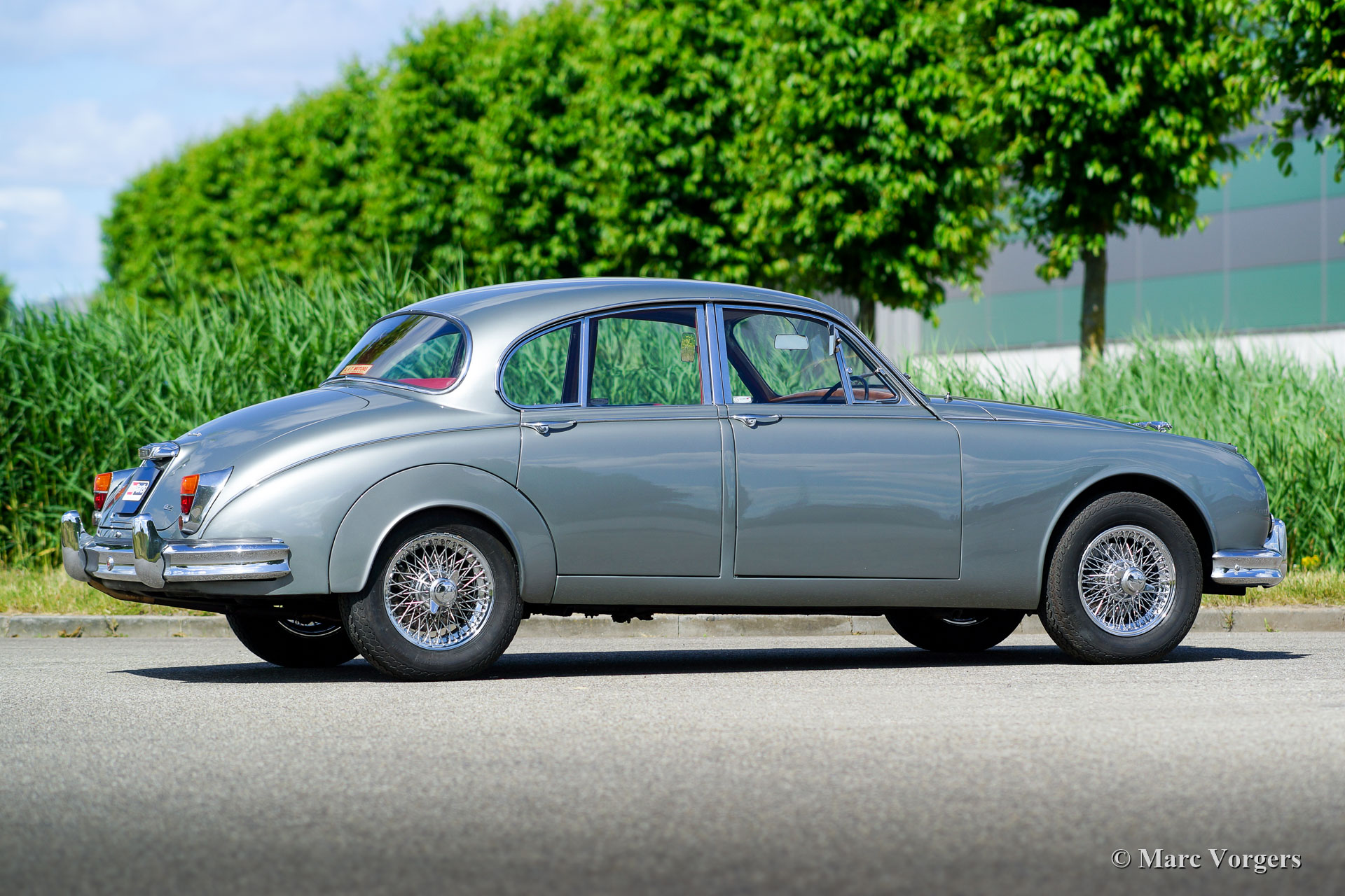 Jaguar Mk II 2.4 Litre automatic, jaar 1961. Kleur zilvergrijs metallic gecombineerd met een rood leren interieur en rood tapijt. Deze prachtige en zeldzame Jaguar Mk II 2.4 Liter werd in het verleden gerestaureerd, de carrosserie en het interieur zien er fantastisch en bijna als nieuw uit! De auto verkeert in uitstekende staat en toont alle originele details. Deze prachtige Jaguar Mk II is uitgerust met een automatische versnellingsbak, stuurbekrachtiging en rembekrachtiging. Verder is de auto voorzien van verchroomde spaakwielen en extra Lucas ‘Fog-Ranger’ mistlampen aan de voorzijde. De 2,4-liter zescilinder-motor loopt zeer soepel en de auto is een genot om mee te rijden. Een uitstekend exemplaar beschikbaar tegen een zeer speciale prijs!