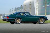 Jaguar XJ-S V12 coupé 'Le Mans' editie, jaar 1988. Kleur British Racing Green met een beige leren interieur. Deze fantastische Jaguar XJ-S V12 coupe is een zeldzame Le Mans Edition, dit is auto nummer 24 van slechts 65 geproduceerde exemplaren! Deze mooie Jaguar Le Mans Edition werd in 2002 vanuit Zwitserland naar Nederland geïmporteerd. De auto verkeert in zeer goede en zeer originele staat met lichte gebruikssporen. Deze Jaguar XJ-S V12 is in de loop der jaren goed onderhouden. Vanaf nieuw heeft de auto 125.000 kilometer gereden. Deze XJ-S V12 HE rijdt perfect en de auto heeft een uitstekend schakelende automatische versnellingsbak. De lichtmetalen velgen zijn origineel voor de Le Mans uitvoering, evenals de koperen plaquette op de console met de bevestiging dat dit auto nummer 24 is van deze ‘limited edition’ uitvoering.
