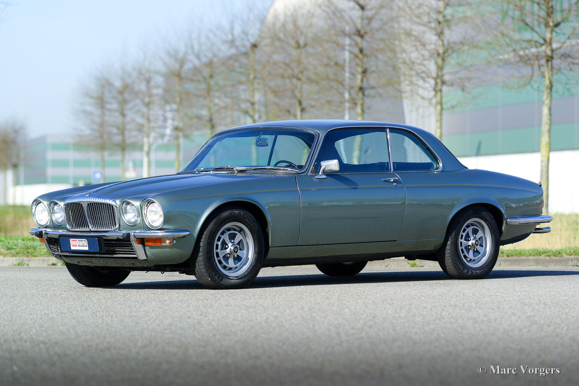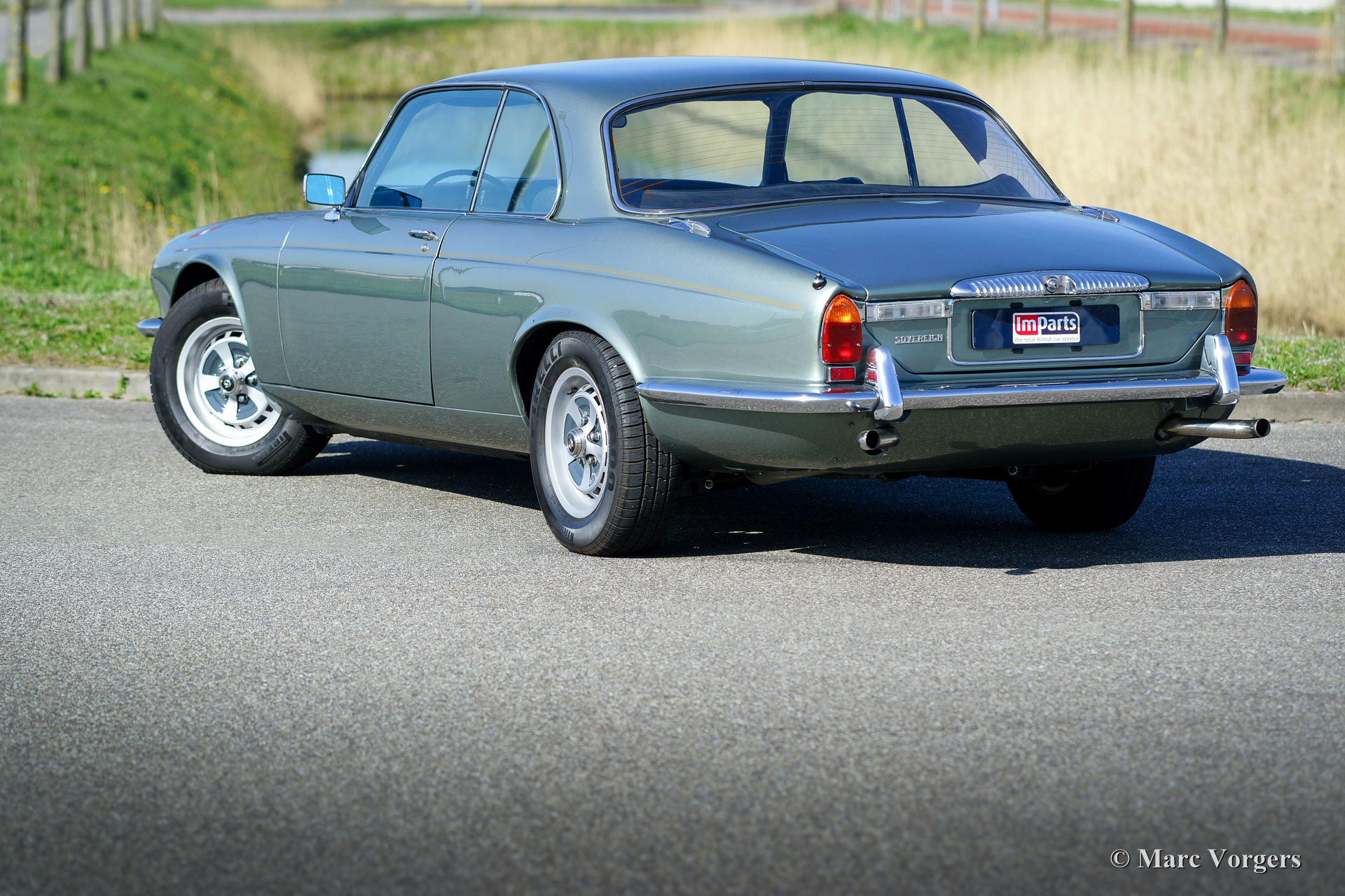 Jaguar XJ6 4.2 Litre Coupe, jaar 1975. Kleur lichtgroen/grijs metallic met een zwartleren interieur. Deze fraaie XJ6 coupe werd enige jaren geleden uitvoerig gerestaureerd waarbij het gave originele interieur behouden is gebleven. Ook werd de zescilinder-lijnmotor motor gereviseerd, deze heeft sinds de restauratie minder dan 5000 km gedraaid. De automobiel verkeert in zeer goede tot excellente staat. Een fotoreportage van de uitgevoerde werkzaamheden is aanwezig. Tijdens de restauratie besloot de eigenaar om de grille, chroom lijst op de motorkap, handgreep kofferklep en de wielnaaf-logo’s van de een Daimler Sovereign te monteren. Deze metamorfose is, indien gewenst, door een nieuwe eigenaar vrij eenvoudig ongedaan te maken. Deze uiterst fraai gelijnde Jaguar coupe werd alleen gebouwd in de periode 1975 – 1977.