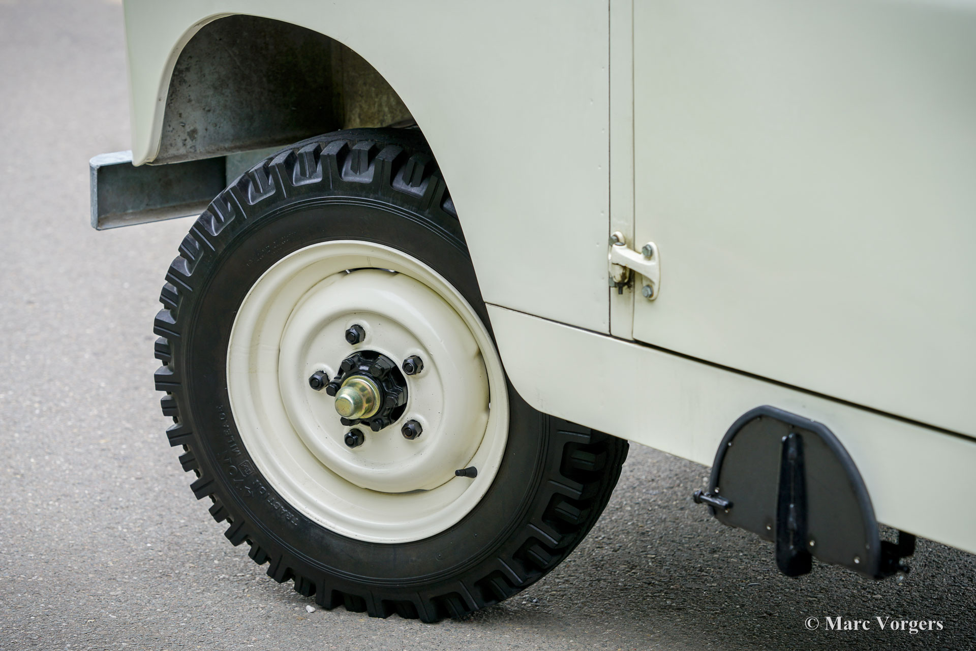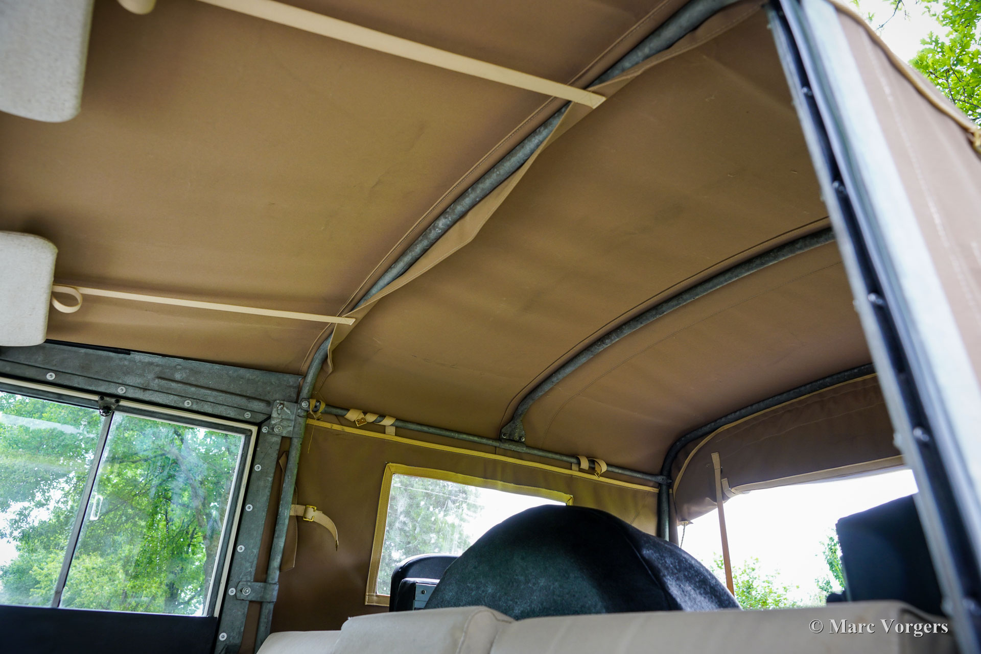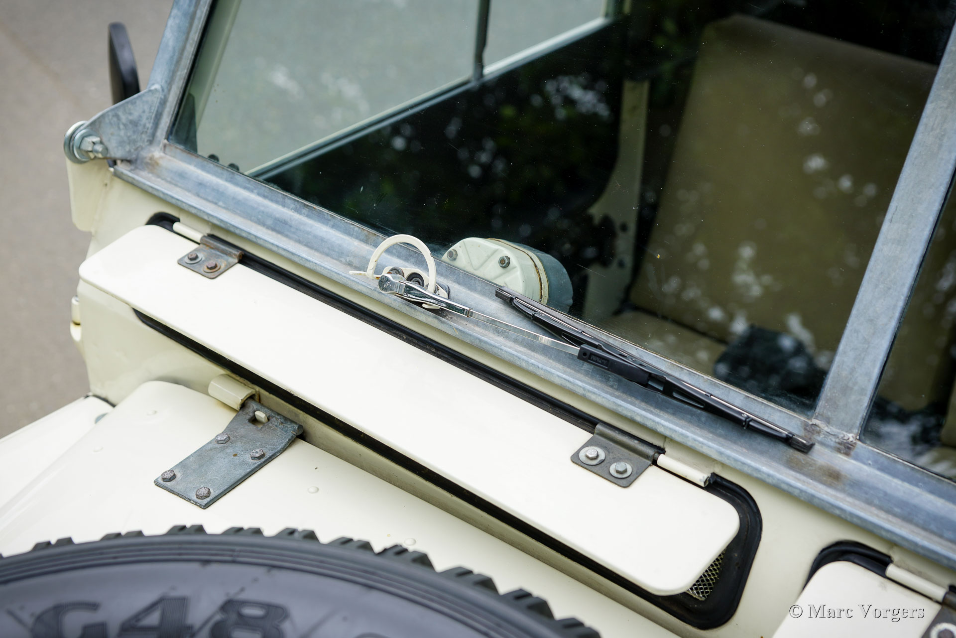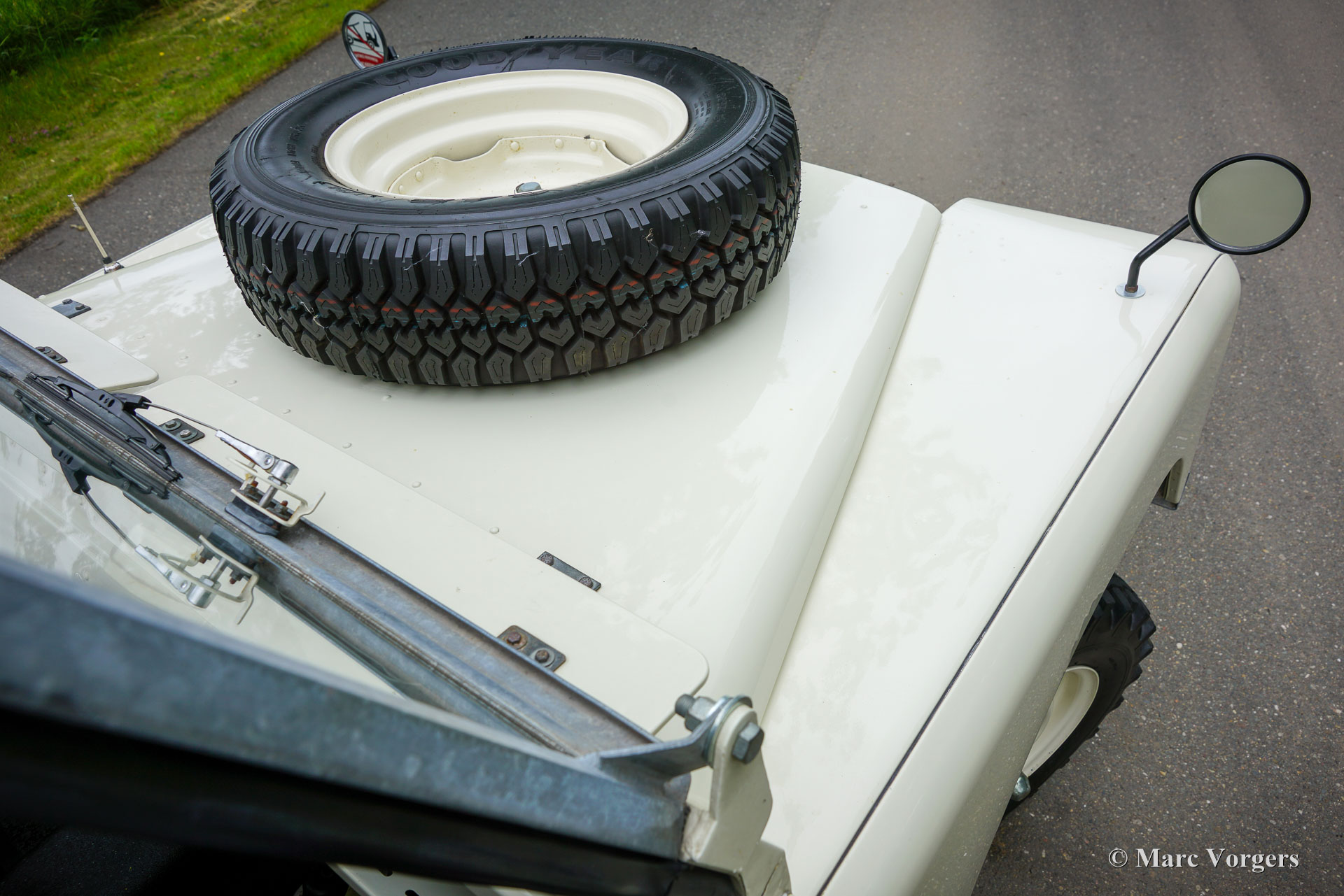 Land Rover 88 serie 2, jaar 1958. Kleur gebroken wit gecombineerd met lichtbeige bekleding voorin, zwart vinyl bekleding achterin, en zwart rubber vloerbedekking. Beige soft-top. Deze prachtige een zeer origineel ogende Land Rover 88 is nieuw verkocht in Nederland. De huidige eigenaar kocht de auto ruim 25 jaar geleden. Na aankoop is de auto uitvoerig gerestaureerd naar de huidige zeer goede en mooie staat. De originele 2 liter motor is vervangen voor een krachtigere 2,25 liter versie uit een serie 3, verder is de auto geheel volgens de serie 2 specificaties. Deze geweldige Land Rover 88 rijdt uitstekend, de krachtige viercilinder benzinemotor loopt soepel en de versnellingsbak met lange pook schakelt zoals het hoort. Het interieur is eenvoudig op het Spartaanse af maar dat hoort bij een functioneel werkpaard als de Land Rover. De terugvallende grille met daarop de twee koplampen is kenmerkend voor de vroege Land Rover modellen. Het reservewiel op de motorkap, de uitklapbare opstapjes bij de deuren en de opstap aan de achterkant geven ook aan dat het om een klassieke Land Rover gaat. Achterin is er bij deze Land Rover nog een reservewiel gemonteerd, deze kan er eenvoudig uitgehaald worden. Deze Land Rover ademt avontuur, het mooie is dat deze auto is voorzien van vier extra zitplaatsen achterin waardoor er met 7 personen volop kan worden genoten van de rit, de auto, en van het gezelschap. Dit is een geweldige Land Rover 88 in zeer goede conditie, een pracht auto voor avonturiers die zich niet altijd op gebaande paden willen begeven.