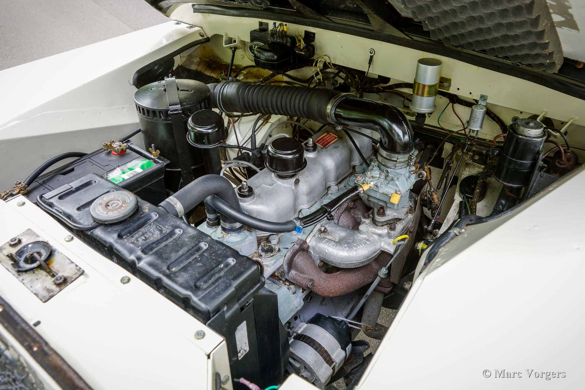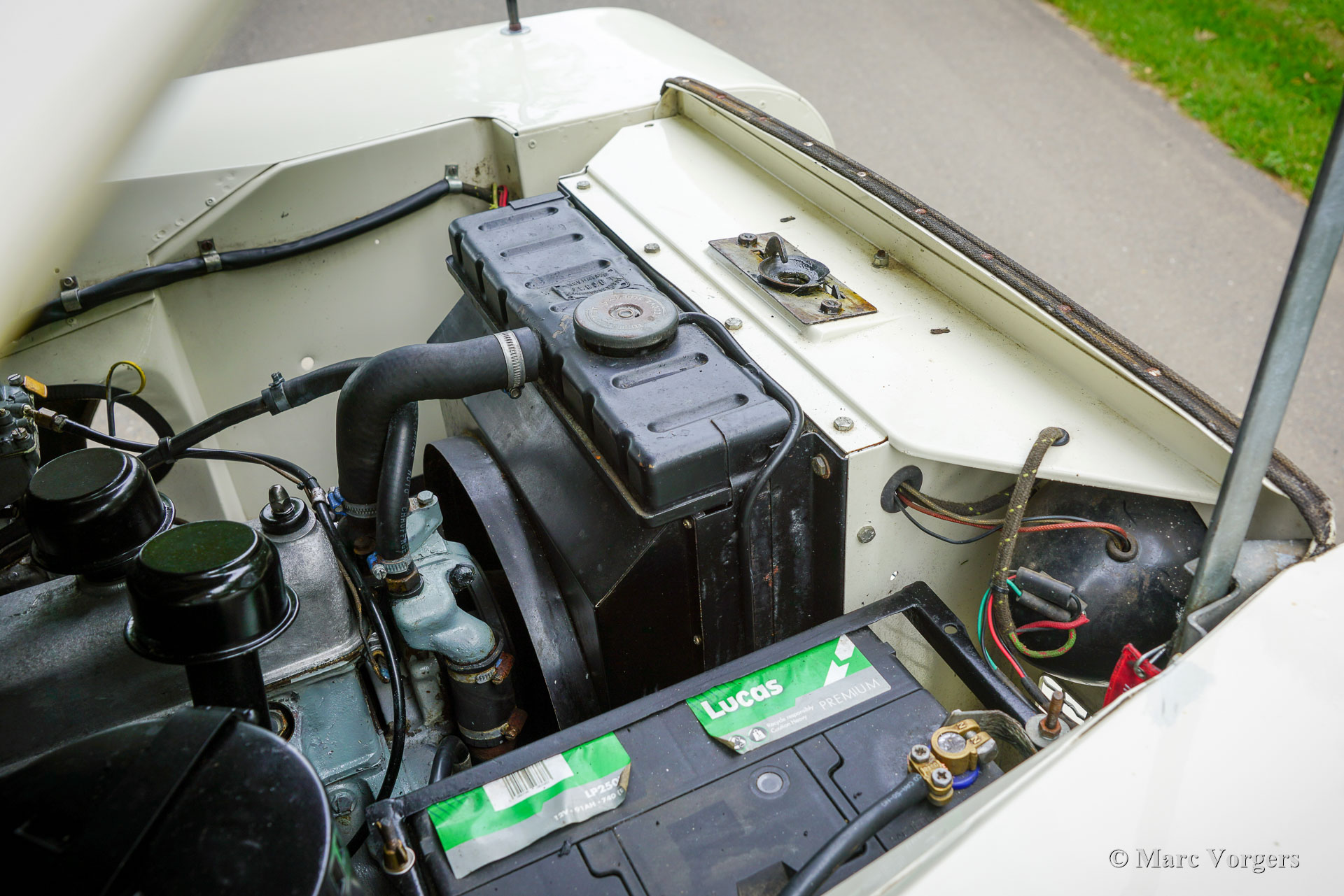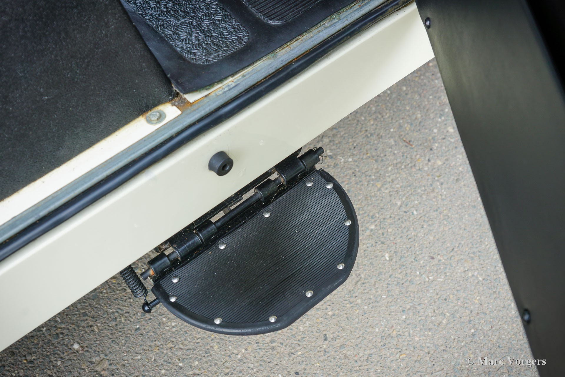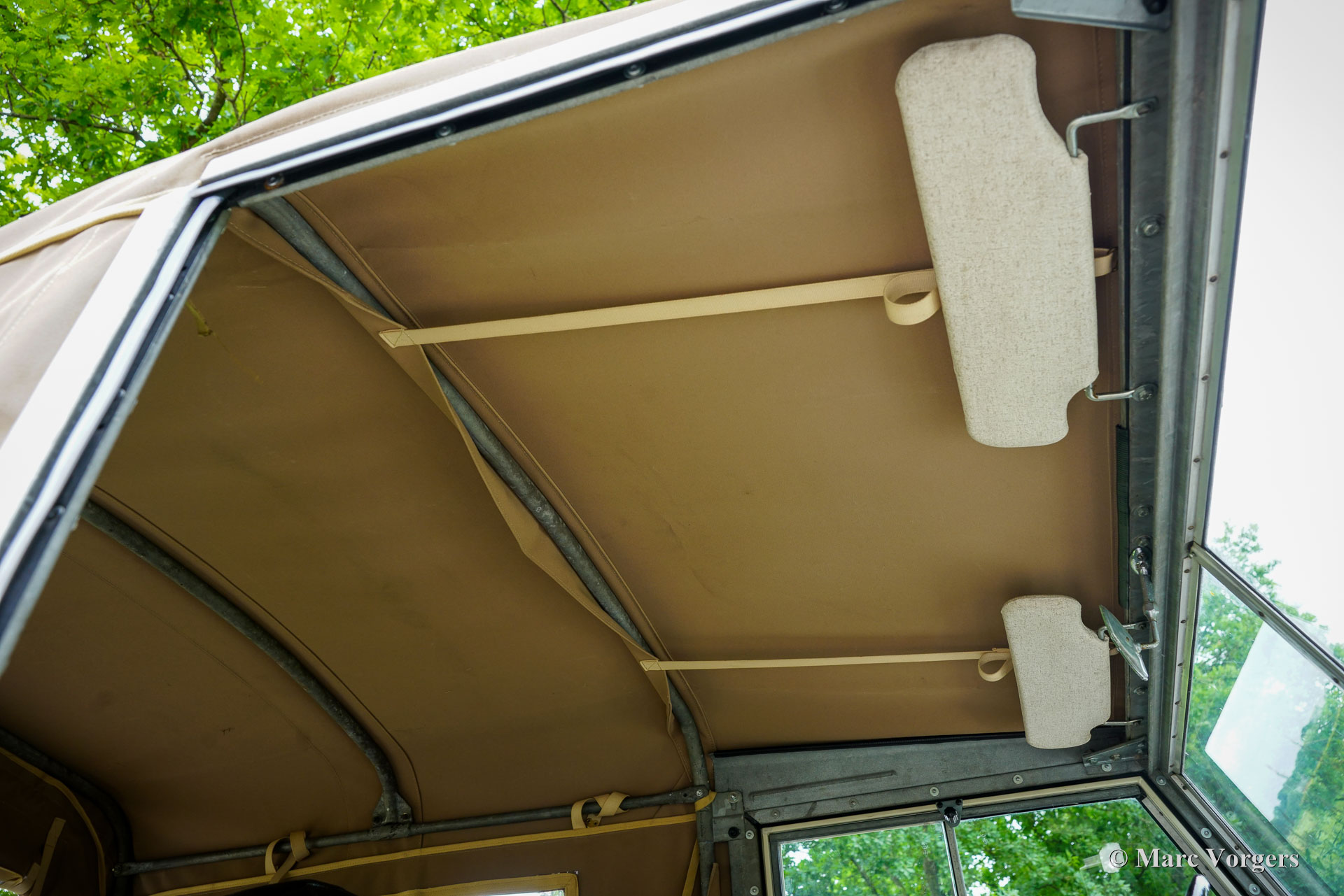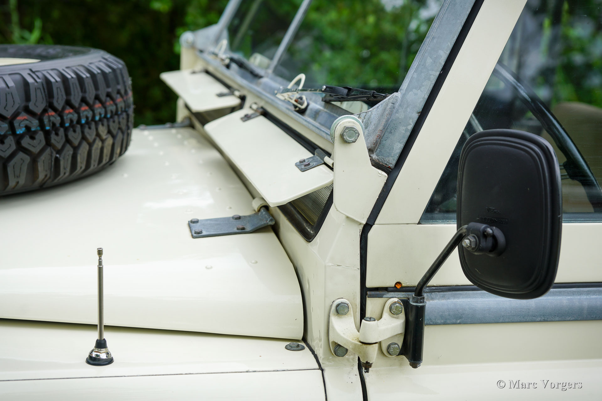 Land Rover 88 serie 2, jaar 1958. Kleur gebroken wit gecombineerd met lichtbeige bekleding voorin, zwart vinyl bekleding achterin, en zwart rubber vloerbedekking. Beige soft-top. Deze prachtige een zeer origineel ogende Land Rover 88 is nieuw verkocht in Nederland. De huidige eigenaar kocht de auto ruim 25 jaar geleden. Na aankoop is de auto uitvoerig gerestaureerd naar de huidige zeer goede en mooie staat. De originele 2 liter motor is vervangen voor een krachtigere 2,25 liter versie uit een serie 3, verder is de auto geheel volgens de serie 2 specificaties. Deze geweldige Land Rover 88 rijdt uitstekend, de krachtige viercilinder benzinemotor loopt soepel en de versnellingsbak met lange pook schakelt zoals het hoort. Het interieur is eenvoudig op het Spartaanse af maar dat hoort bij een functioneel werkpaard als de Land Rover. De terugvallende grille met daarop de twee koplampen is kenmerkend voor de vroege Land Rover modellen. Het reservewiel op de motorkap, de uitklapbare opstapjes bij de deuren en de opstap aan de achterkant geven ook aan dat het om een klassieke Land Rover gaat. Achterin is er bij deze Land Rover nog een reservewiel gemonteerd, deze kan er eenvoudig uitgehaald worden. Deze Land Rover ademt avontuur, het mooie is dat deze auto is voorzien van vier extra zitplaatsen achterin waardoor er met 7 personen volop kan worden genoten van de rit, de auto, en van het gezelschap. Dit is een geweldige Land Rover 88 in zeer goede conditie, een pracht auto voor avonturiers die zich niet altijd op gebaande paden willen begeven.