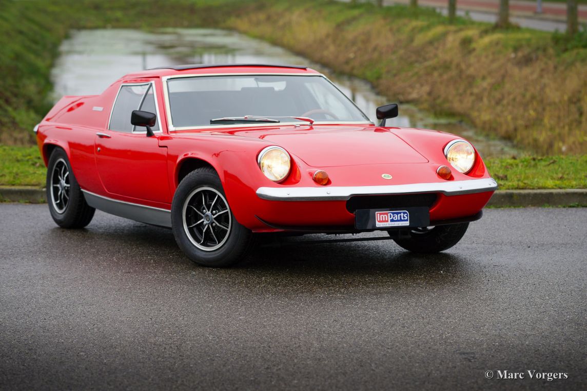 Lotus Europa Special TC (type 74), jaar 1974. Kleur rood gecombineerd met een zwart kunstlederen interieur en zwart tapijt. Deze fantastische Lotus Europa Special is uitgerust met de beroemde Lotus 1600 cc Twin Cam ‘Big Valve’ viercilindermotor. De motor levert 126 pk, wat meer dan genoeg is voor zeer sportieve prestaties in deze lichte (740 kg) sportwagen! Deze Lotus Europa verkeert in zeer goede staat. De auto is uitgerust met een authentiek schuif-/ vouwdak en originele Lotus lichtmetalen velgen.