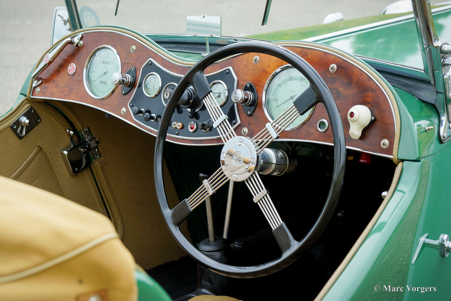 MG TC, jaar 1947. Kleur Almond Green gecombineerd met een beige interieur. Beige kap, tonneau cover en zijruitframes. Deze prachtige MG TC werd nieuw verkocht in de Verenigde Staten. Nadat de MG naar Europa was teruggekeerd, werd deze gerestaureerd en maakte deel uit van klassieke autocollecties in Duitsland, Frankrijk en Nederland. Een uitgebreid historiebestand is aanwezig, evenals facturen van in 2012 uitgevoerde revisies. Deze MG TC is uitgevoerd in een van de meest gewilde kleurcombinaties en de auto rijdt uitstekend! Deze MG TC verkeert in een zeer goede tot excellente conditie en de auto toont alle originele details. Een prachtige vondst voor de MG 'Midget' liefhebber!