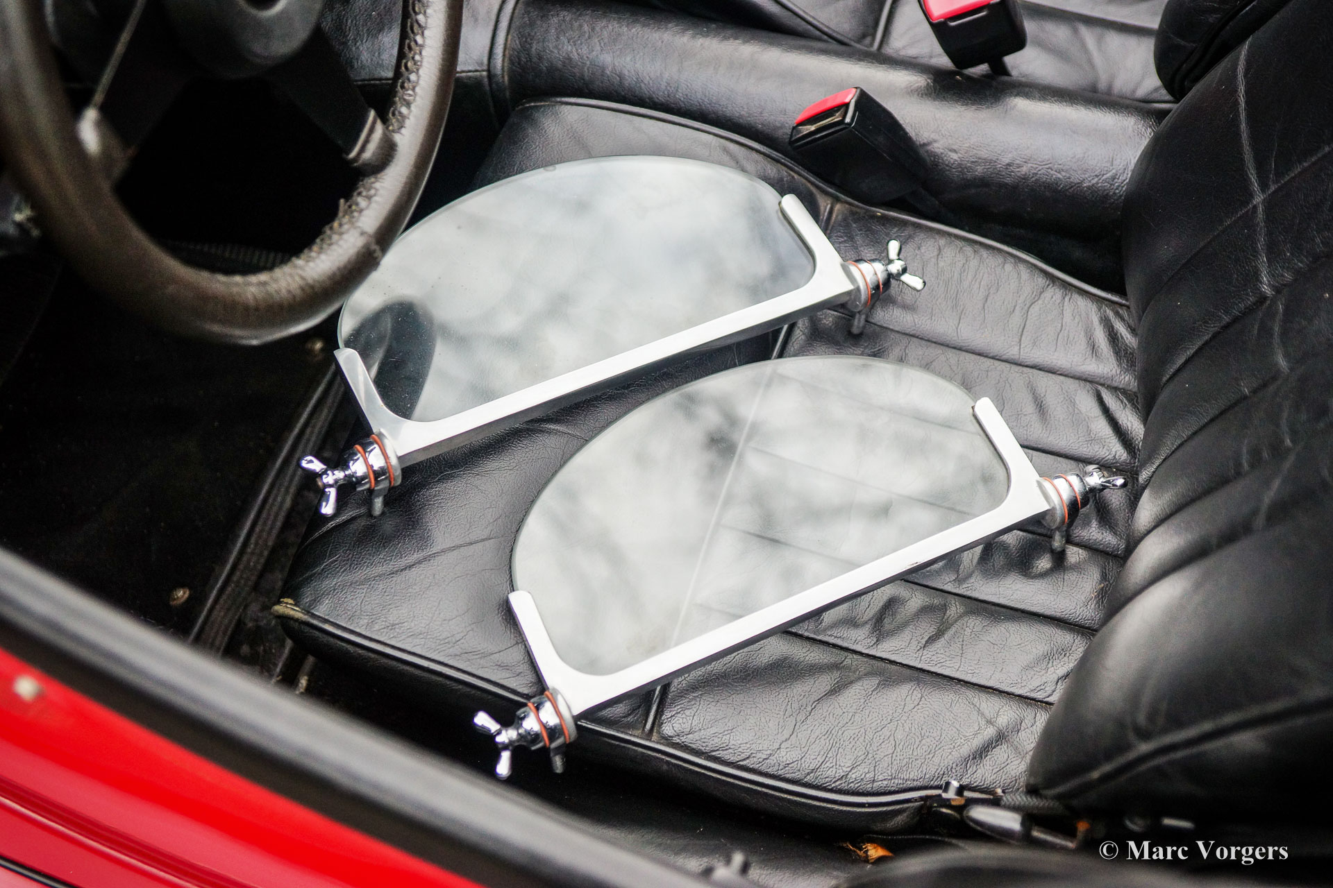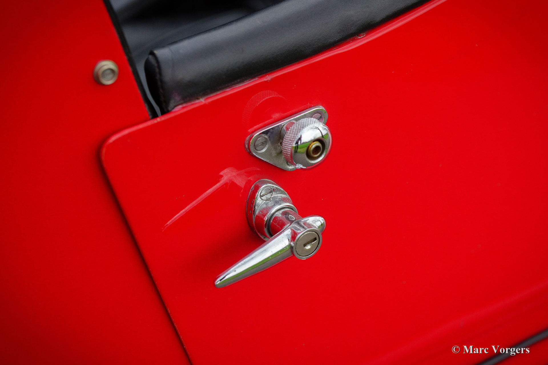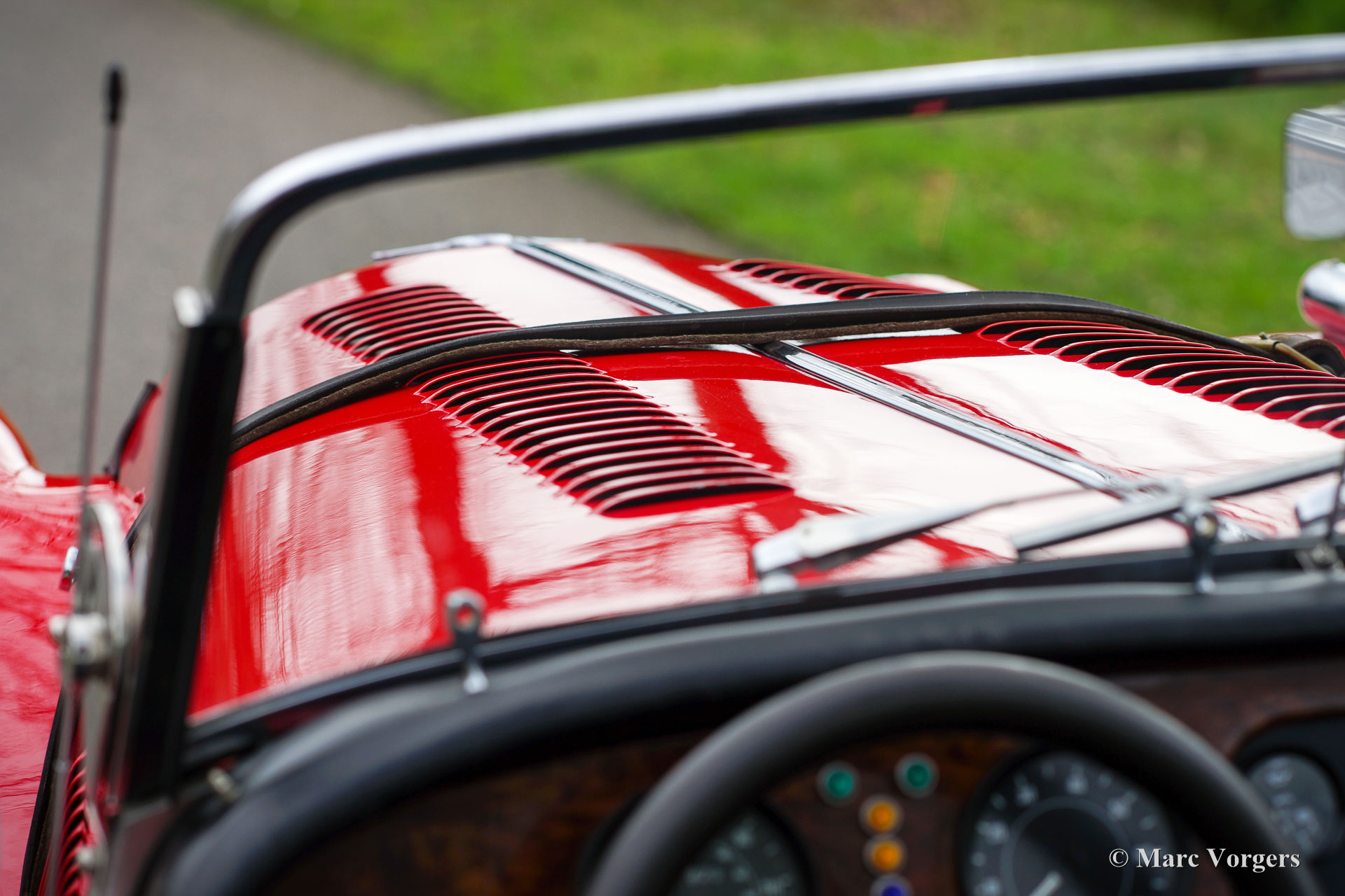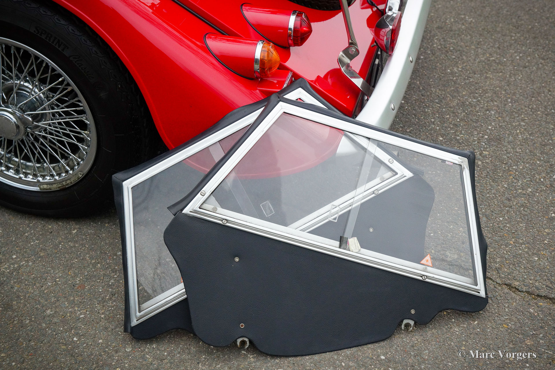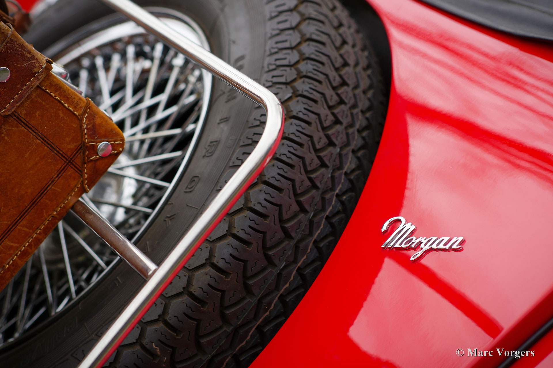Morgan 4/4, jaar 1989. Kleur rood gecombineerd met een zwartlederen interieur en zwart tapijt. Zwarte soft-top. Deze prachtige Morgan 4/4 is in 1997 uit Engeland geïmporteerd en kort daarna omgebouwd naar linkse besturing. Deze Morgan verkeert in een zeer goede staat en de auto rijdt voortreffelijk. De auto biedt de fantastische open Britse sportwagen rijervaring met een fantastisch uitzicht over een lange motorkap met koelsleuven. De auto is voorzien van prachtige opties zoals chromen spaakwielen met 165-15 banden, twee op de portieren gemonteerde chromen achteruitkijkspiegels, een paar Lumax verstralers aan de voorzijde, een chromen bagagerek, een notenhouten dashboard met bijpassende pookknop, een lederen riem over de motorkap en een afsluitbare benzinevuldop. De voorruit kan neergeklapt worden, beugels zijn aanwezig om de twee aerodynamische “Brooklands” race ruiten te monteren. Deze fraaie Morgan 4/4 is voorzien van de 1600 cc Ford (CVH) viercilinder motor, een handgeschakelde vijfversnellingsbak en schijfremmen aan de voorwielen. Dit is een fantastische Morgan 4/4 in een zeer goede staat die de nieuwe eigenaar vele jaren klassiek rijplezier zal bezorgen!