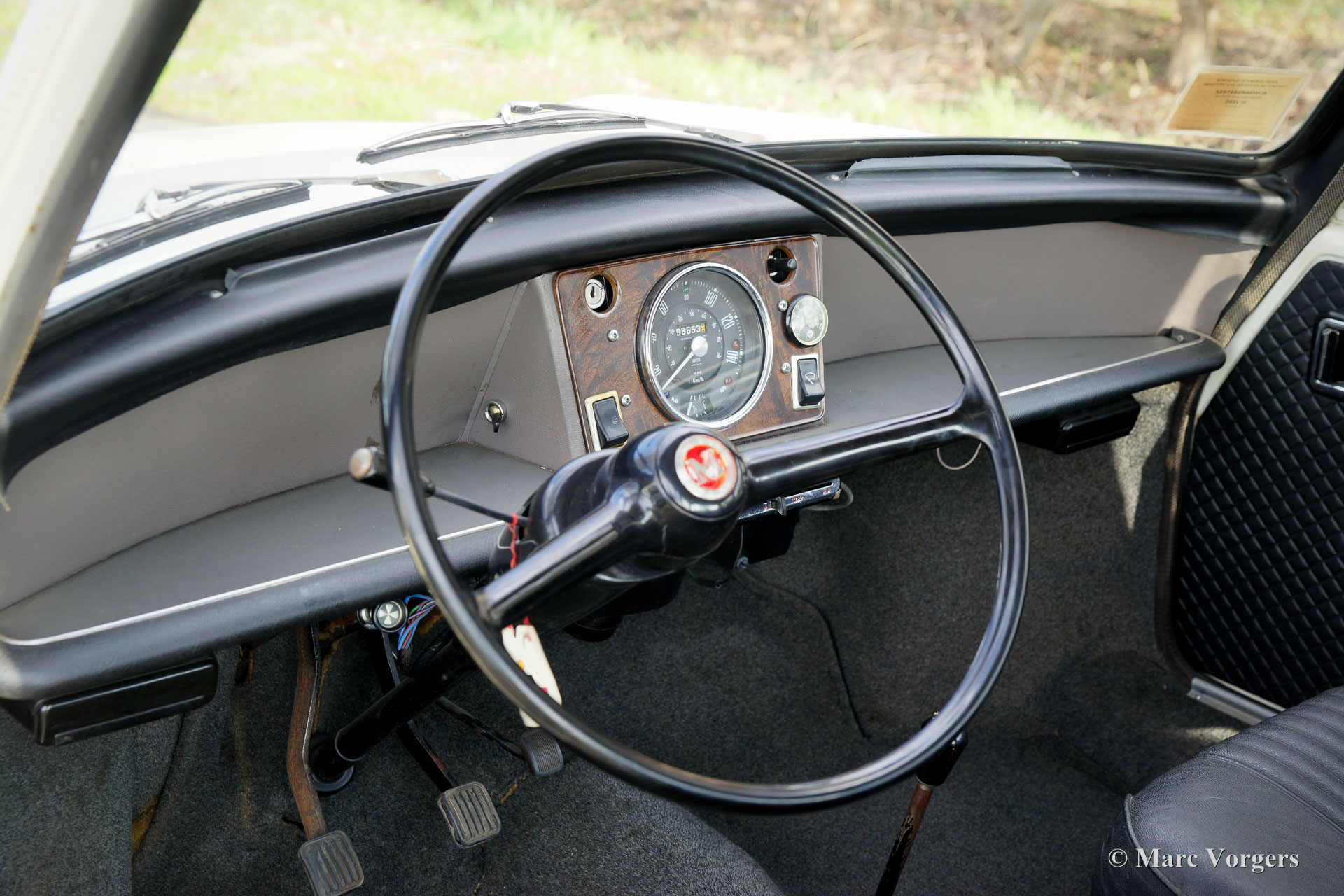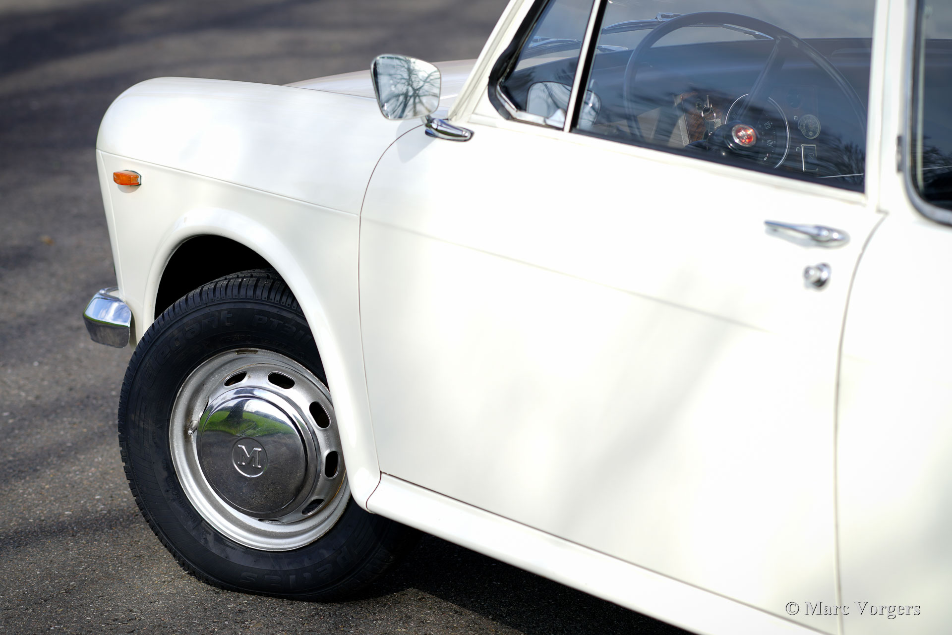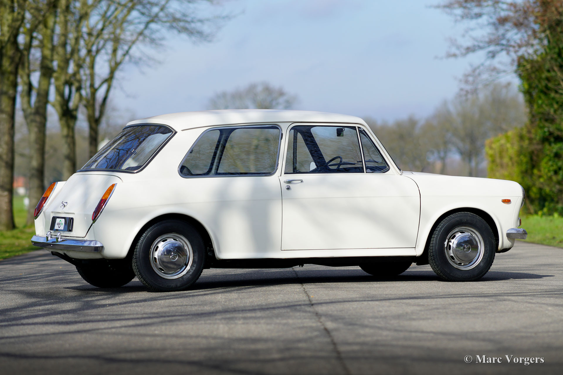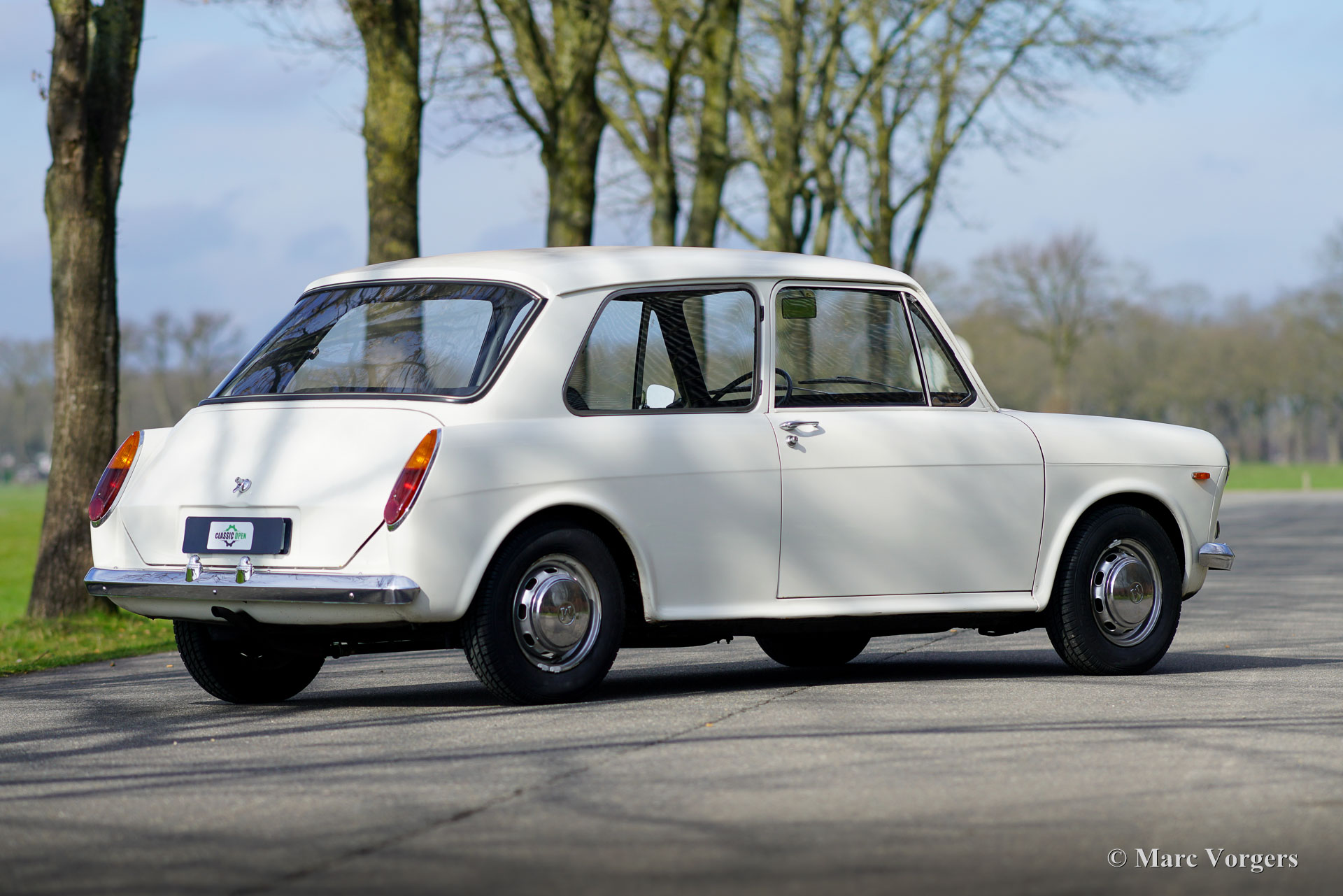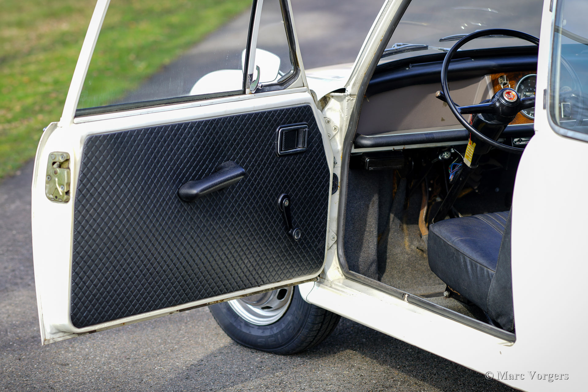 Morris 1100, jaar 1970. Kleur wit gecombineerd met een zwart kunstlederen interieur en grijs tapijt. Deze Morris 1100 is nieuw verkocht in Nederland. De auto is afkomstig van de tweede eigenaar die de Morris al sinds 1982 koestert! Na de aankoop in 1982 is de auto voorzien van nieuwe lak in de originele kleur. De 40 jaar oude lak is nog in een zeer goede staat en de carrosserie is helemaal gaaf. De Morris heeft net geen 100.000 kilometer gereden. De auto rijdt uitstekend, de motor loopt prachtig en de vierversnellingsbak schakelt zoals het hoort. De innovatieve 'Hydrolastic'-ophanging werkt uitstekend en zorgt voor een comfortabele rijbeleving. Deze Morris 1100 verkeert in een zeer goede en super originele staat! Het interieur is zeer ruim en biedt plaats aan vijf inzittenden. De Morris 1100 was ook leverbaar met andere grilles en merkbadges als Austin Glider, Wolseley, MG en Riley met de codenaam ADO16. Een vroeg voorbeeld van ‘badge engineering’ dat de norm is is in de moderne autofabricage. De auto heeft een volledige servicebeurt gehad en er zijn vier nieuwe banden en een nieuwe benzinepomp gemonteerd. De Morris 1100 is een bijzonder ruimtewonder ontworpen door Alec Issigonis, de vader van de iconische Mini.