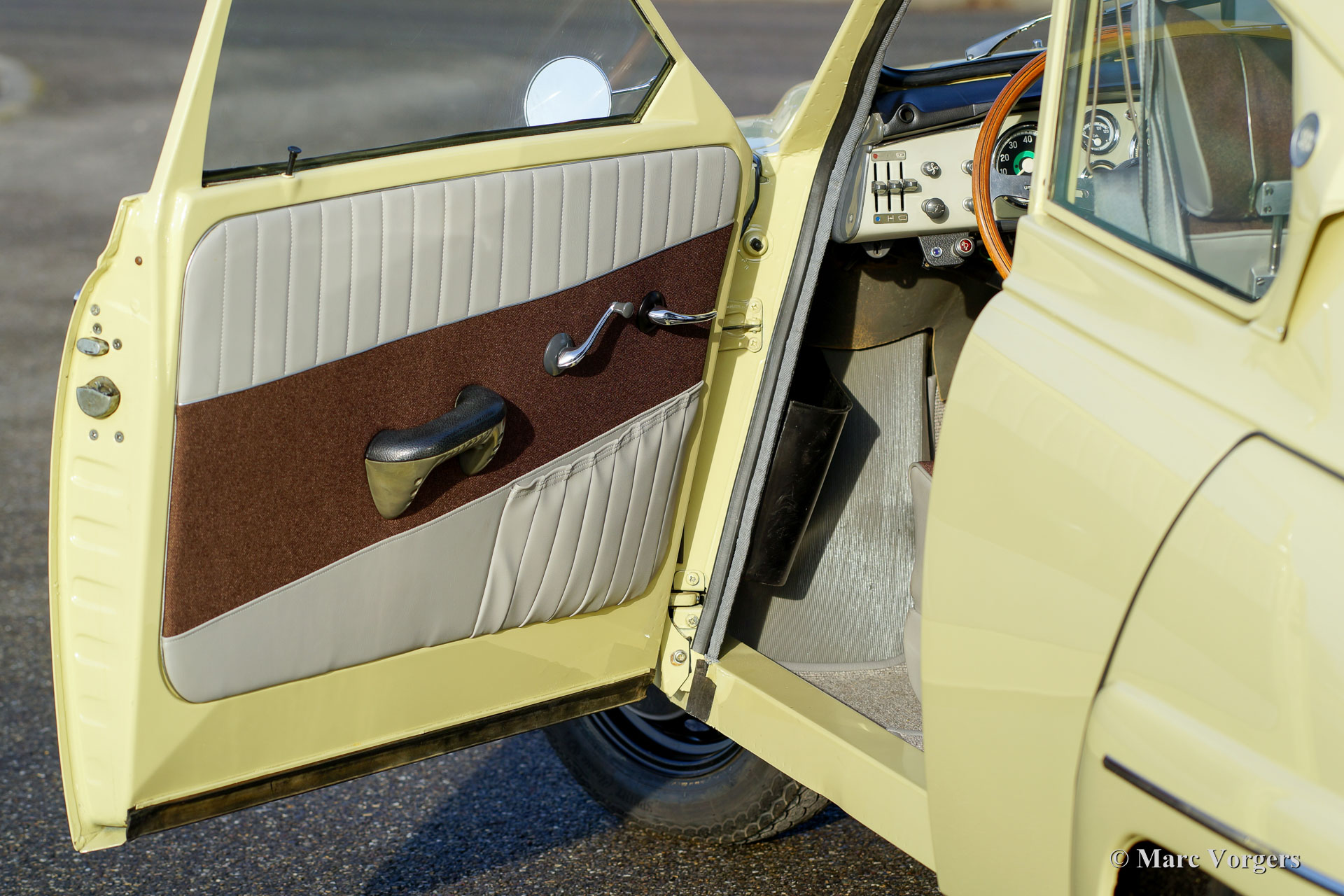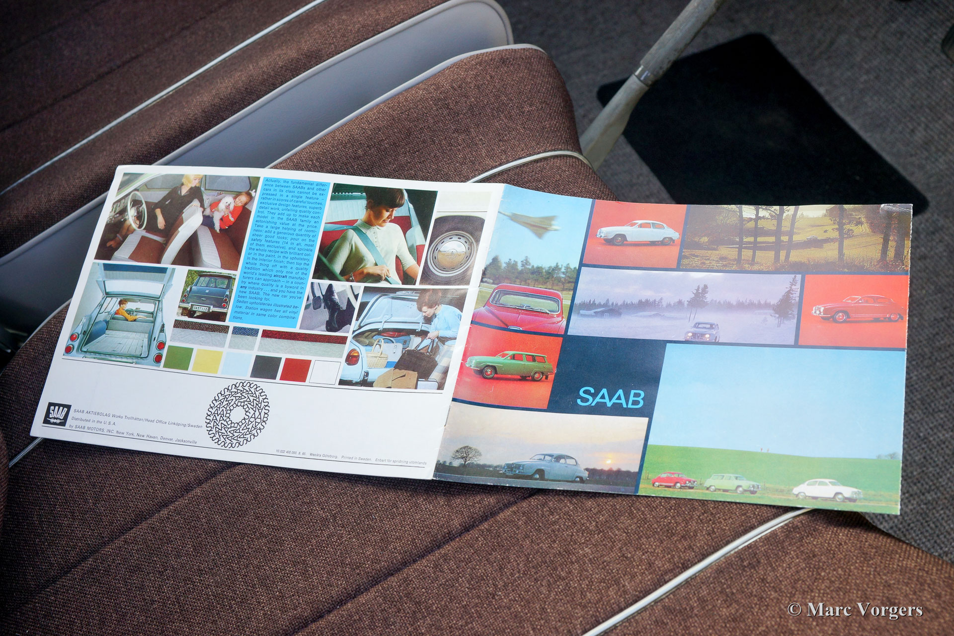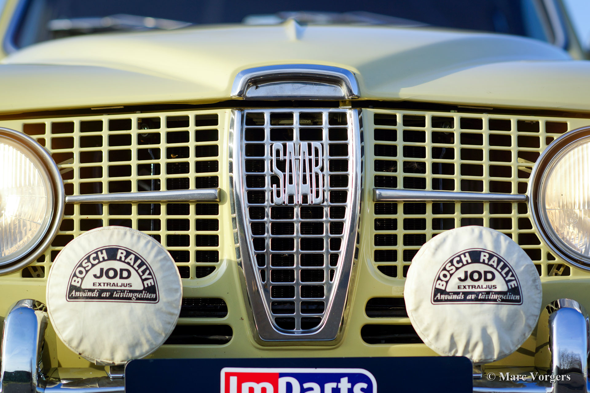 Saab 96 850 Special, jaar 1966. Kleur pastelgeel met een tweekleurig interieur; grijs kunstleer gecombineerd met bruine stof. Deze prachtige en zeer speciale Saab werd nieuw geleverd in Californië, USA, waar de auto slechts een eigenaar kende. De nagenoeg roestvrije Saab werd in het jaar 2008 in Nederland geïmporteerd. In de jaren 2010-2013 is de auto uitvoerig gerestaureerd naar perfecte topstaat! Sinds de restauratie heeft de auto minder dan 1000 km gereden.