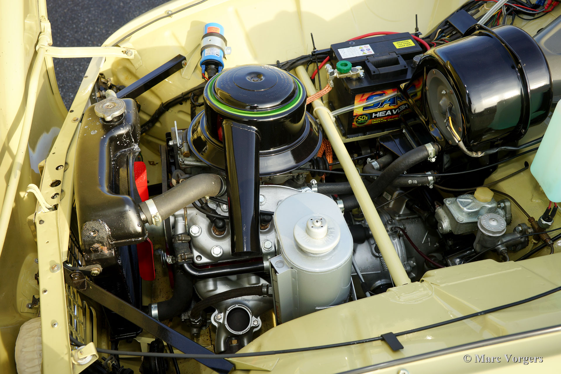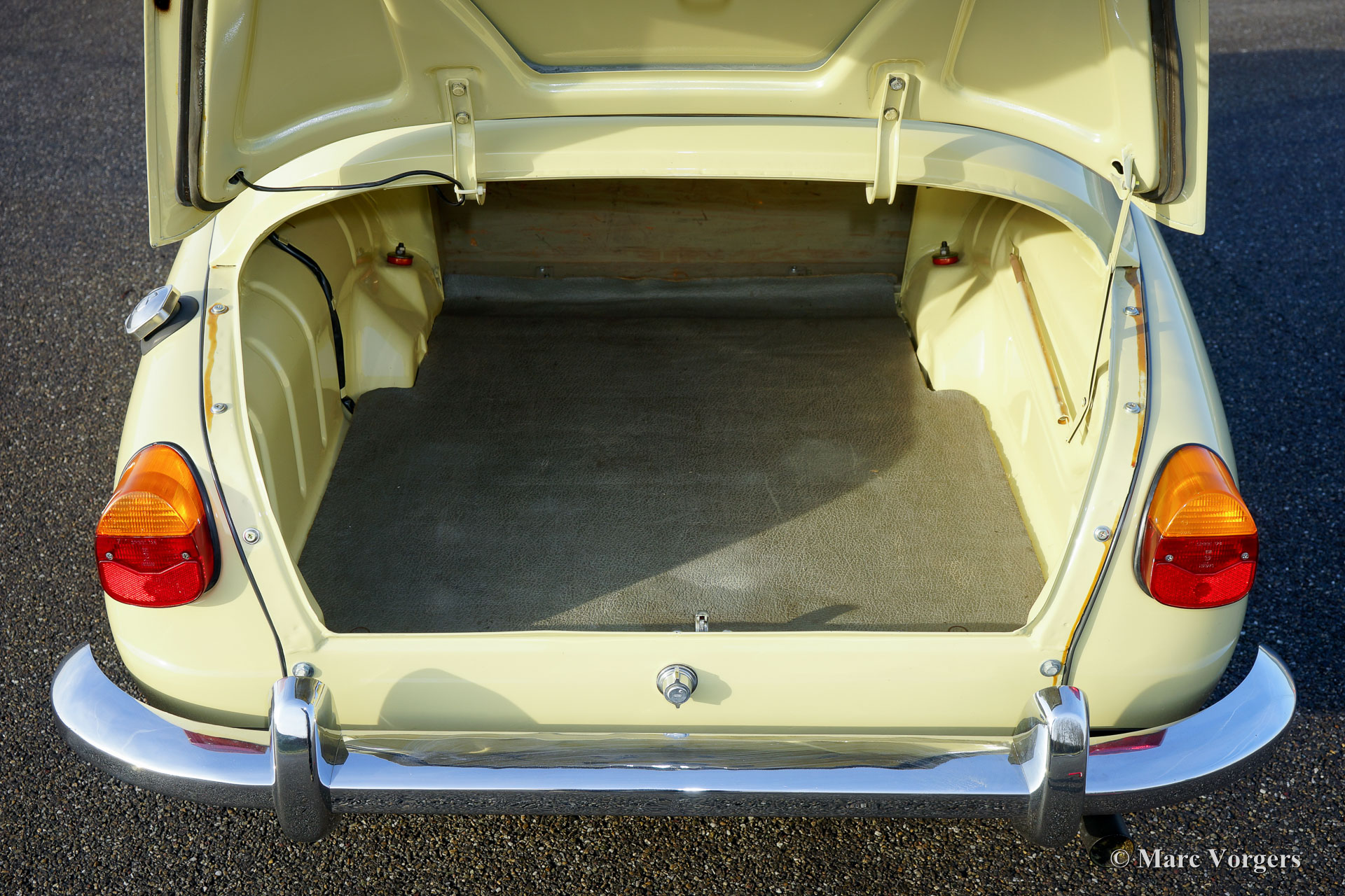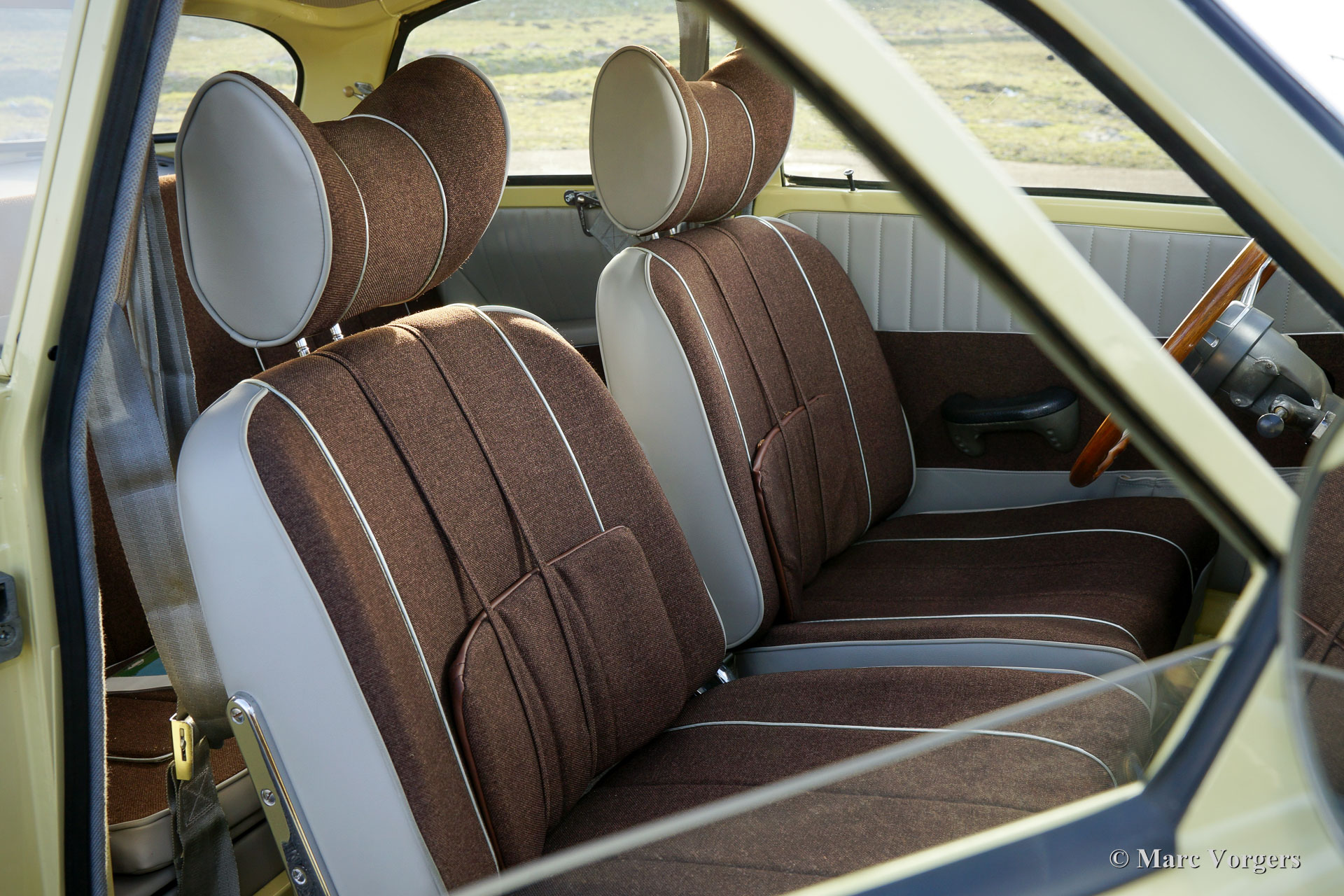 Saab 96 850 Special, jaar 1966. Kleur pastelgeel met een tweekleurig interieur; grijs kunstleer gecombineerd met bruine stof. Deze prachtige en zeer speciale Saab werd nieuw geleverd in Californië, USA, waar de auto slechts een eigenaar kende. De nagenoeg roestvrije Saab werd in het jaar 2008 in Nederland geïmporteerd. In de jaren 2010-2013 is de auto uitvoerig gerestaureerd naar perfecte topstaat! Sinds de restauratie heeft de auto minder dan 1000 km gereden.
